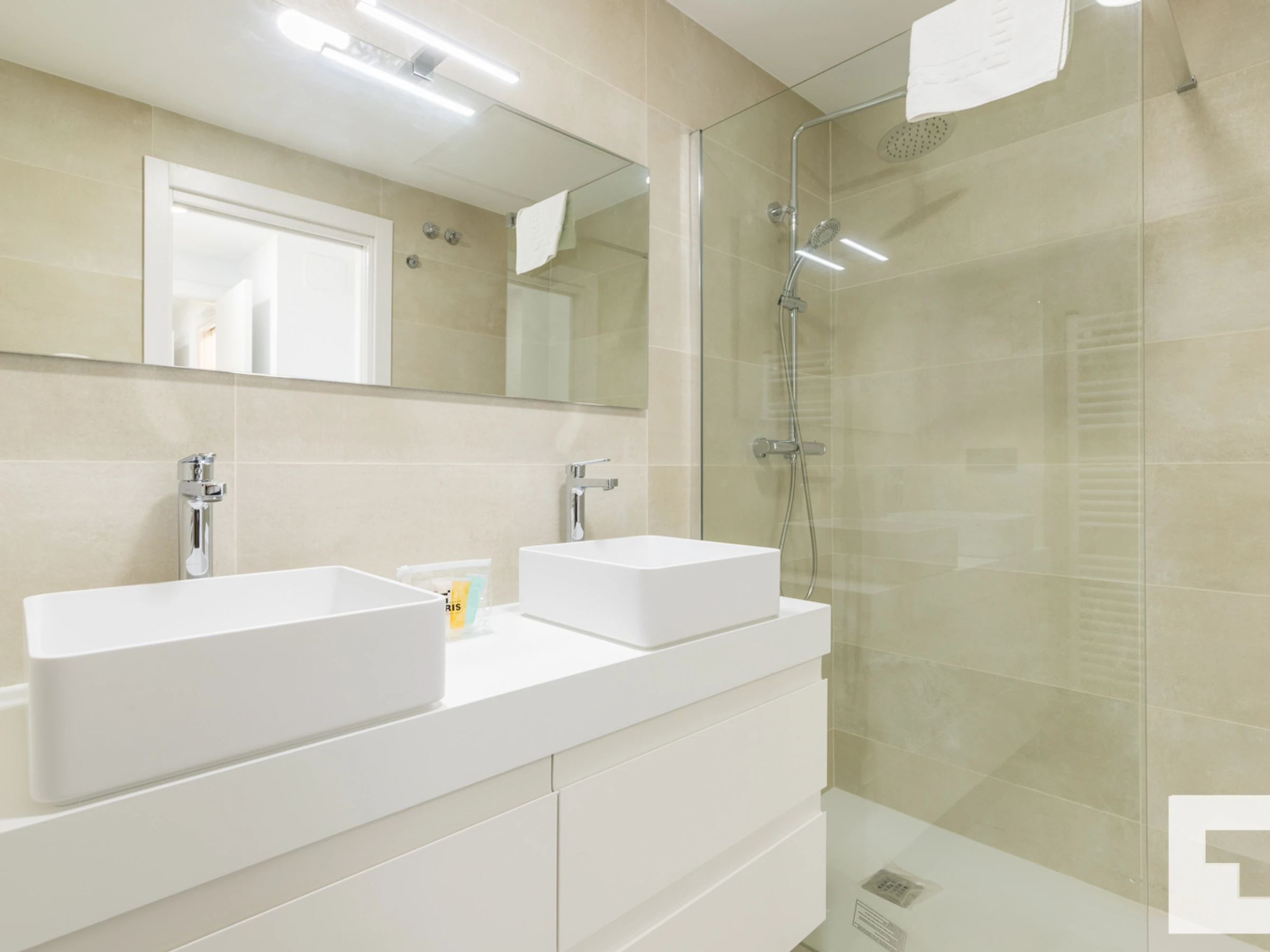 * 1 chambre avec deux lits simples. 🚿 2 salles de bain modernes (1 en suite,