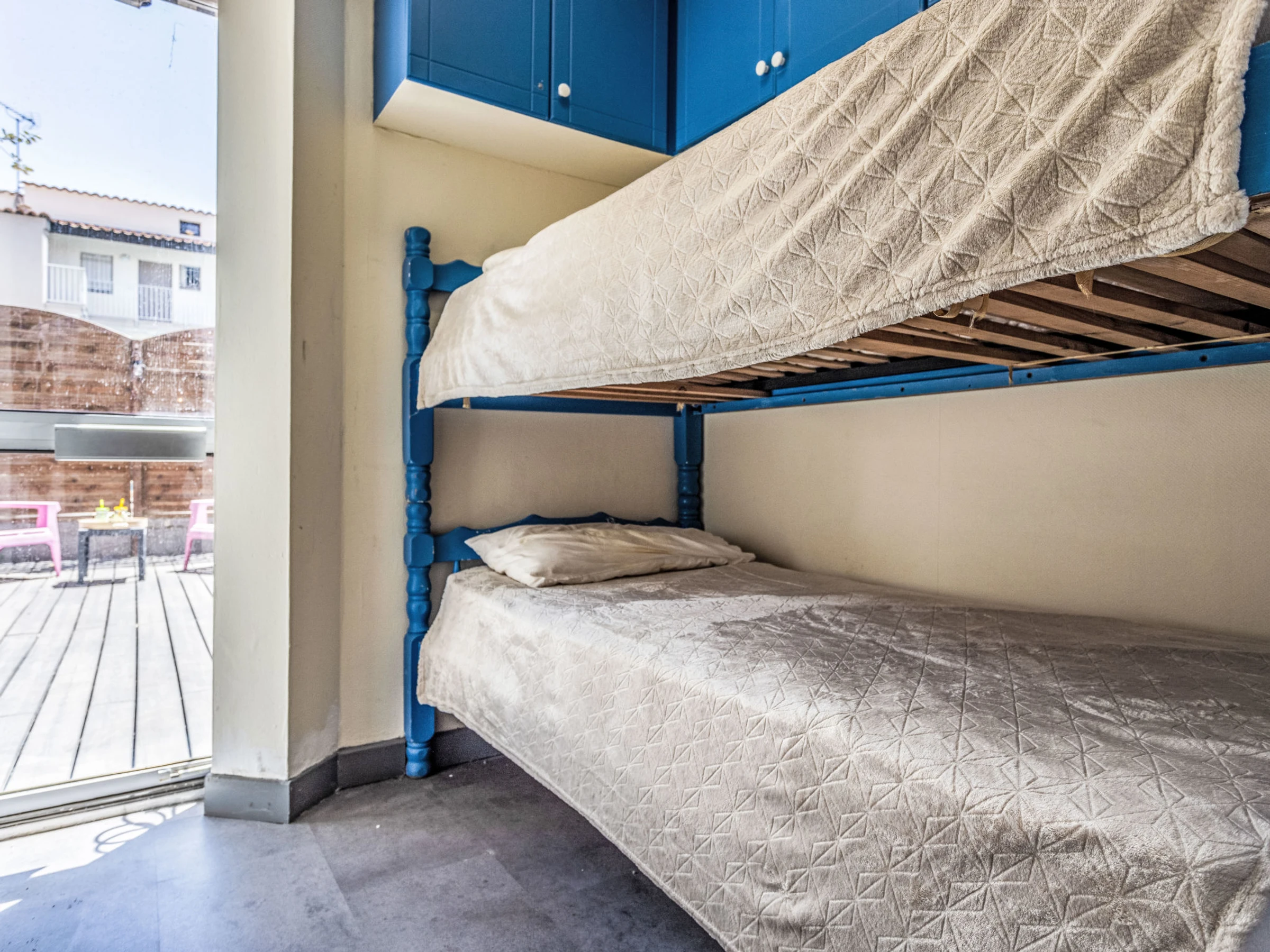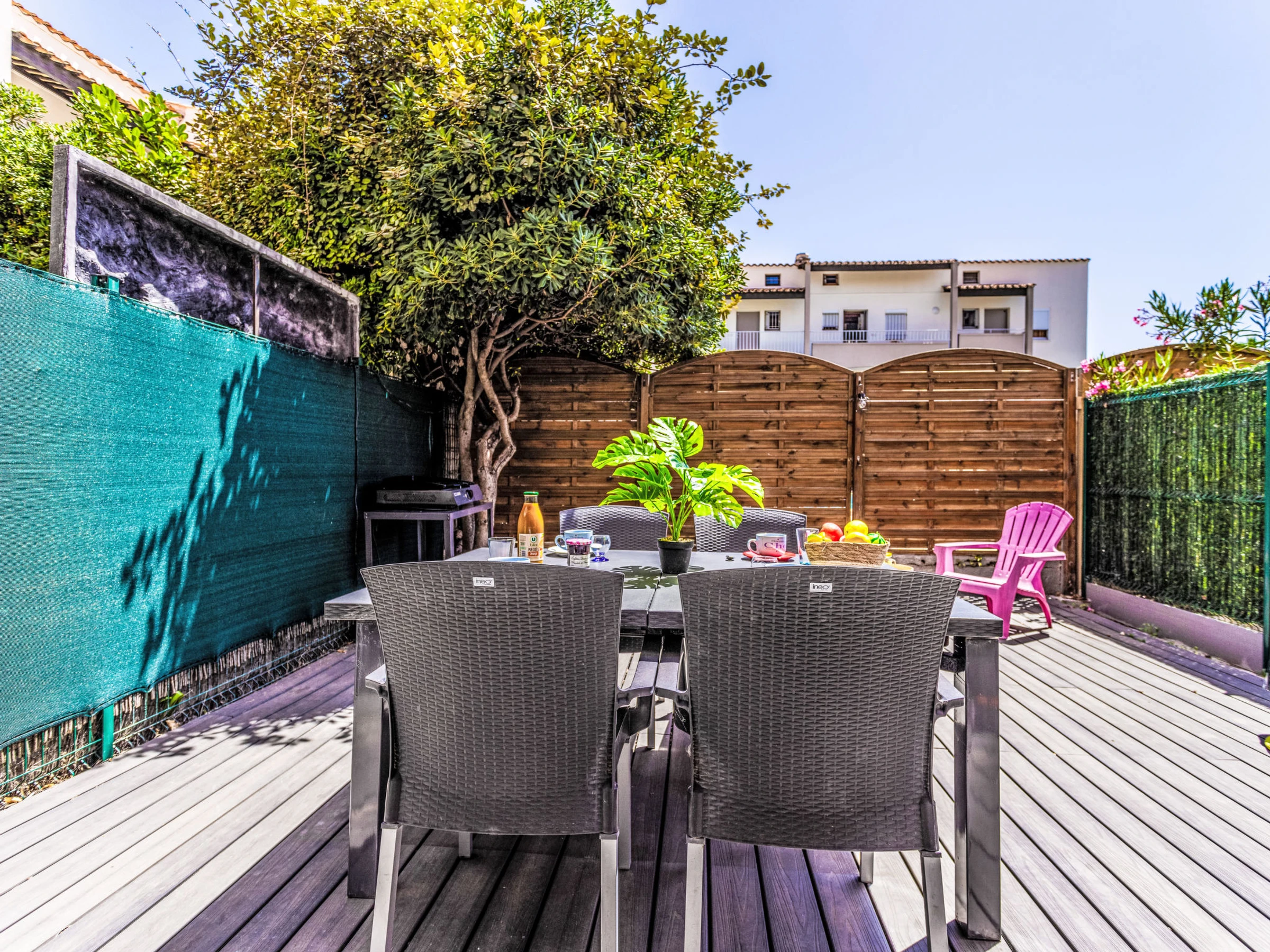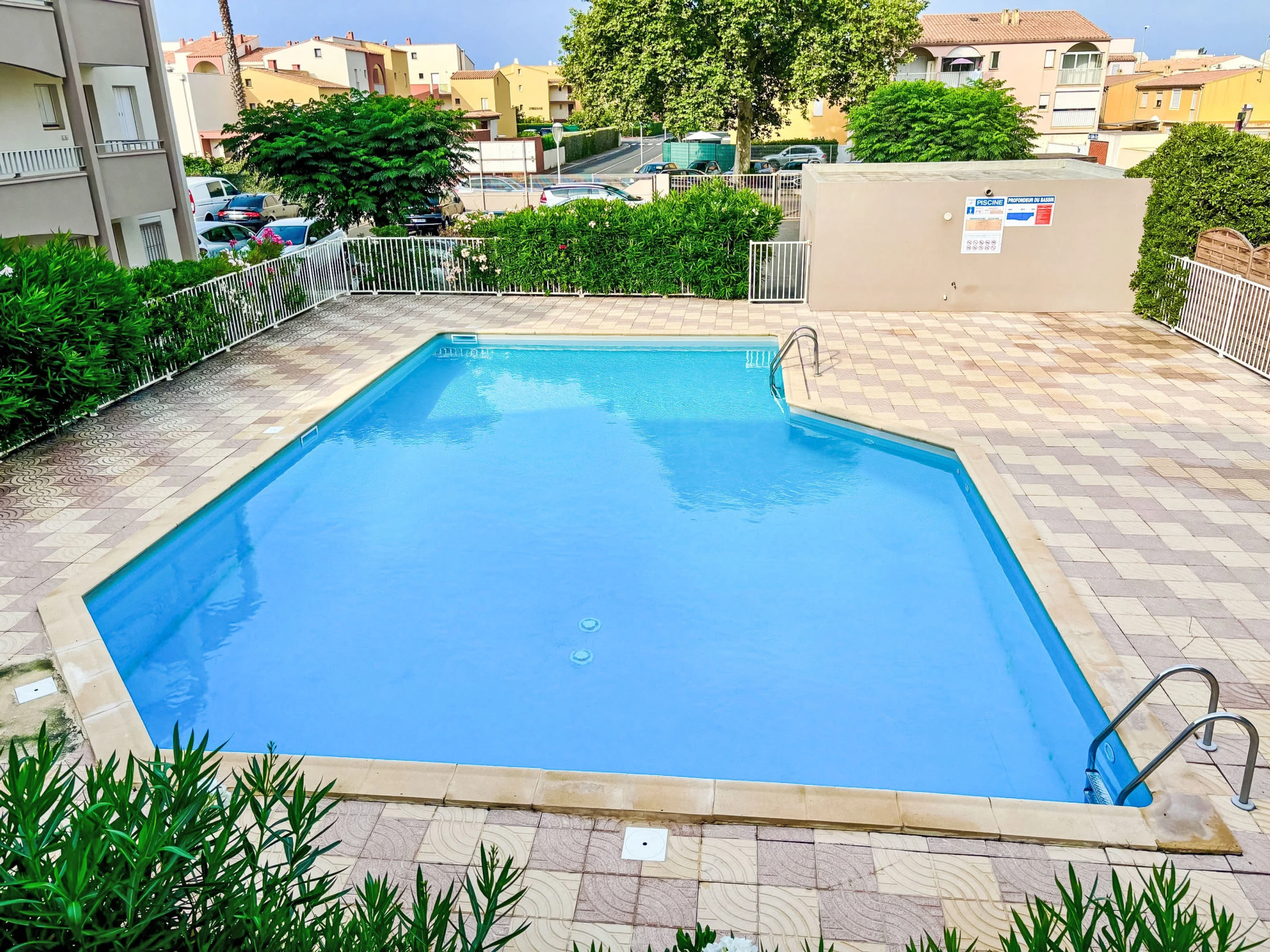 Résidence "Les Grenadines", de 2 étages. Dans le quartier de Richelieu, au centre, dans un quartier résidentiel, à 400 m de la mer, à 400 m de la plage. En commun: piscine (12 x 7 m, disponibilité saisonnière: [hidden] - [hidden] Place de parking près de la maison, parking public possible dans la rue. Magasins, magasin d'alimentation 300 m, supermarché 2 km, restaurant 300 m, arrêt de bus "Pacifique" 270 m, plage de sable "Le Richelieu" 400 m, parc "Aquapark" 1 km. Port plaisance 2 km. Attractions à proximité: Aqualand 1 km, Dinoland 1.5 km, Aquarium du Bagnas 1 km, Ile Saint-Martin 2 km, Portiragnes 15 km, Beziers 30 km. Veuillez noter: voiture recommandée. Du fait du COVID-19, la piscine de la résidence n'est pas disponible durant l'été 2020.