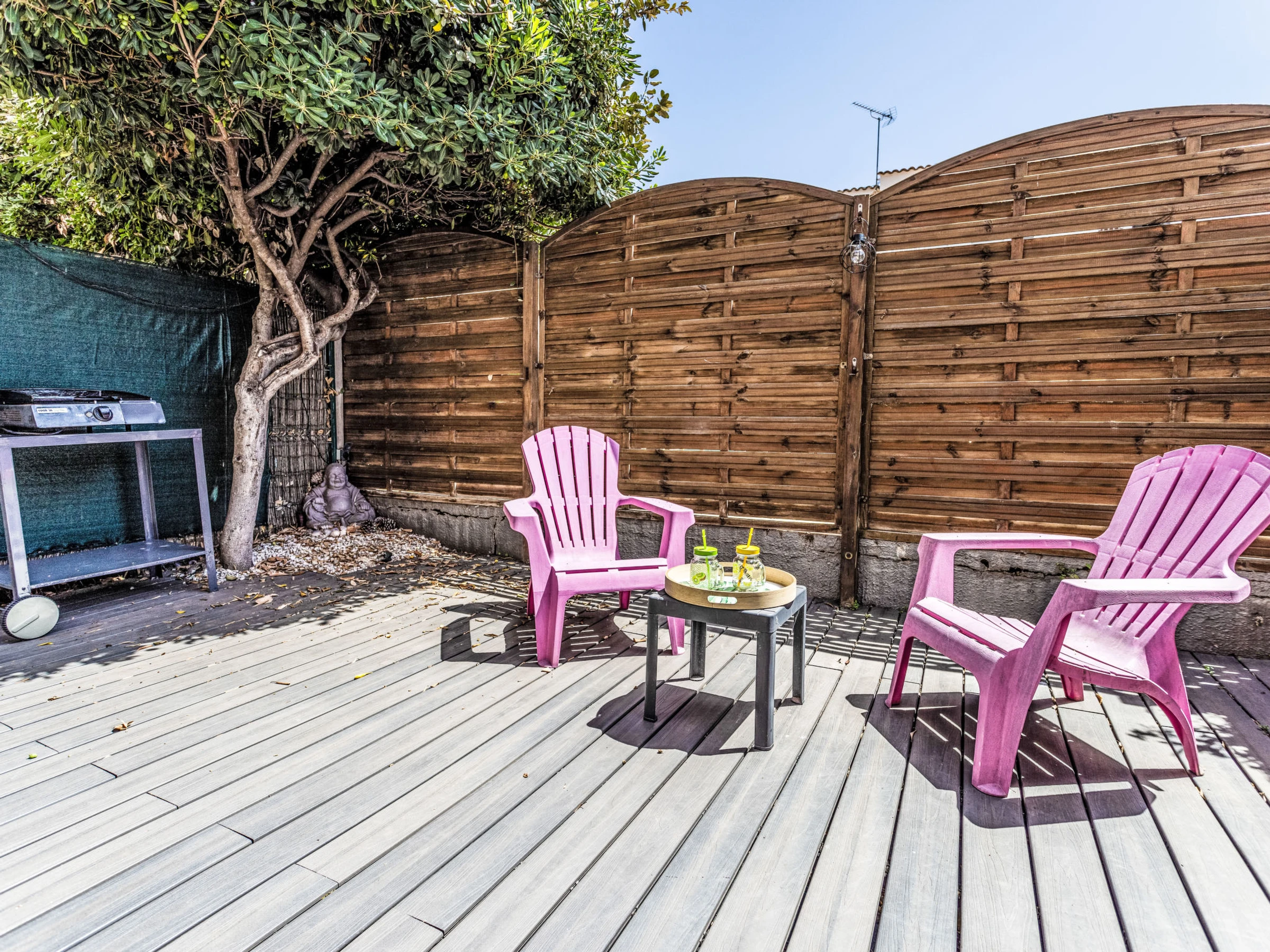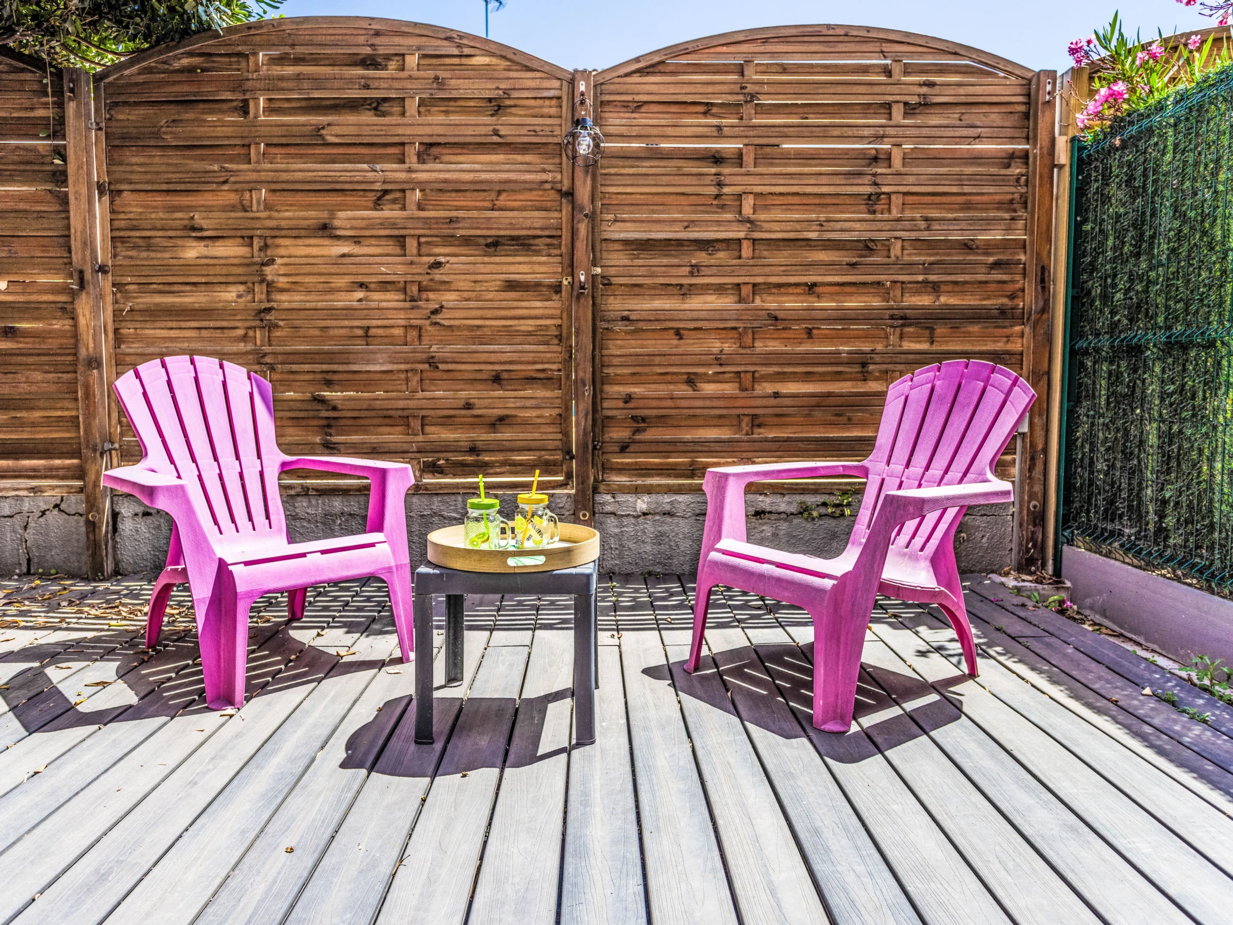 Apt 3 pièces 30 m2, au rez-de-chaussée. Aménagement confortable: séjour/salle à manger avec TV (écran plat). Sortie sur la terrasse. 1 chambre avec 1 grand-lit (140 cm, longueur 190 cm). Cabine avec 1 x 2 lits superposés (90 cm, longueur 190 cm). Coin cuisine (4 plaques de cuisson, four, grille-pain, bouilloire électrique, micro-ondes, cafetière électrique). Douche, WC séparé. Grande terrasse 30 m2. Meubles de terrasse. A disposition: lave-linge. Internet (Connexion WIFI, gratuit). Place de parking No 12. Veuillez noter: détecteur de fumée. Annonce d'un particulier (art 155, IV du CGI).