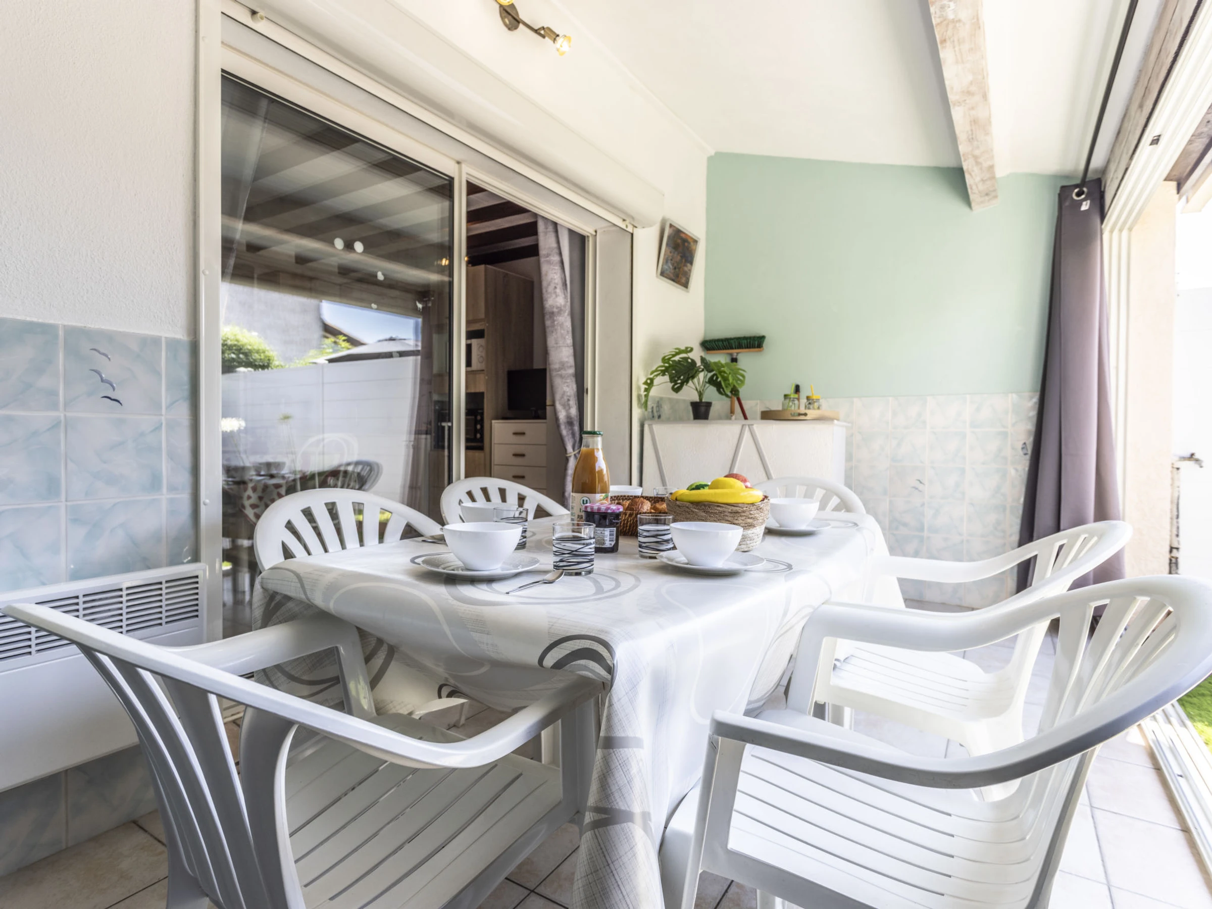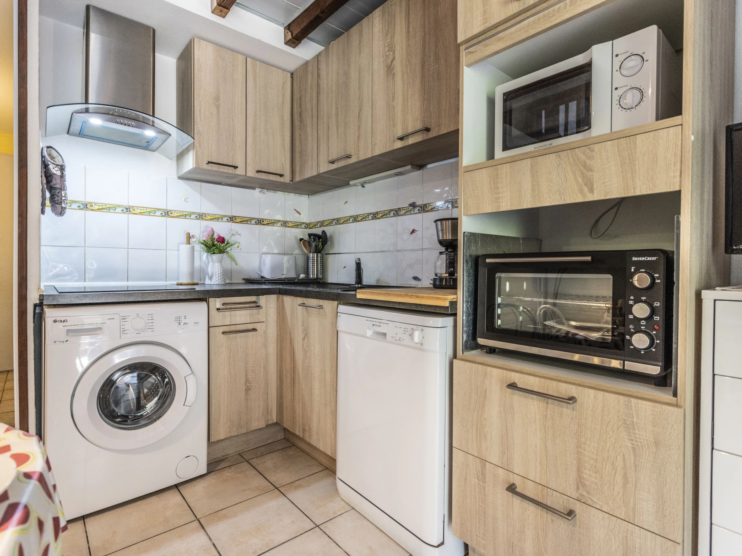 Maison mitoyenne 3 pièces 55 m2 sur 2 niveaux. Séjour/salle à manger avec baie vitrée avec TV (écran plat), air-conditionné. Sortie sur la terrasse. 1 chambre avec 1 grand-lit (140 cm, longueur 190 cm), air-conditionné. Coin cuisine (2 plaques de cuisson, mini-four, four, lave-vaisselle, 4 plaques à induction, micro-ondes, congélateur, gril, cafetière électrique, combiné micro-ondes). Douche, WC séparé. À l'étage supérieur: galerie mansardée avec 1 grand-lit (140 cm, longueur 190 cm), WC séparés. 1 chambre avec 1 x 2 lits superposés (90 cm, longueur 190 cm), air-conditionné. Grande terrasse 40 m2. Meubles de terrasse. A disposition: lave-linge. Internet (Connexion WIFI, gratuit). Place de parking No 48. Veuillez noter: adapté(e) aux familles. Maison non-fumeur. Détecteur de fumée. Annonce d'un particulier (art 155, IV du CGI).