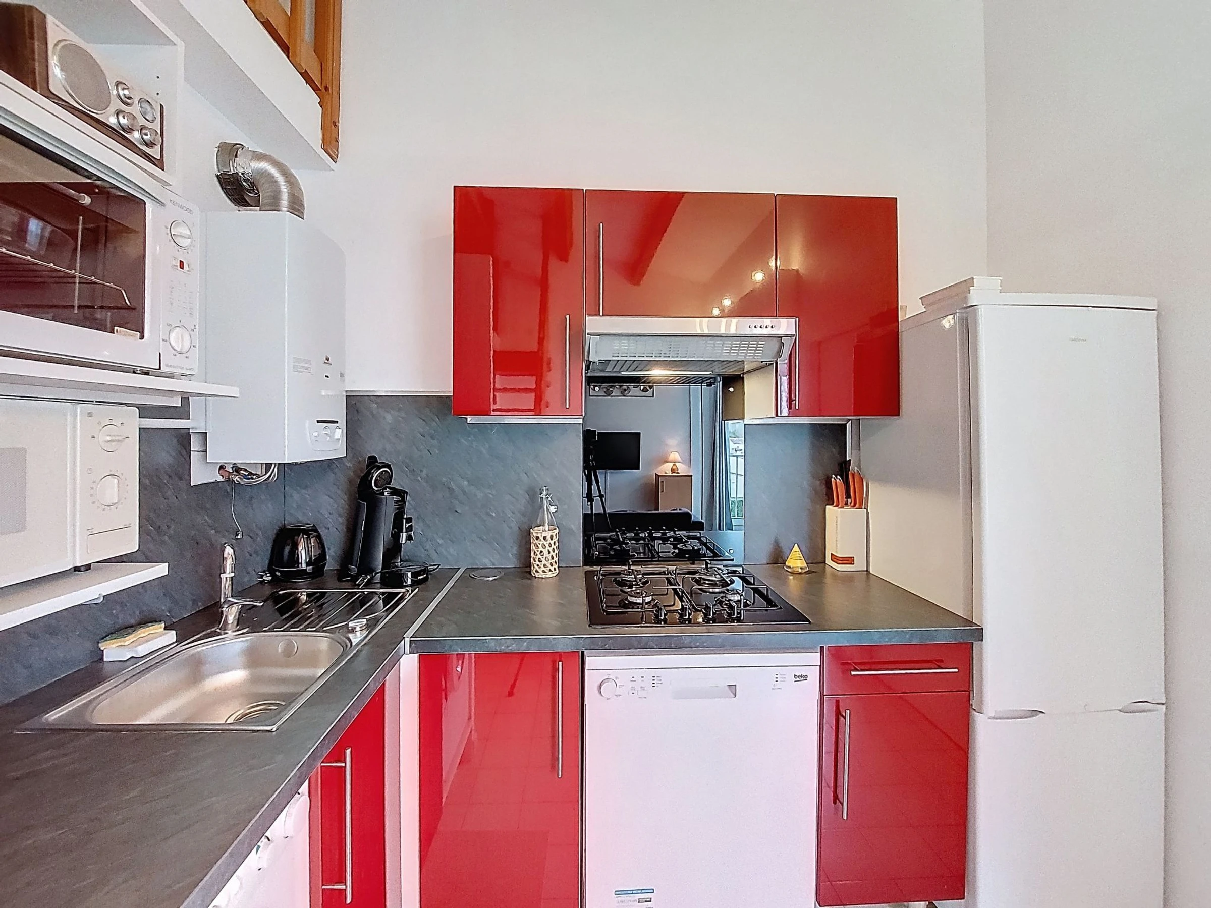 Apt 2 pièces 40 m2 sur 2 niveaux. Aménagement confortable et agréable: séjour/salle à manger avec TV (écran plat). Sortie sur la loggia. 1 chambre avec 1 grand-lit (140 cm, longueur 190 cm). Grande cuisine (2 plaques de cuisson, mini-four, four, congélateur, combiné micro-ondes). Douche, WC séparé. À l'étage supérieur: galerie mansardée avec 1 grand-lit (140 cm, longueur 190 cm). A disposition: lave-linge. Internet (Connexion WIFI, en sus). Place de parking No 204. Veuillez noter: adapté(e) aux familles. Maison non-fumeur. Détecteur de fumée. Annonce d'un particulier (art 155, IV du CGI).