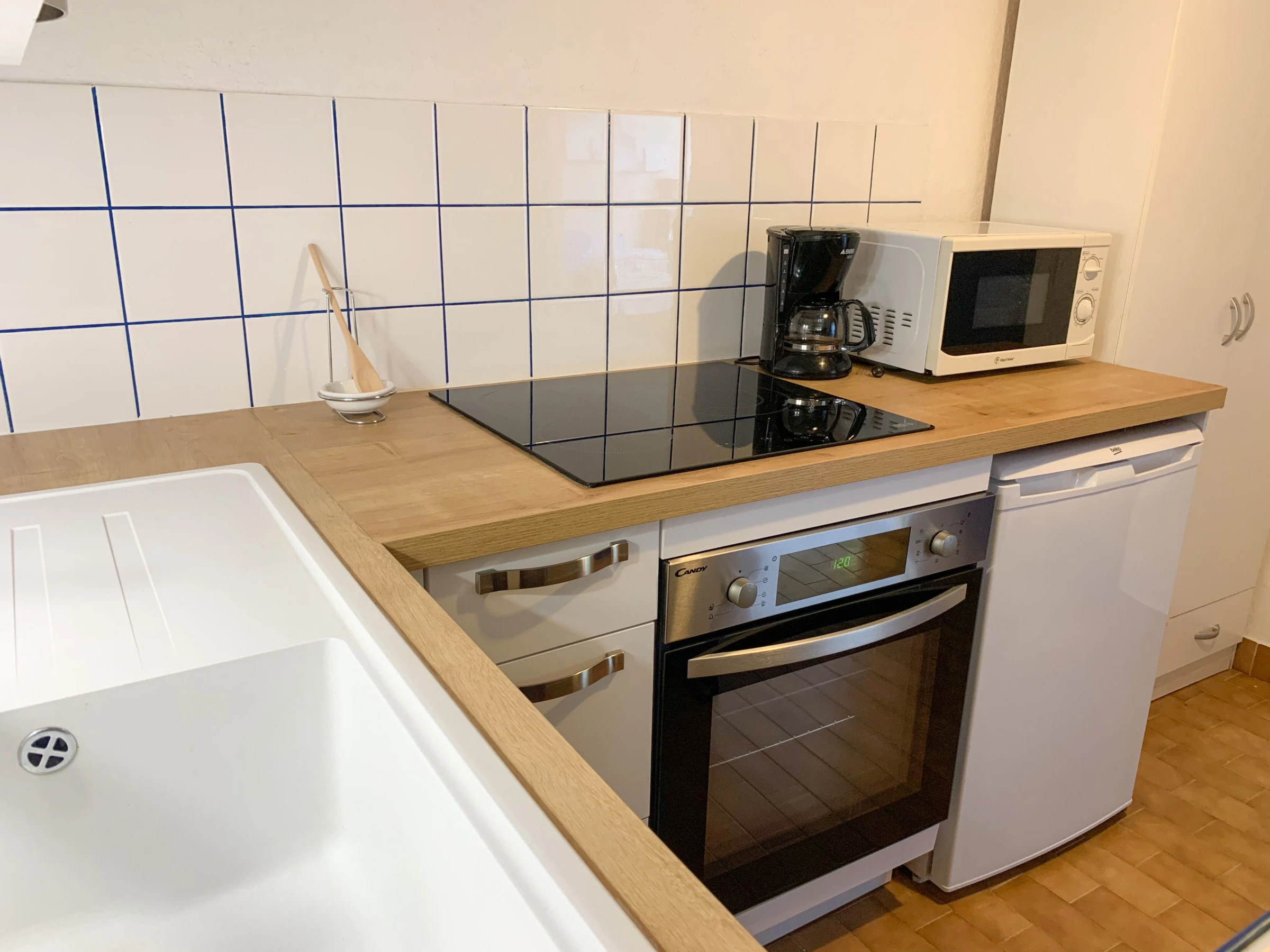 Apt 2 pièces 27 m2, au rez-de-chaussée. Séjour/salle à manger avec 1 divan-lit double (130 cm, longueur 200 cm), TV. Sortie sur la loggia. 1 chambre avec 1 grand-lit (140 cm, longueur 190 cm). Coin cuisine (4 plaques de cuisson, four) avec passe-plat. Salle de bains, WC séparé. Terrasse 20 m2, jardinet. Loggia. A disposition: Internet (Connexion WIFI, en sus). Place de parking. Veuillez noter: réfrigérateur sans compartiment congélateur. Détecteur de fumée.