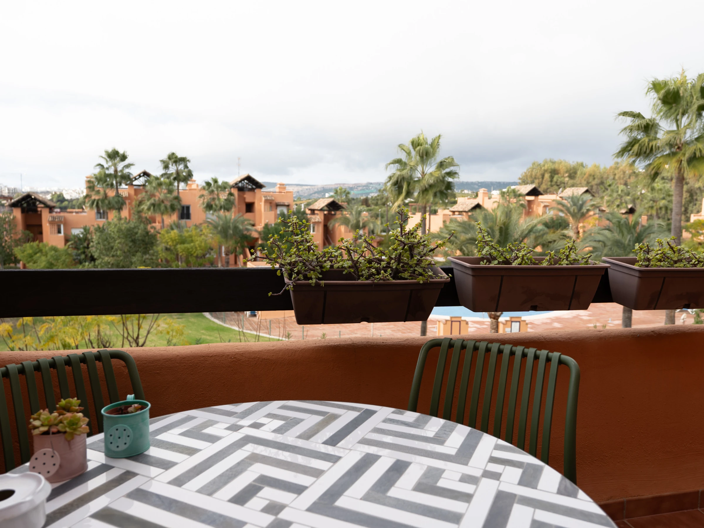 Logement de 74 m², avec vue sur la montagne et la piscine.