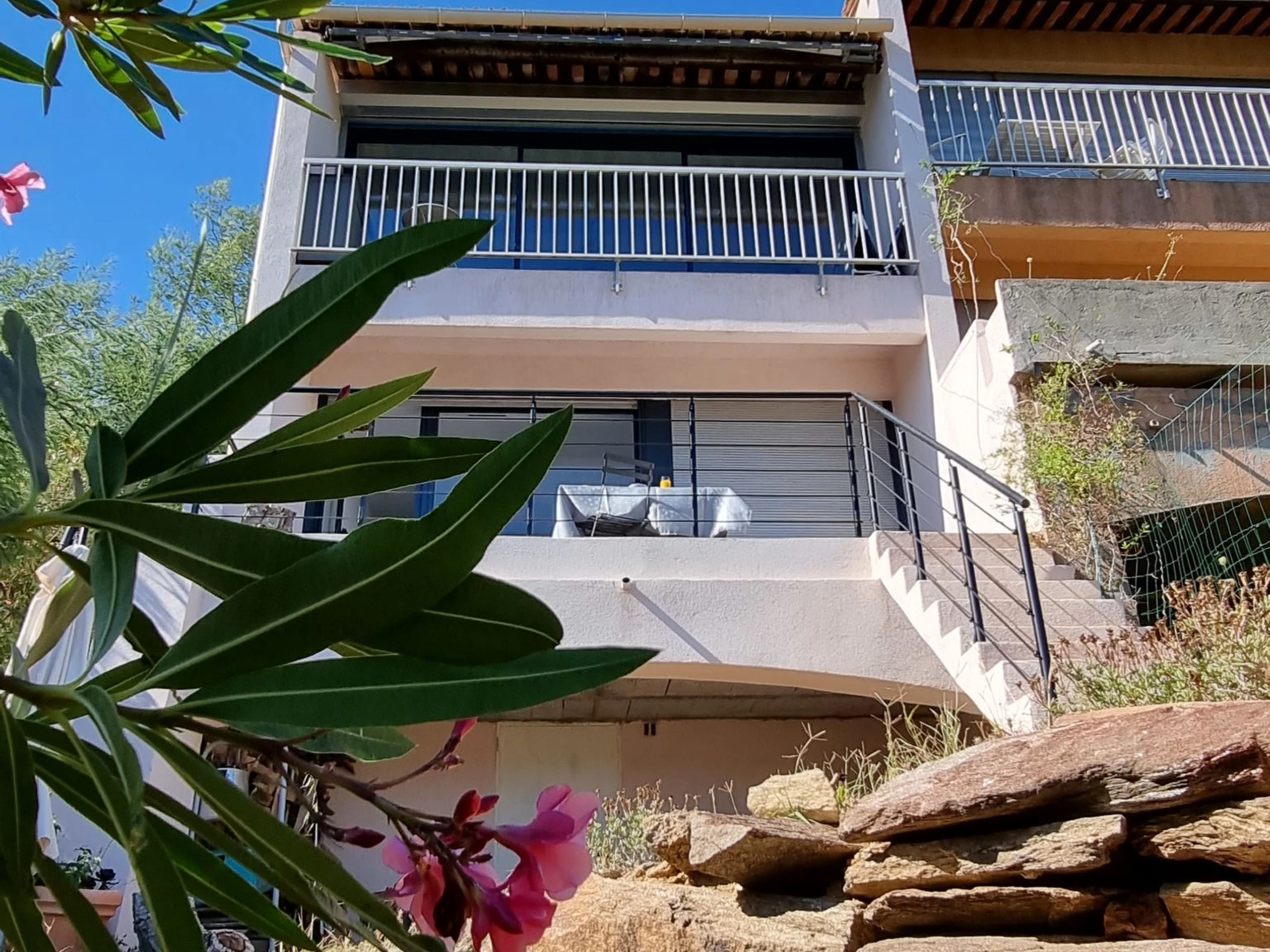 Résidence "Les Terrasses de L'Eau Blanche". Dans le haut de la station de Cavalaire en-dehors de la localité, 4 km du centre, sur une colline, à 3.5 km de la mer, à 3.5 km de la plage, dans une impasse, orientée sud. Magasins 4 km, magasin d'alimentation 3.5 km, supermarché 5 km, restaurant 4 km, boulangerie 3.5 km, arrêt de bus "place du parc" 1200 km, plage de sable "Plage du soleil" 3.5 km. Port plaisance 4 km, centre équestre 3 km. Attractions à proximité: Azur Park, Paint-ball 12 km, Bowling à Port-Grimaud 13 km, St-Tropez 17 km, Ste-Maxime 24 km. Région de randonnées: Sentier du Fenouillet 5.5 km, Sentier du littoral 7 km, Toulon 60 km. Veuillez noter: voiture recommandée. La remise des clés a lieu à l’agence de Cavalaire.