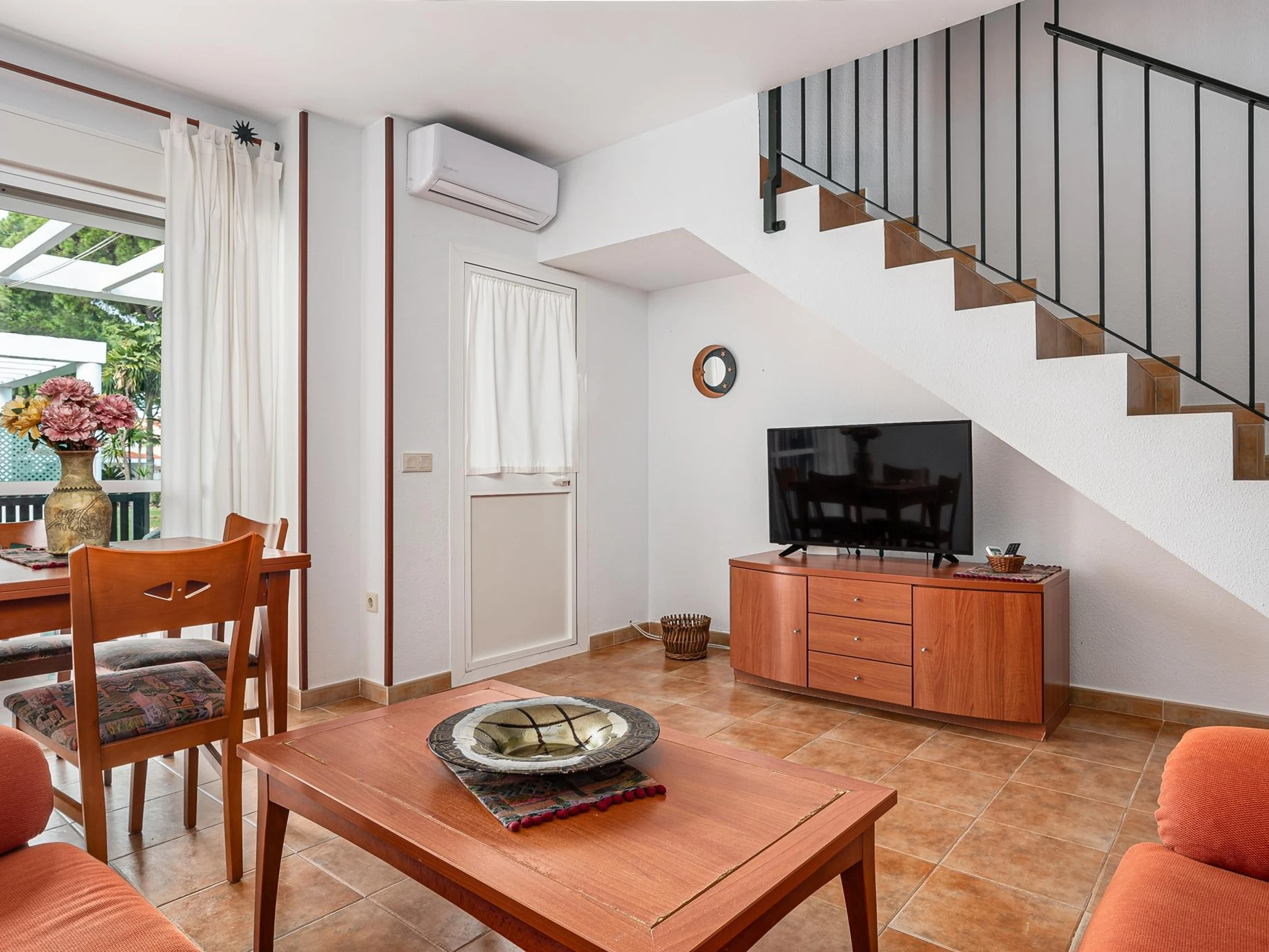Nos propriétés sont d'élégantes maisons mitoyennes à louer, réparties sur deux étages et offrant un confort maximal. Au rez-de-chaussée, vous trouverez un spacieux salon-salle à manger avec climatisation et accès direct à une terrasse privée meublée, parfaite pour se détendre en plein air. Il y a également des toilettes invités, une cuisine indépendante entièrement équipée et une annexe pratique avec une machine à laver. A l'étage supérieur se trouvent deux chambres avec placards et vue sur les jardins : une avec un lit double confortable et l'autre avec deux lits simples confortables. La chambre est complétée par une salle de bain principale bien équipée.