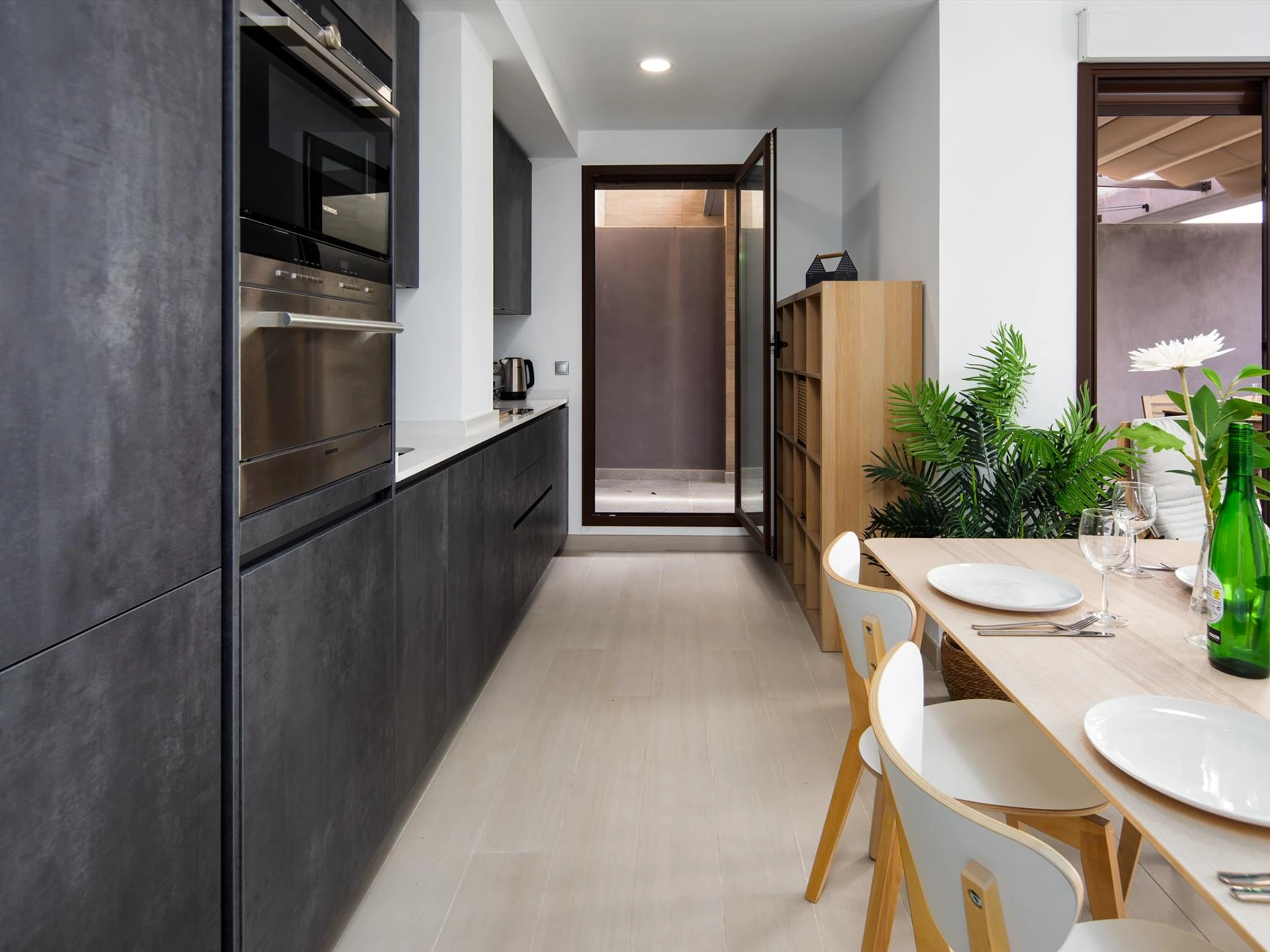 * Cuisine ouverte avec appareils électroménagers modernes, y compris petit