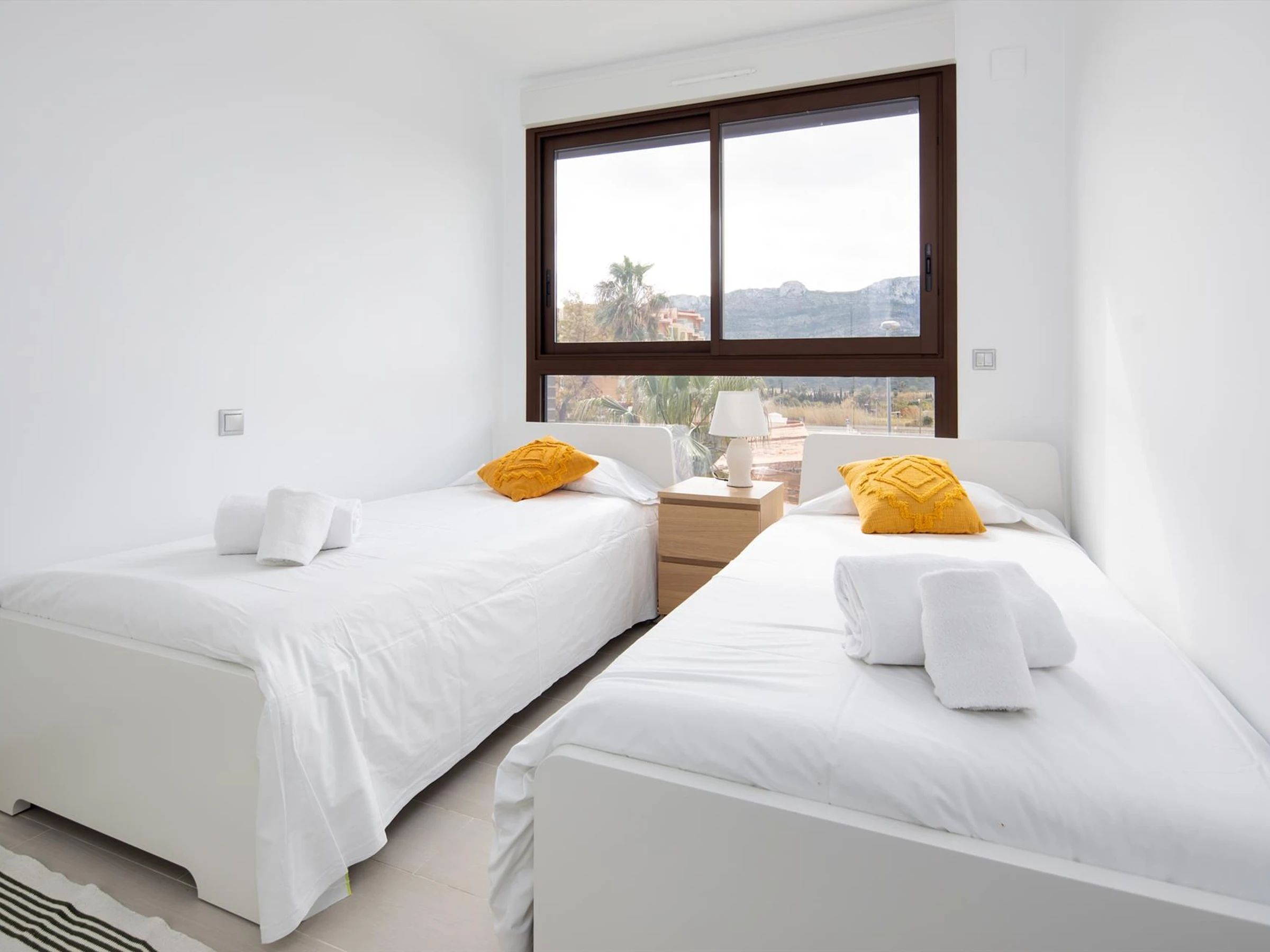 Appartement moderne et confortable avec piscine commune pour 4 personnes à [hidden]'appartement Las Lomas dispose de 2 chambres, 2 salles de bains et est situé dans un quartier résidentiel avec piscine communautaire et espaces communs, à environ 500 mètres de la plage Les Deveses.