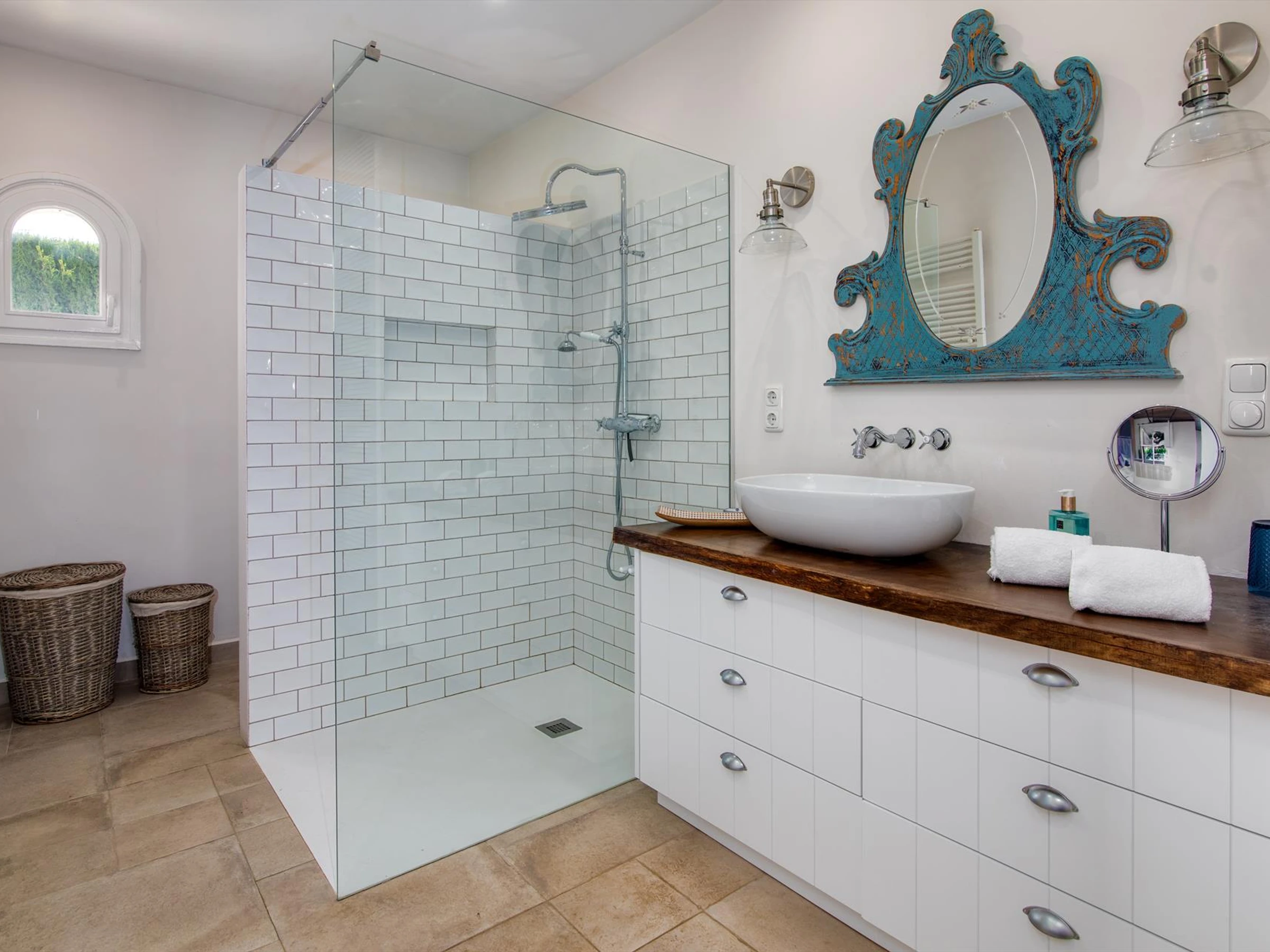 * Salle de bain avec douche et toilette Exterieur de la Villa