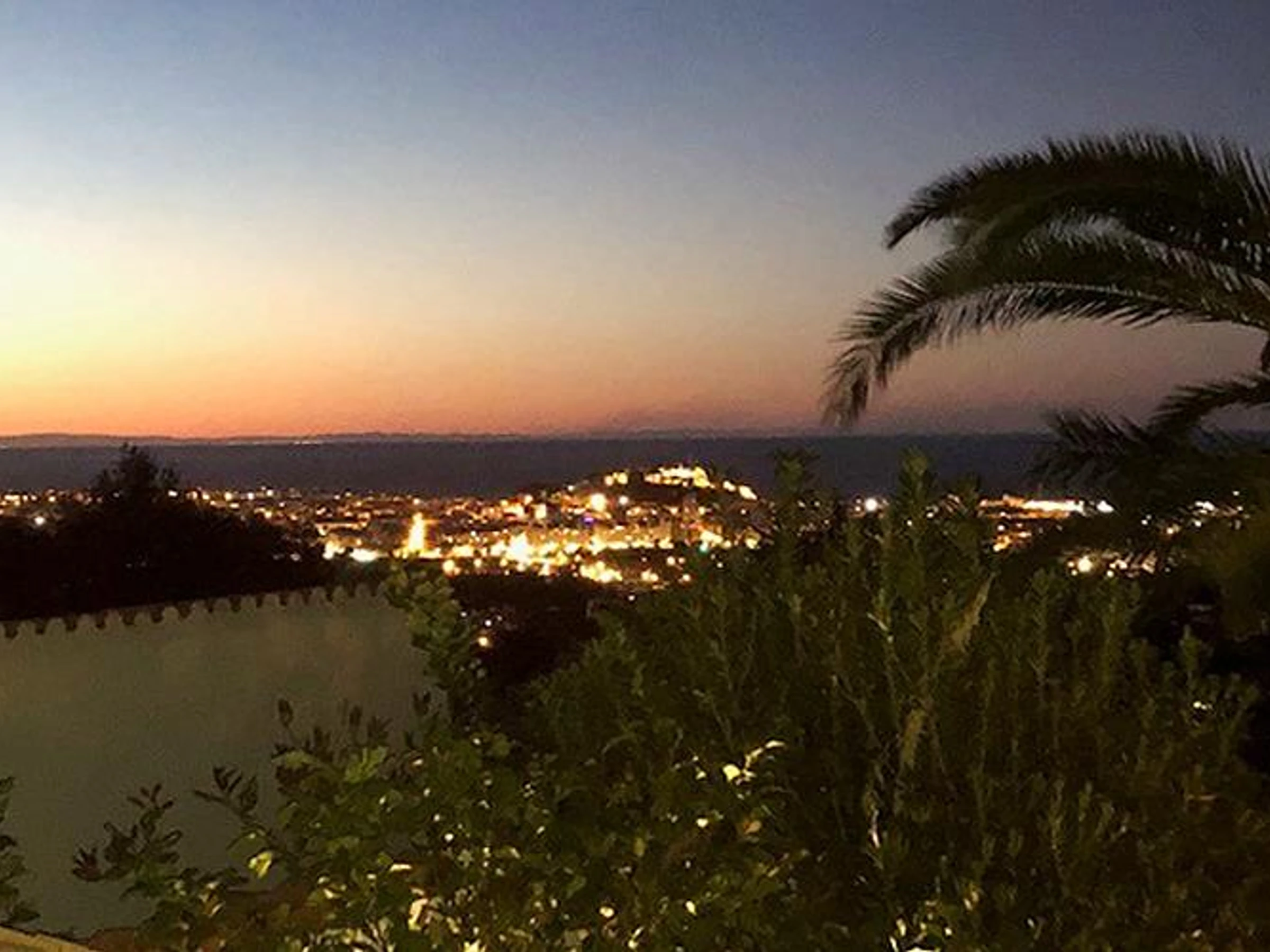 chaîne de montagnes du Montgó, ainsi qu'une vue sur la ville, le château de