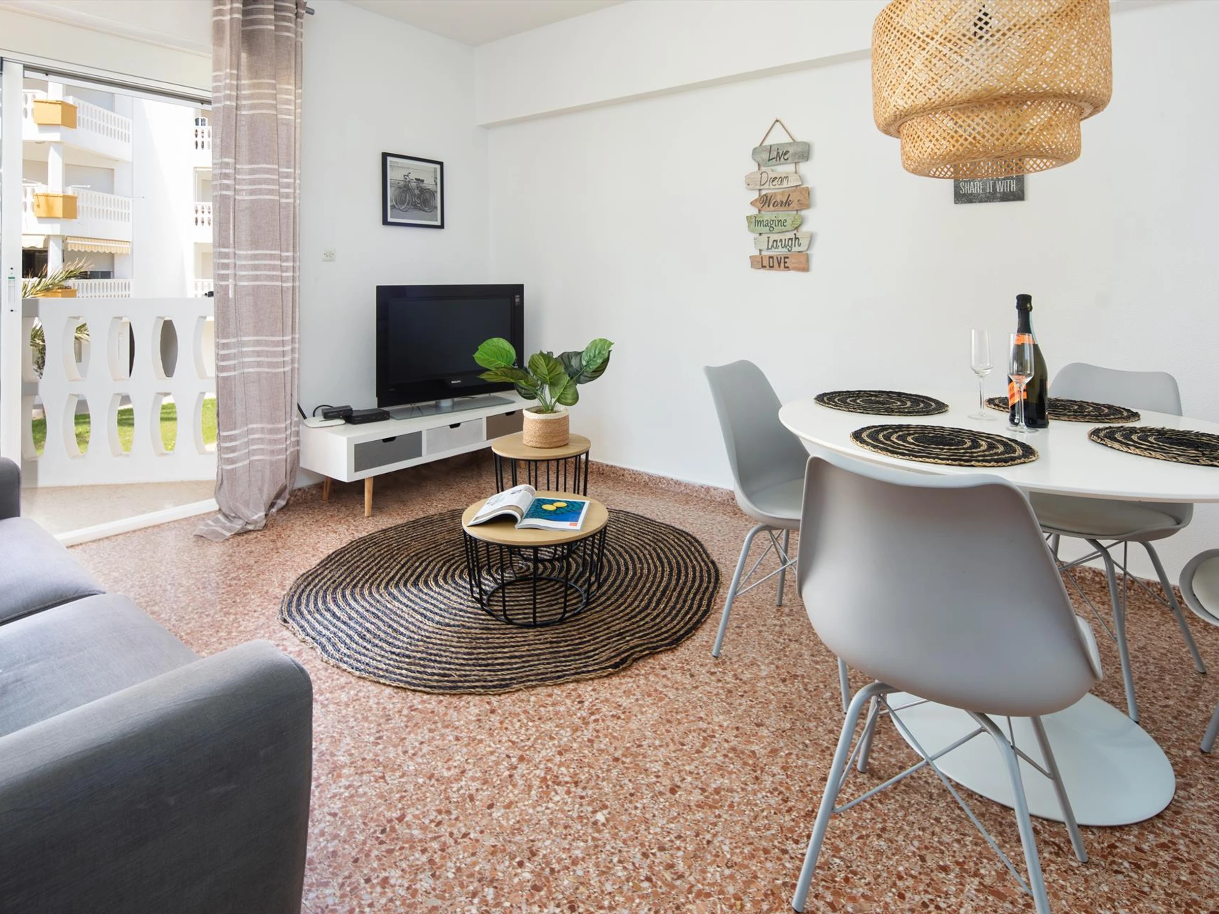* Salon avec Smart TV, chaines espagnoles et accès à la terrasse avec vue sur