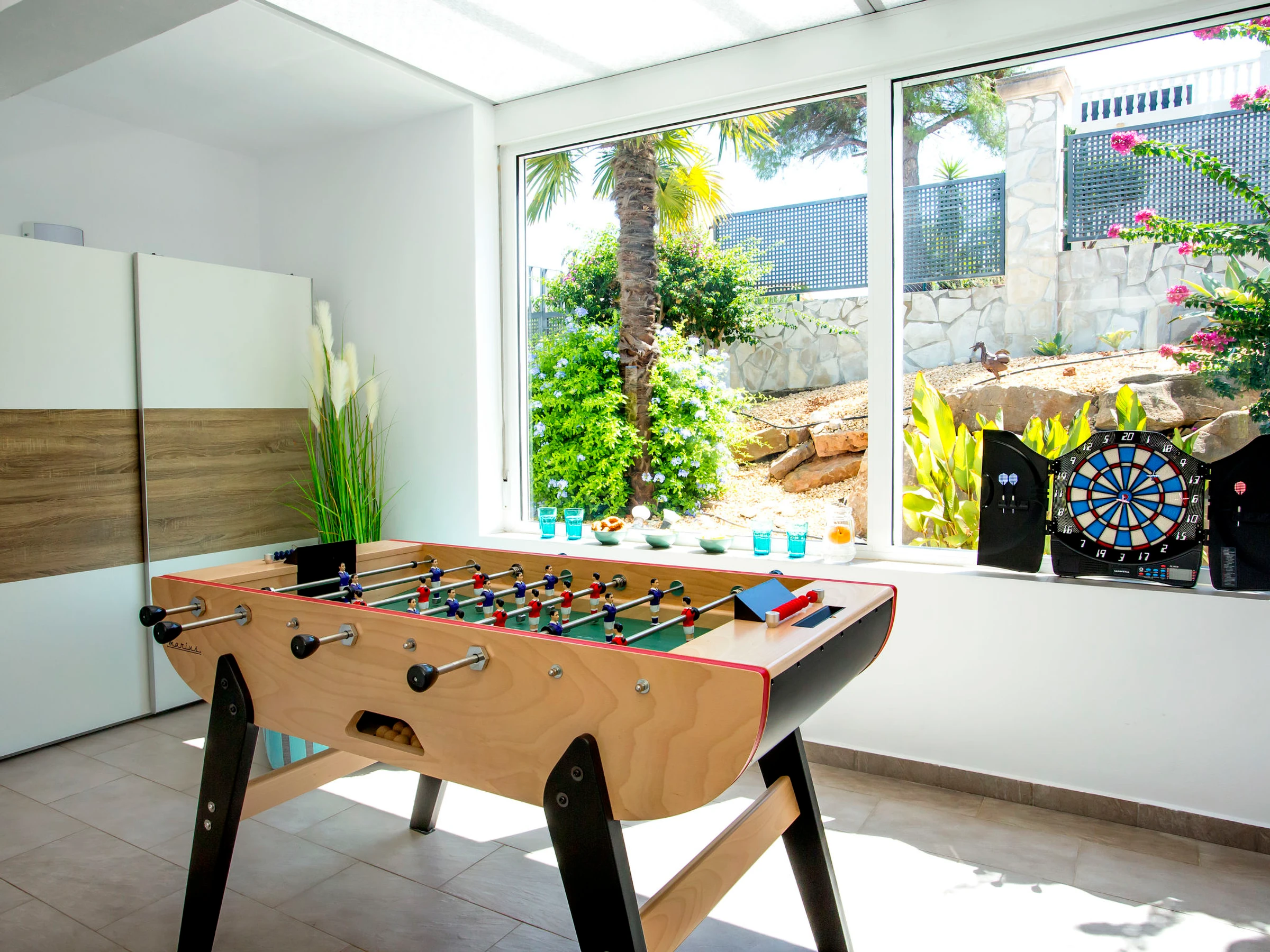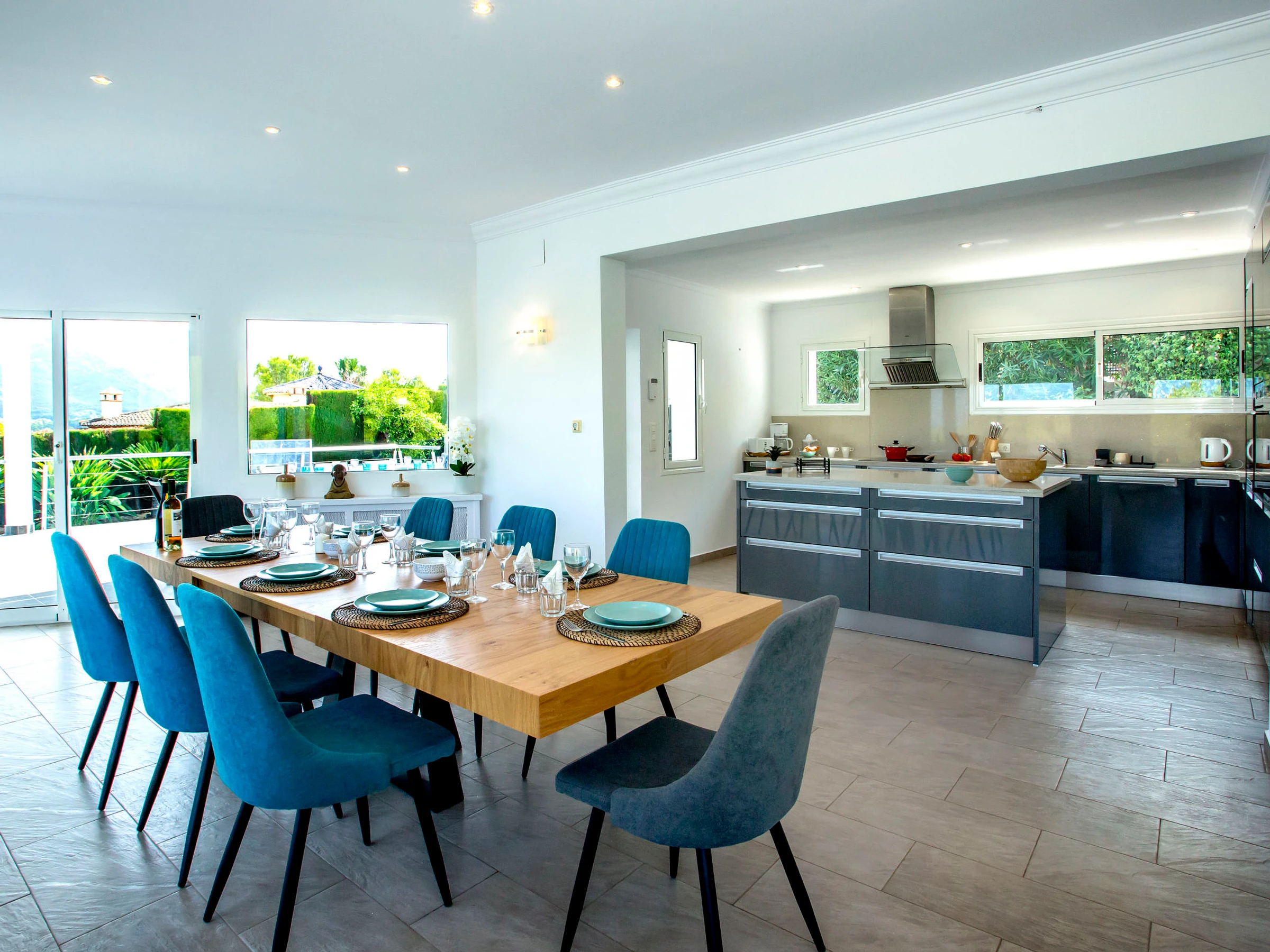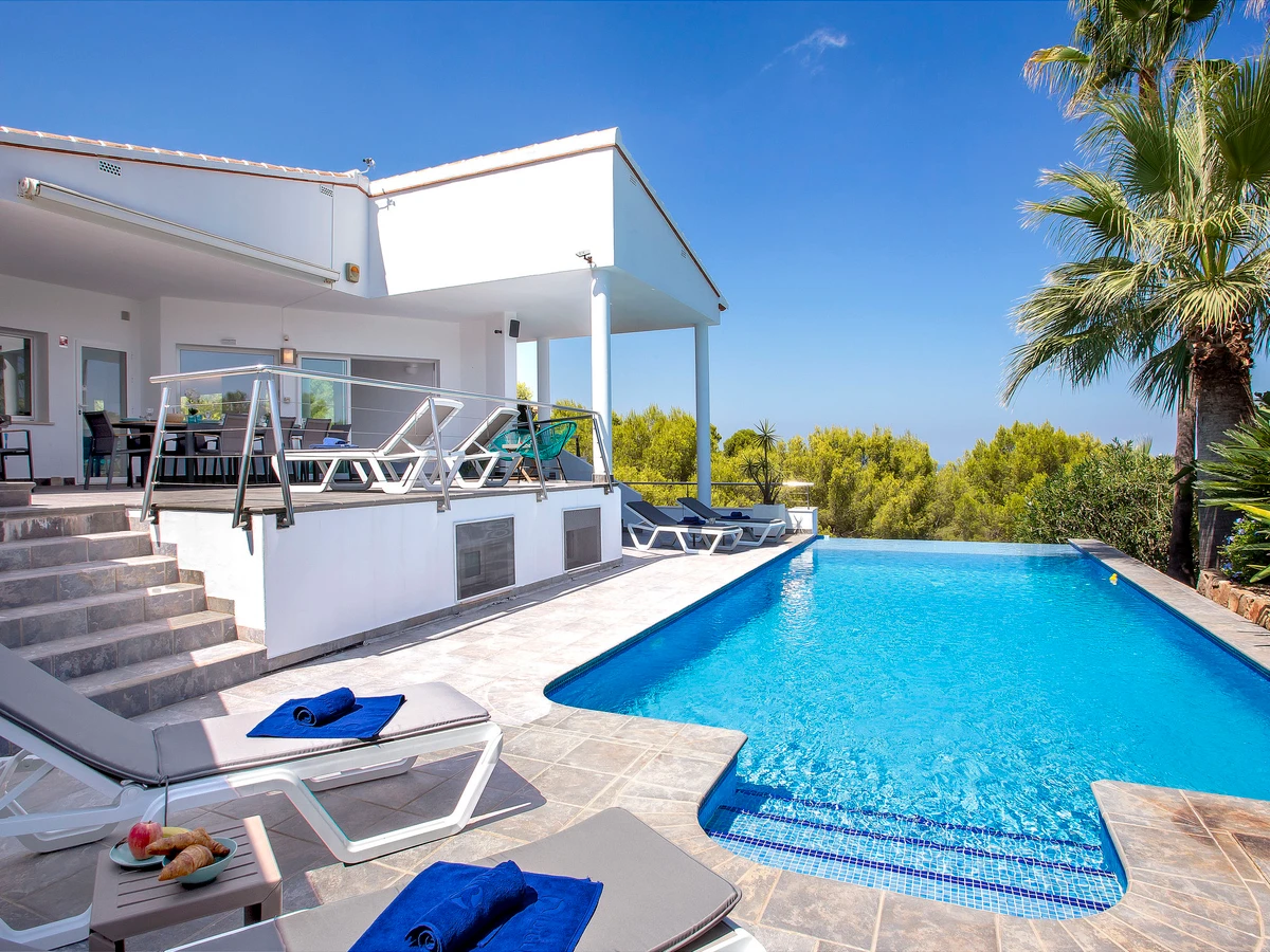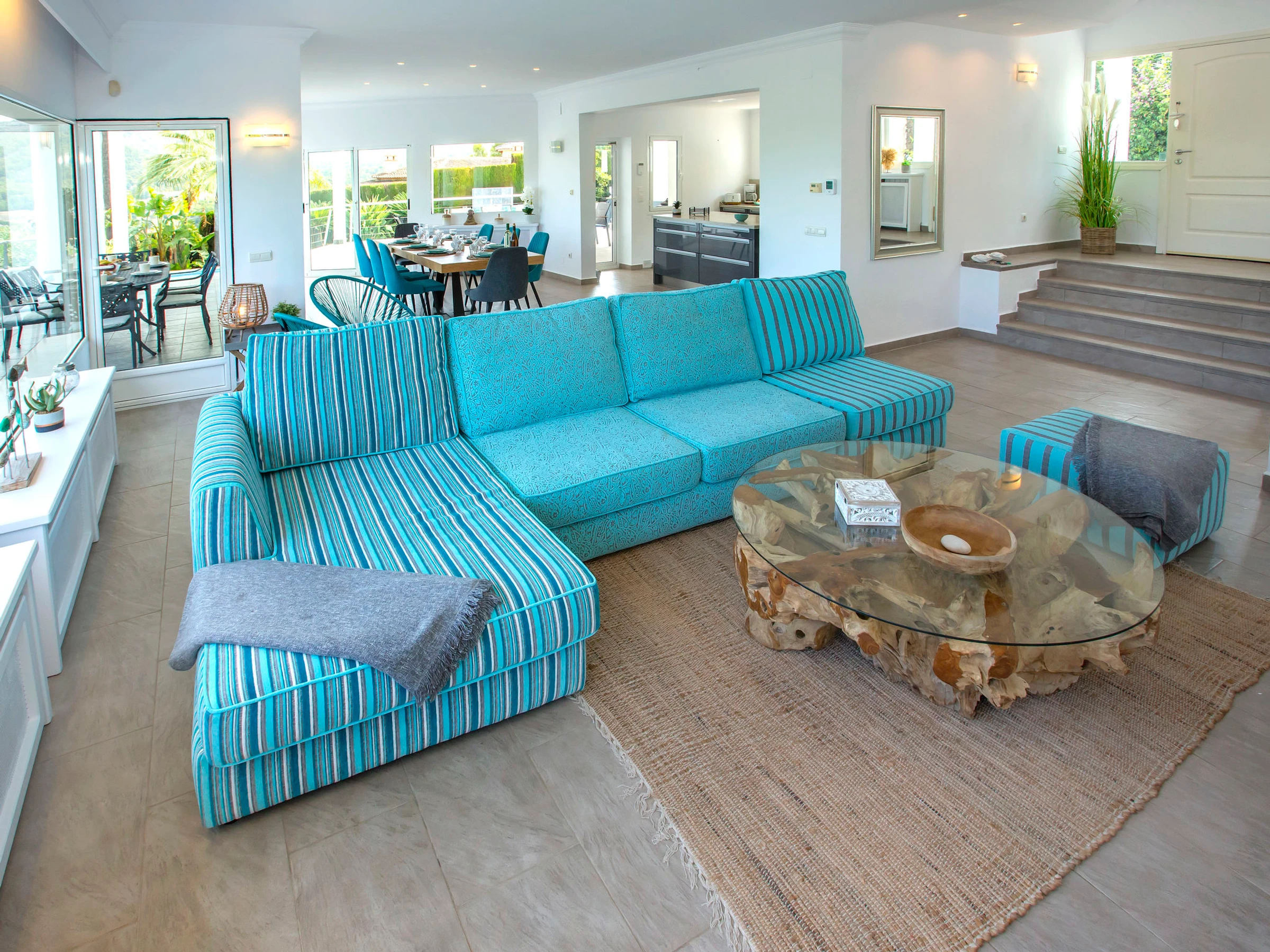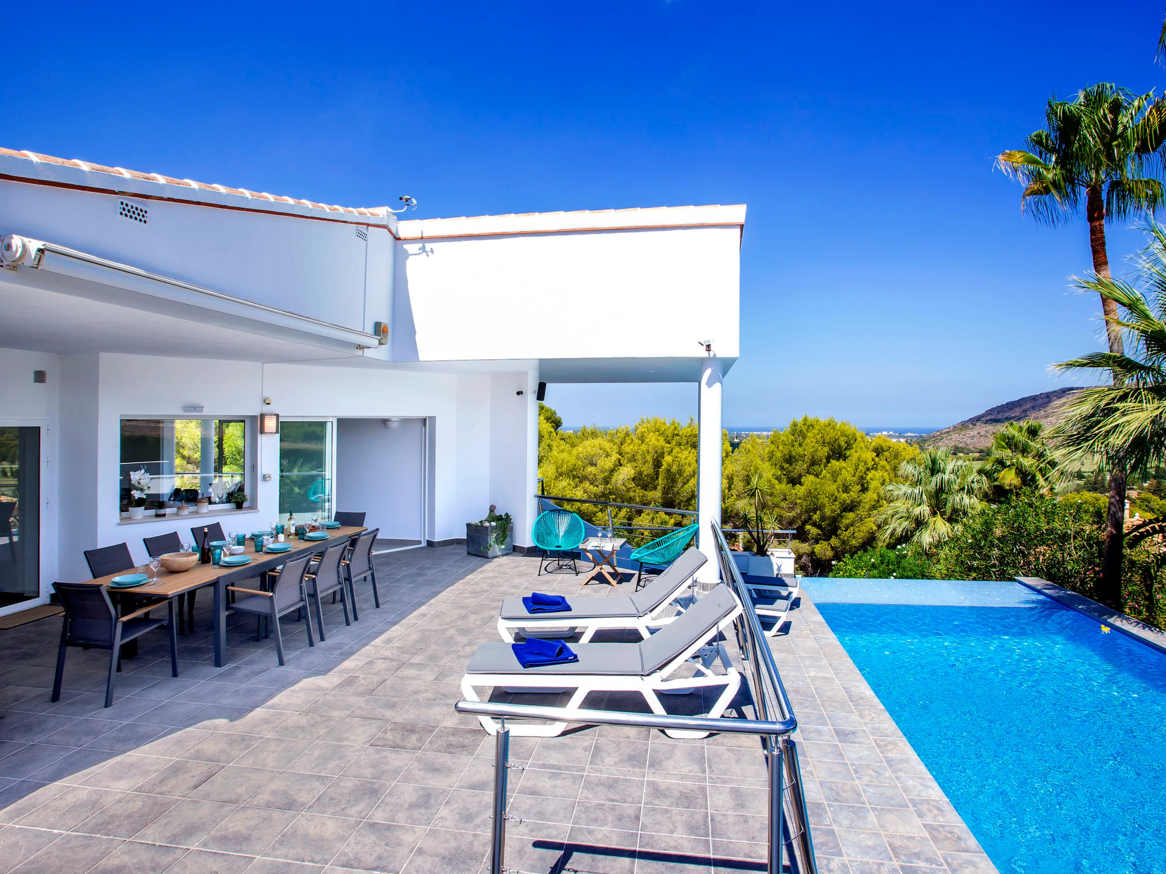 La Sella à 7 km de Dénia: Villa moderne, confortable, luxueuse "Laureen", environnée par les arbres. Dans le quartier de La Sella en-dehors de la localité, à 8 km du centre de Dénia, situation tranquille sur un versant, quartier résidentiel, zone avec peu de trafic, à 6 km de la mer, à 6 km de la plage. A usage privé: grand, beau jardin entretenu (clôturé) avec plantes et arbres, piscine rectangulaire (10 x 5 m, profondeur 110 - 220 cm, disponibilité saisonnière: [hidden] - [hidden] avec marches intérieures. Douche extérieure, pergola, terrasse, meubles de jardin, barbecue, place de parking (pour 2 voitures) sur le terrain. Magasins 2 km, centre commercial 7 km, restaurant 2 km, café 2 km, plage de sable 10 km. Port plaisance 10 km, marina 10 km, terrain de golf (27 trous) 3 km, ecole de surf 10 km, ecole de voile 10 km, tennis 2 km, centre équestre 5 km. Attractions à proximité: Golf Resort La Sella 5 km. Veuillez noter: voiture recommandée. Le propriétaire n'accepte pas les groupes de jeunes.