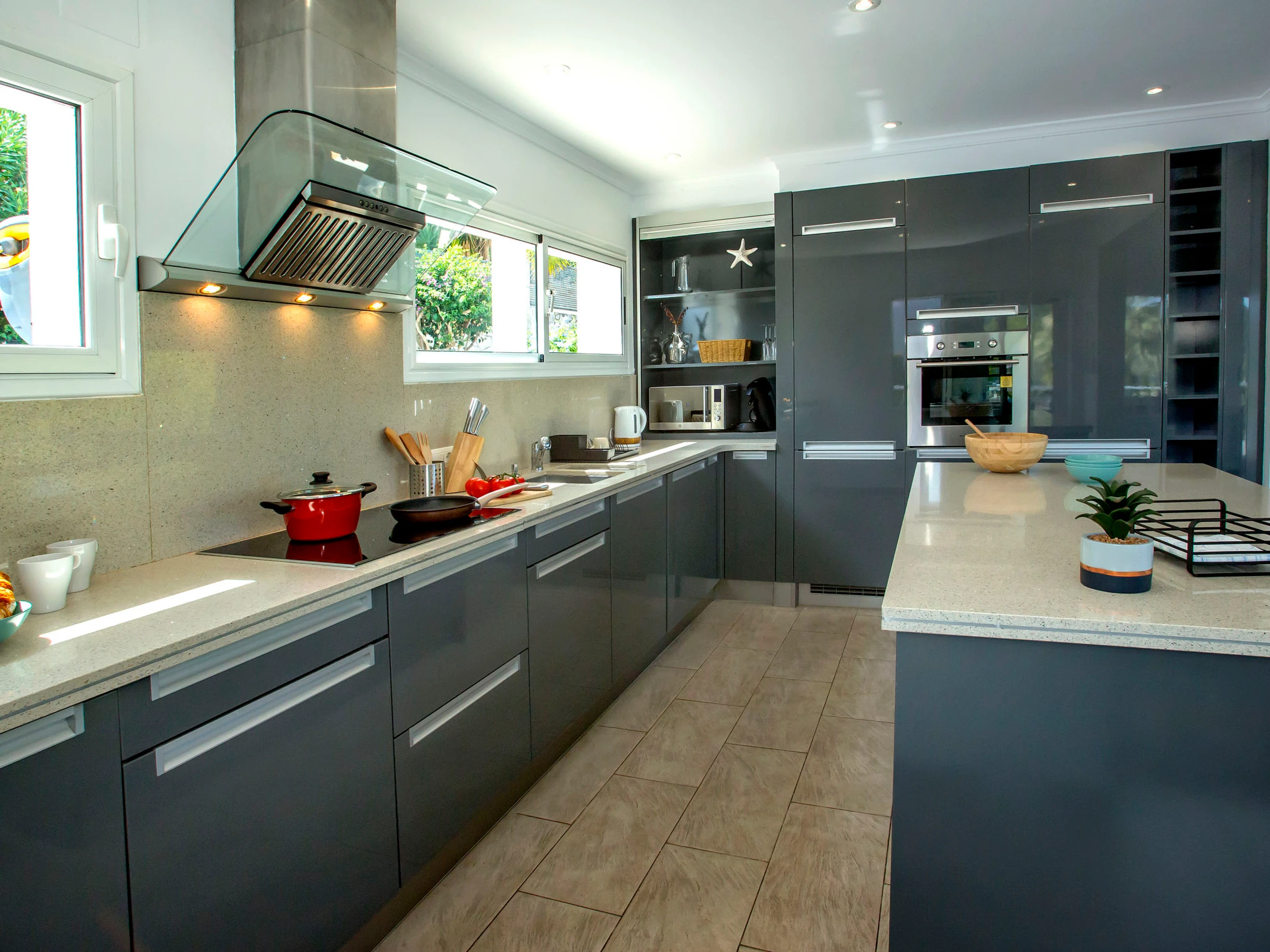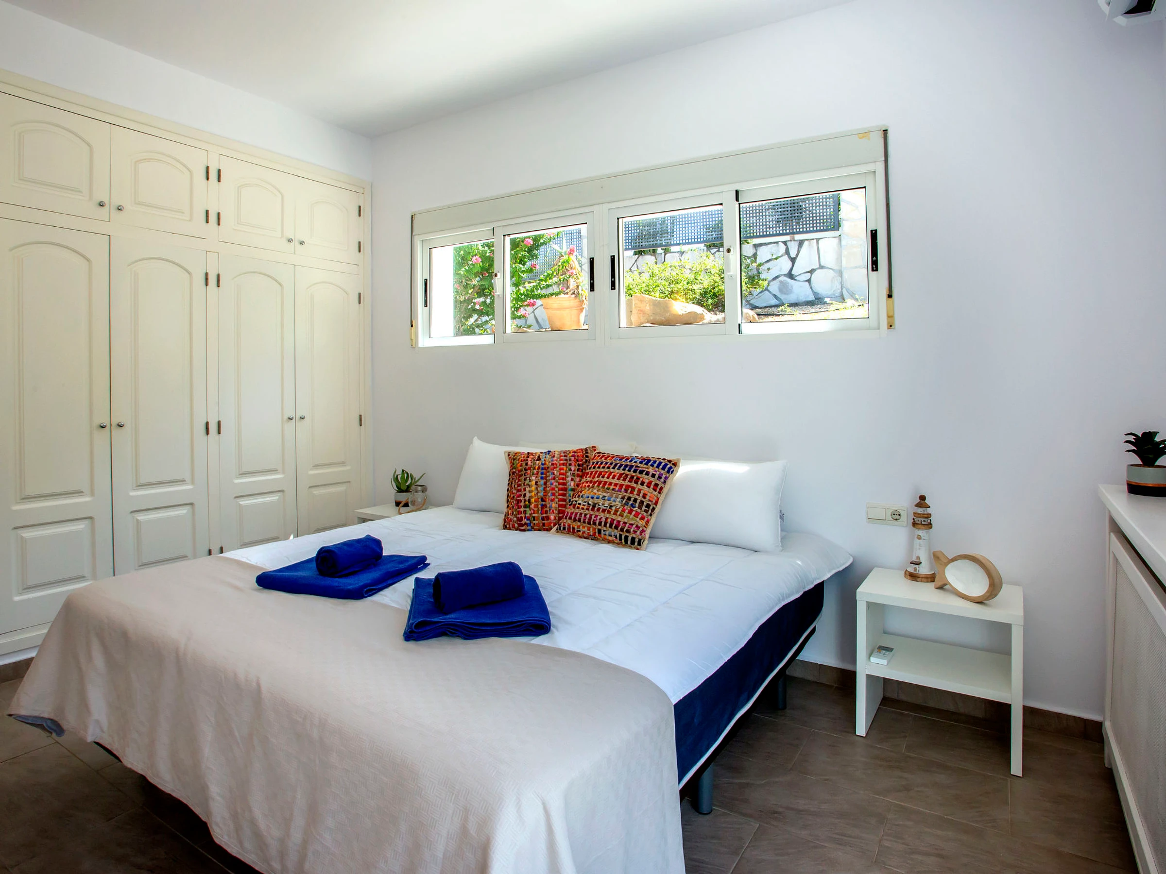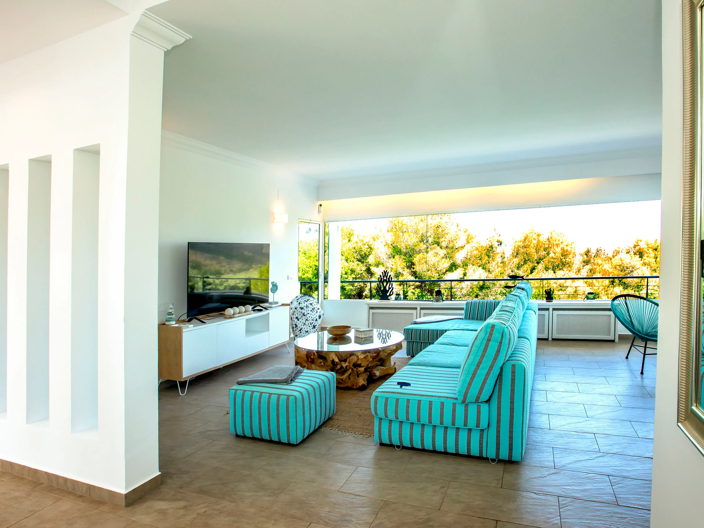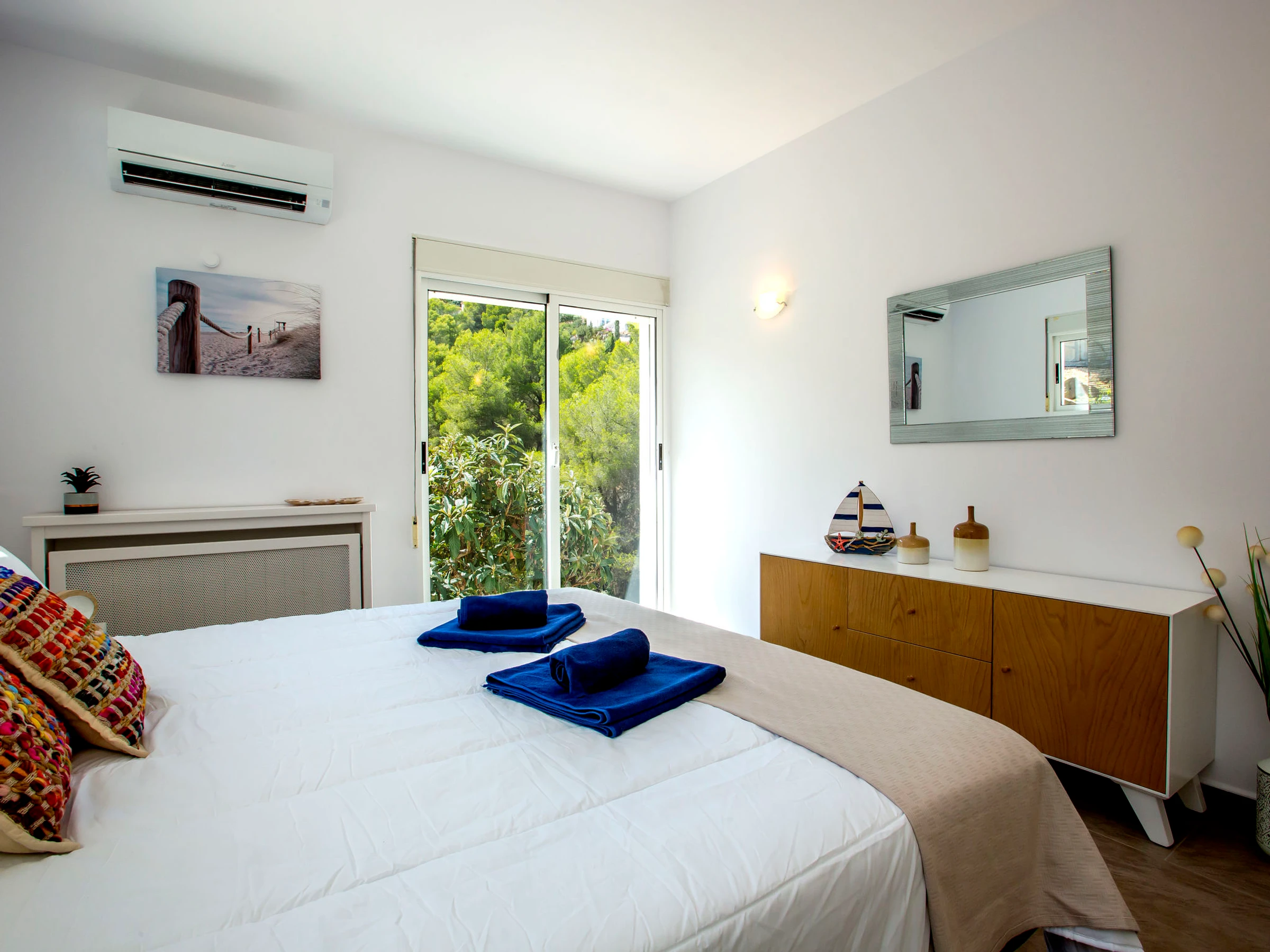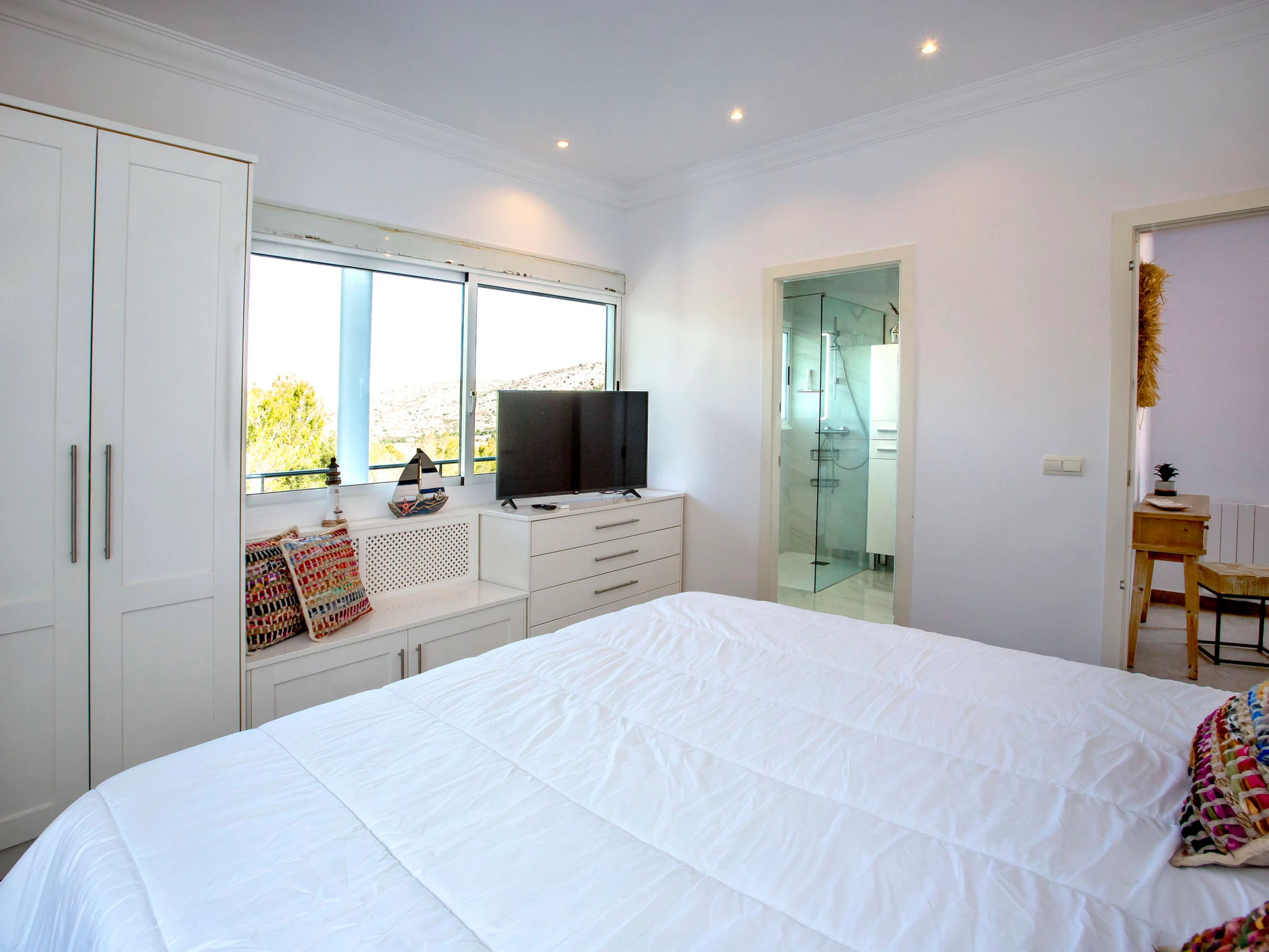 La Sella à 7 km de Dénia: Villa moderne, confortable, luxueuse "Laureen", environnée par les arbres. Dans le quartier de La Sella en-dehors de la localité, à 8 km du centre de Dénia, situation tranquille sur un versant, quartier résidentiel, zone avec peu de trafic, à 6 km de la mer, à 6 km de la plage. A usage privé: grand, beau jardin entretenu (clôturé) avec plantes et arbres, piscine rectangulaire (10 x 5 m, profondeur 110 - 220 cm, disponibilité saisonnière: [hidden] - [hidden] avec marches intérieures. Douche extérieure, pergola, terrasse, meubles de jardin, barbecue, place de parking (pour 2 voitures) sur le terrain. Magasins 2 km, centre commercial 7 km, restaurant 2 km, café 2 km, plage de sable 10 km. Port plaisance 10 km, marina 10 km, terrain de golf (27 trous) 3 km, ecole de surf 10 km, ecole de voile 10 km, tennis 2 km, centre équestre 5 km. Attractions à proximité: Golf Resort La Sella 5 km. Veuillez noter: voiture recommandée. Le propriétaire n'accepte pas les groupes de jeunes.