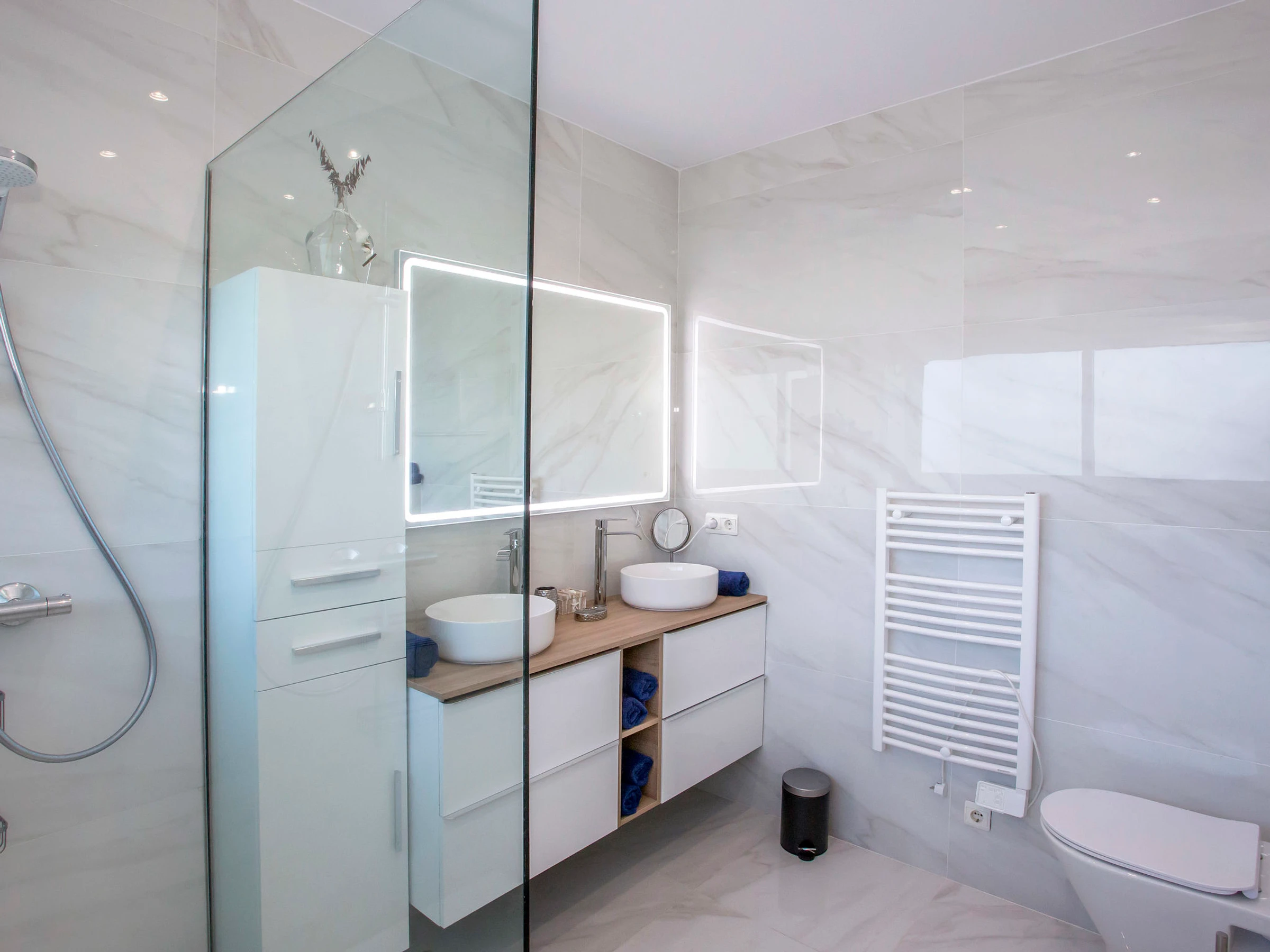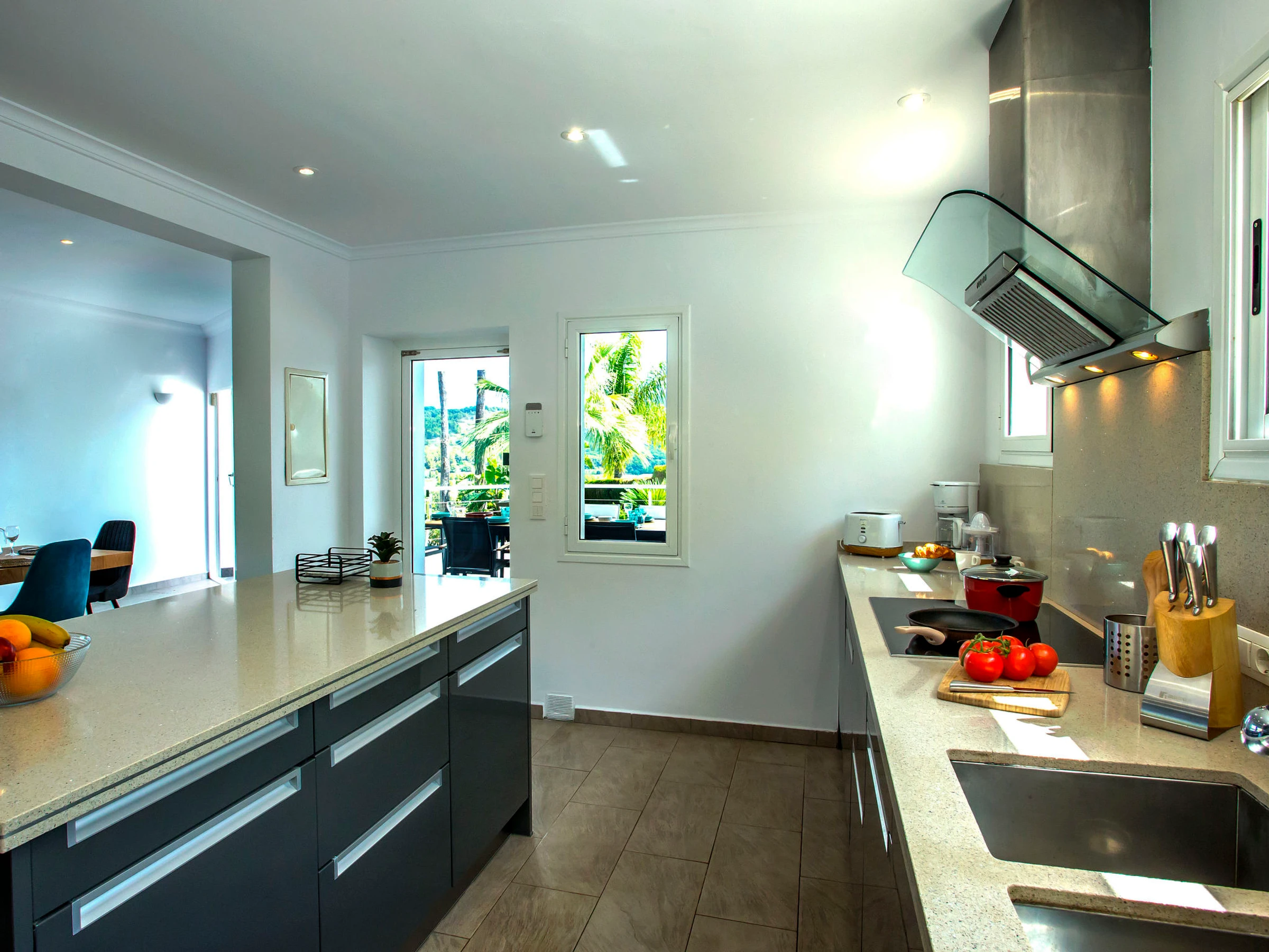 "Villa Laureen", villa 4 pièces 200 m2. Spacieux et clair, aménagement très agréable et de style: séjour/salle à manger avec TV (satellite), air-conditionné et chauffage à air chaud. Sortie sur la terrasse, sur la piscine. 1 chambre avec 1 grand-lit (180 cm, longueur 200 cm), douche/WC, Télévision numérique, air-conditionné et chauffage à air chaud. 1 chambre avec 1 grand-lit (180 cm, longueur 200 cm), air-conditionné et chauffage à air chaud. 1 chambre avec 2 lits (90 cm, longueur 200 cm), air-conditionné et chauffage à air chaud. Grande cuisine ouverte (four, lave-vaisselle, 3 plaques à induction, grille-pain, micro-ondes, congélateur, cafetière électrique). Douche/WC. Grande terrasse couverte, situation est. Meubles de terrasse, barbecue, chaises longues (6). Superbe vue sur la mer, les montagnes et la vallée. A disposition: lave-linge, fer à repasser, chaise haute pour enfant, lit bébé, sèche-cheveux. Internet (Connexion WIFI, gratuit). [hidden]