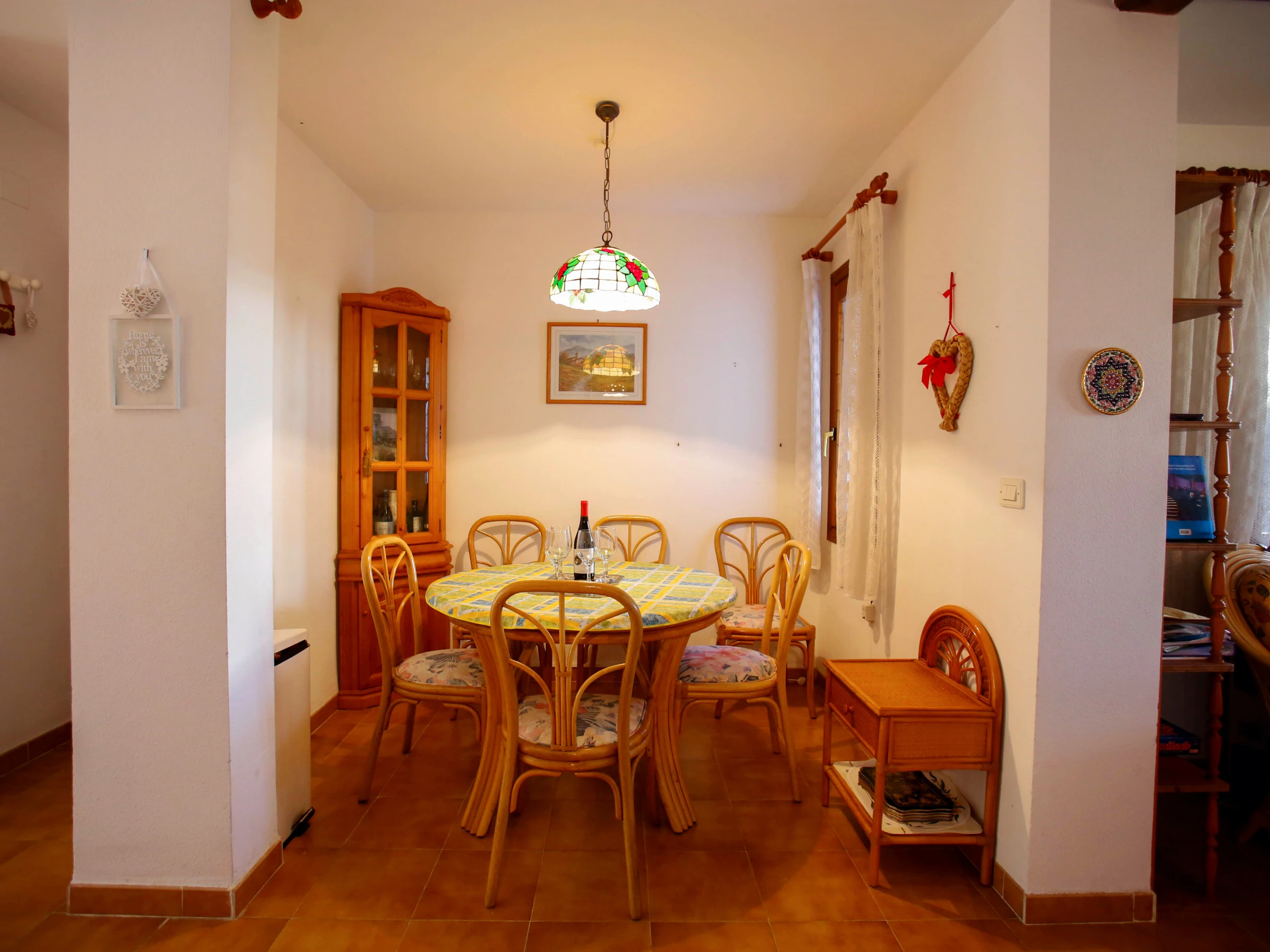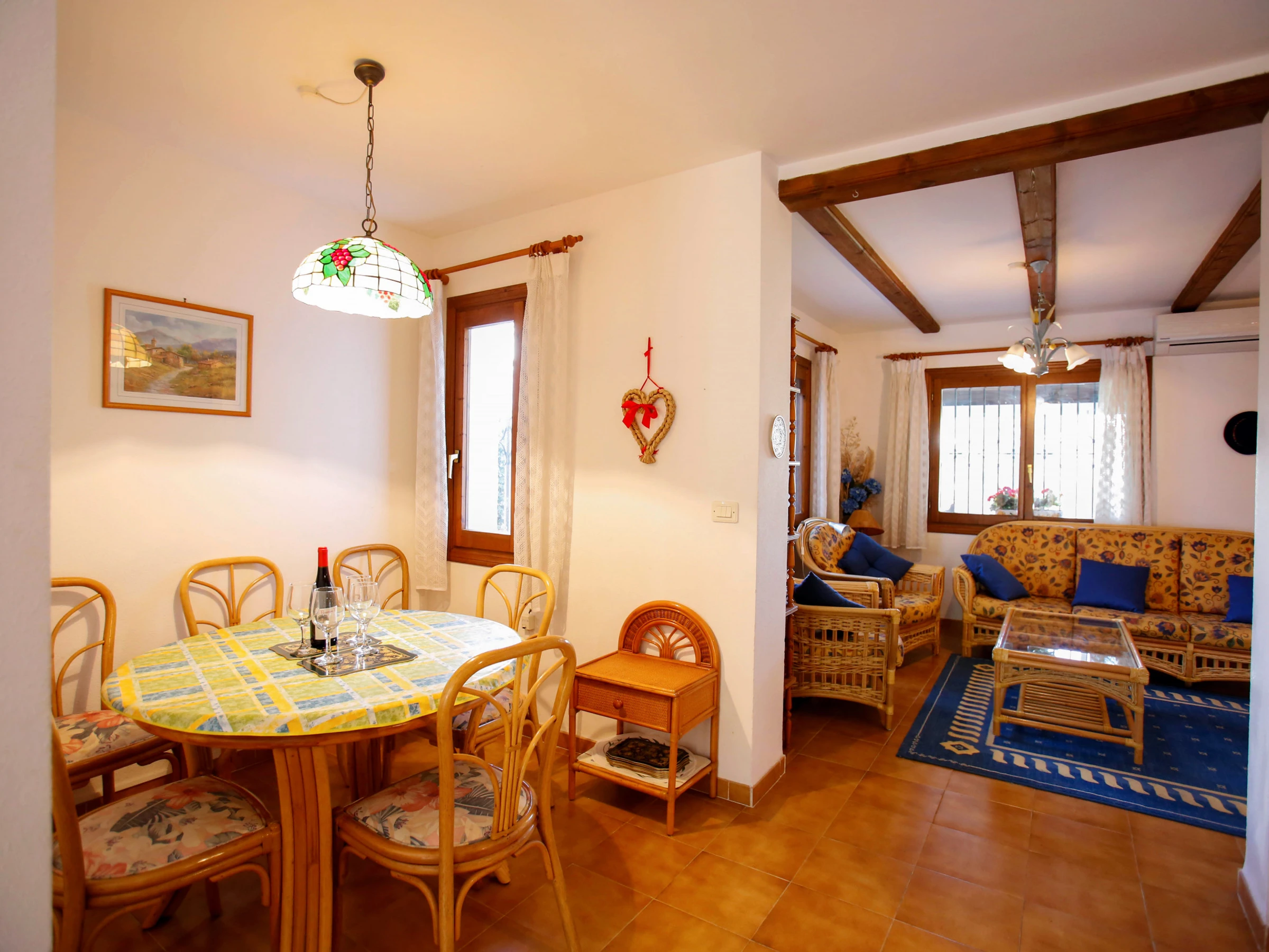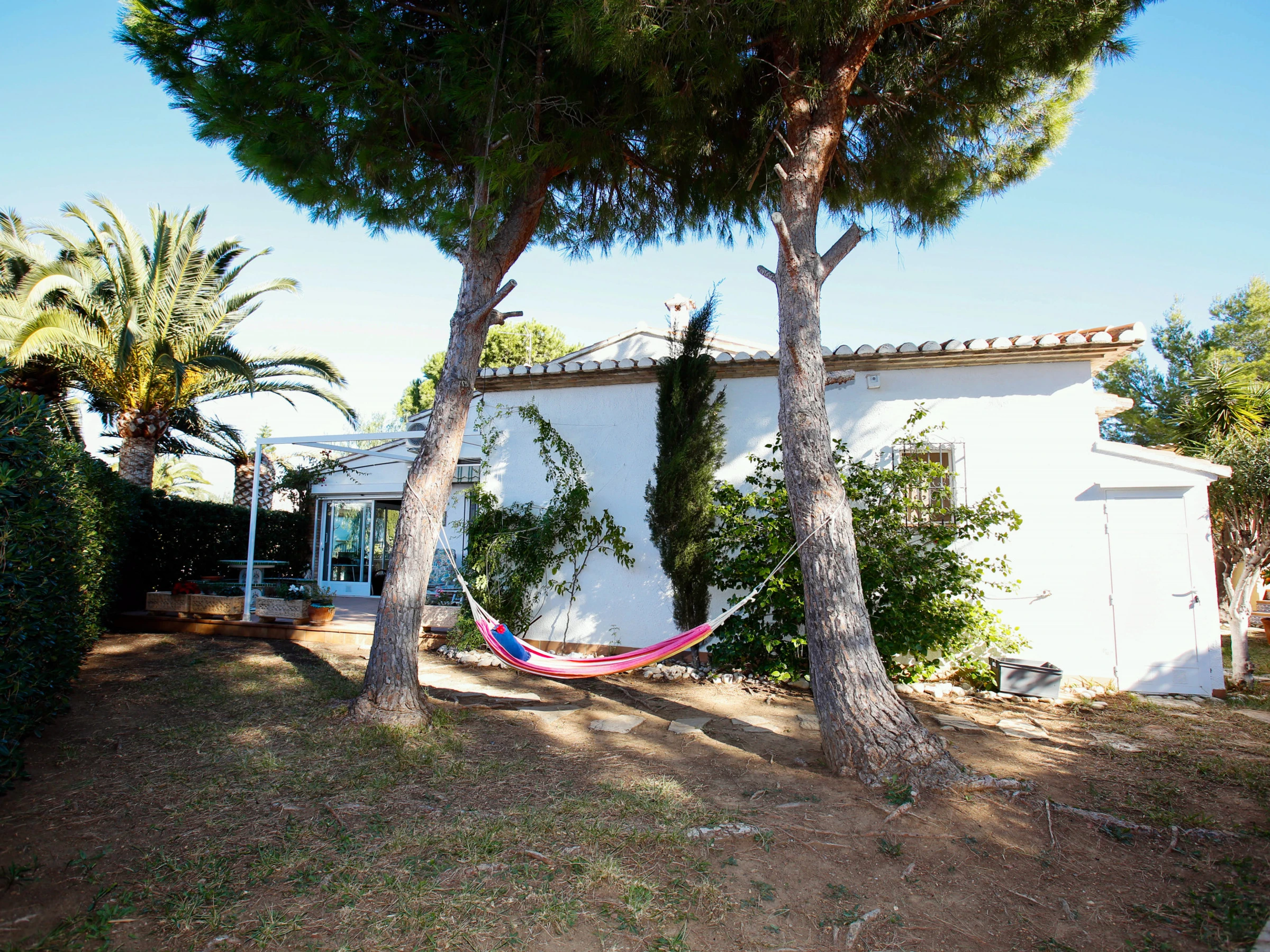 Elle dispose de jardin, mobilier de jardin, clôture, terrasse, lave-linge, barbecue, cheminée, fer à repasser, climatisation dans le salon, piscine collective+infantile, parking extérieur même bâtiment, TV, tv satellite (Langues: Espagnol, Anglais, Français).