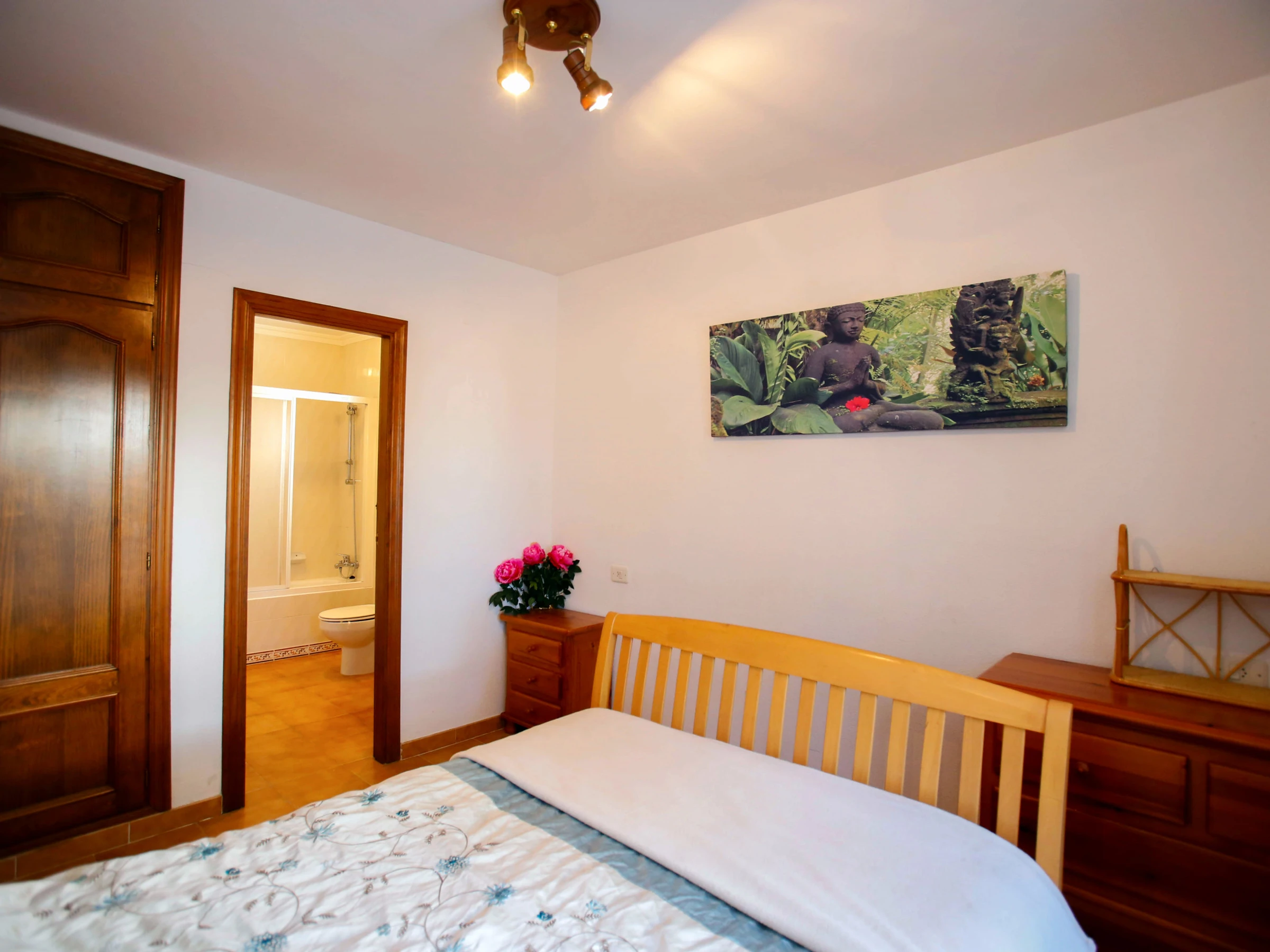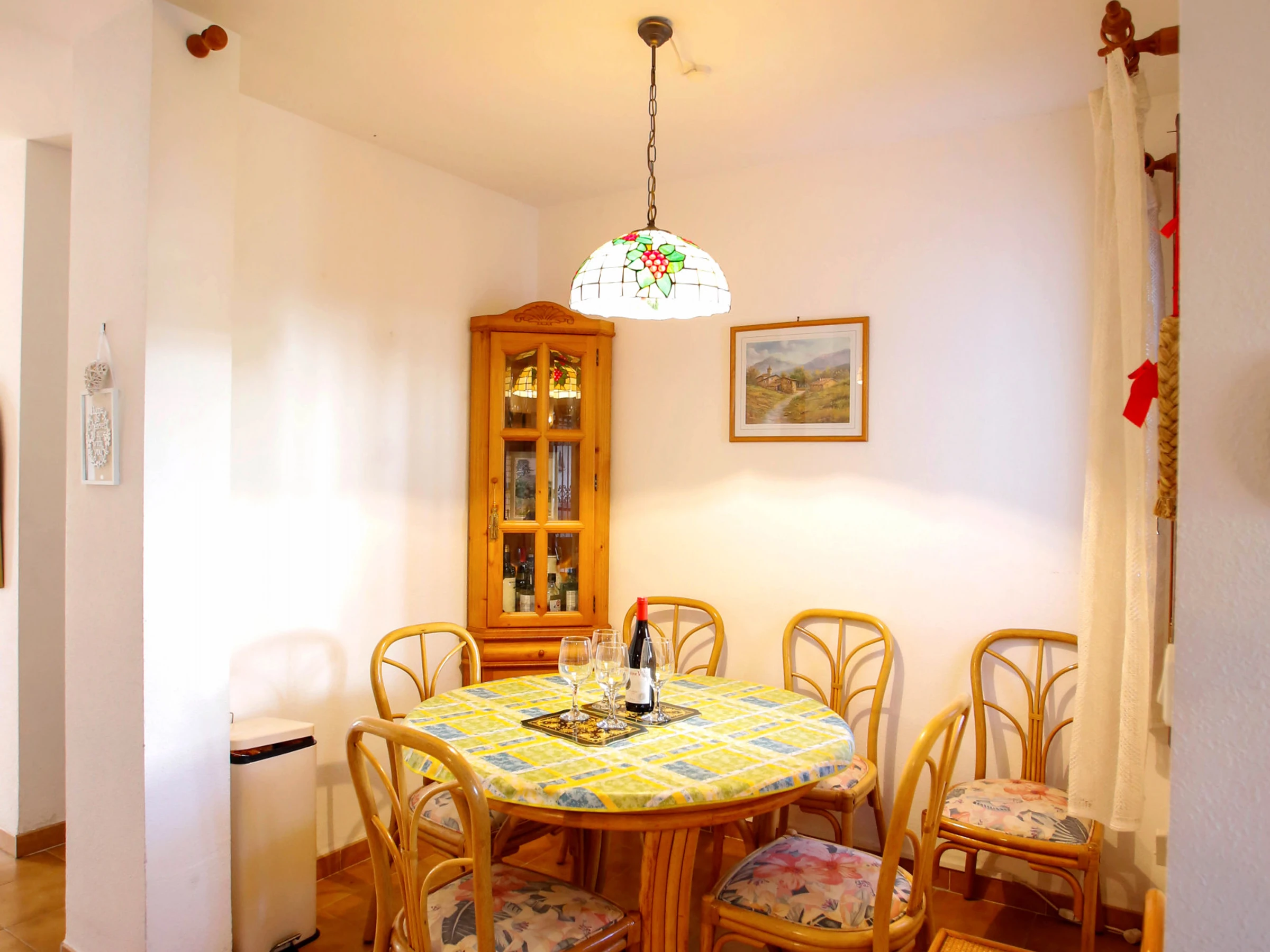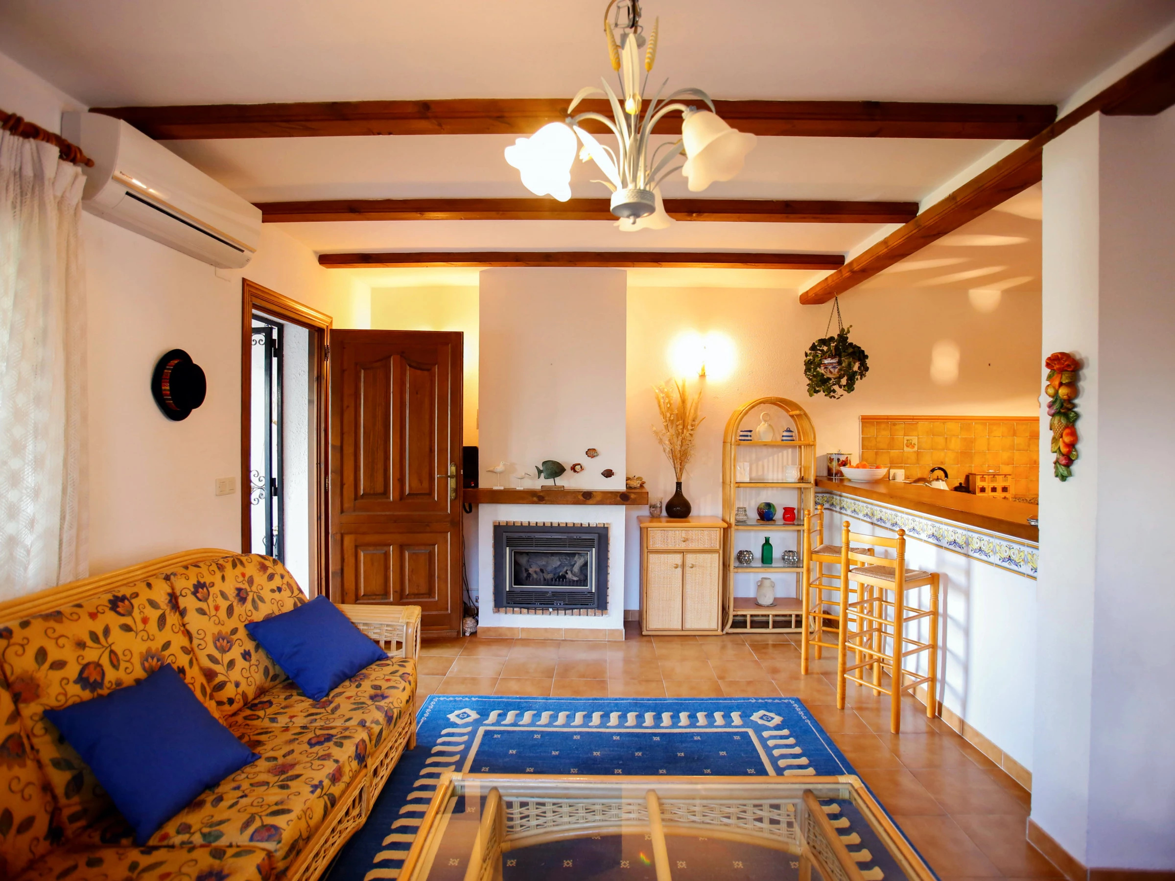 Elle dispose de jardin, mobilier de jardin, clôture, terrasse, lave-linge, barbecue, cheminée, fer à repasser, climatisation dans le salon, piscine collective+infantile, parking extérieur même bâtiment, TV, tv satellite (Langues: Espagnol, Anglais, Français).