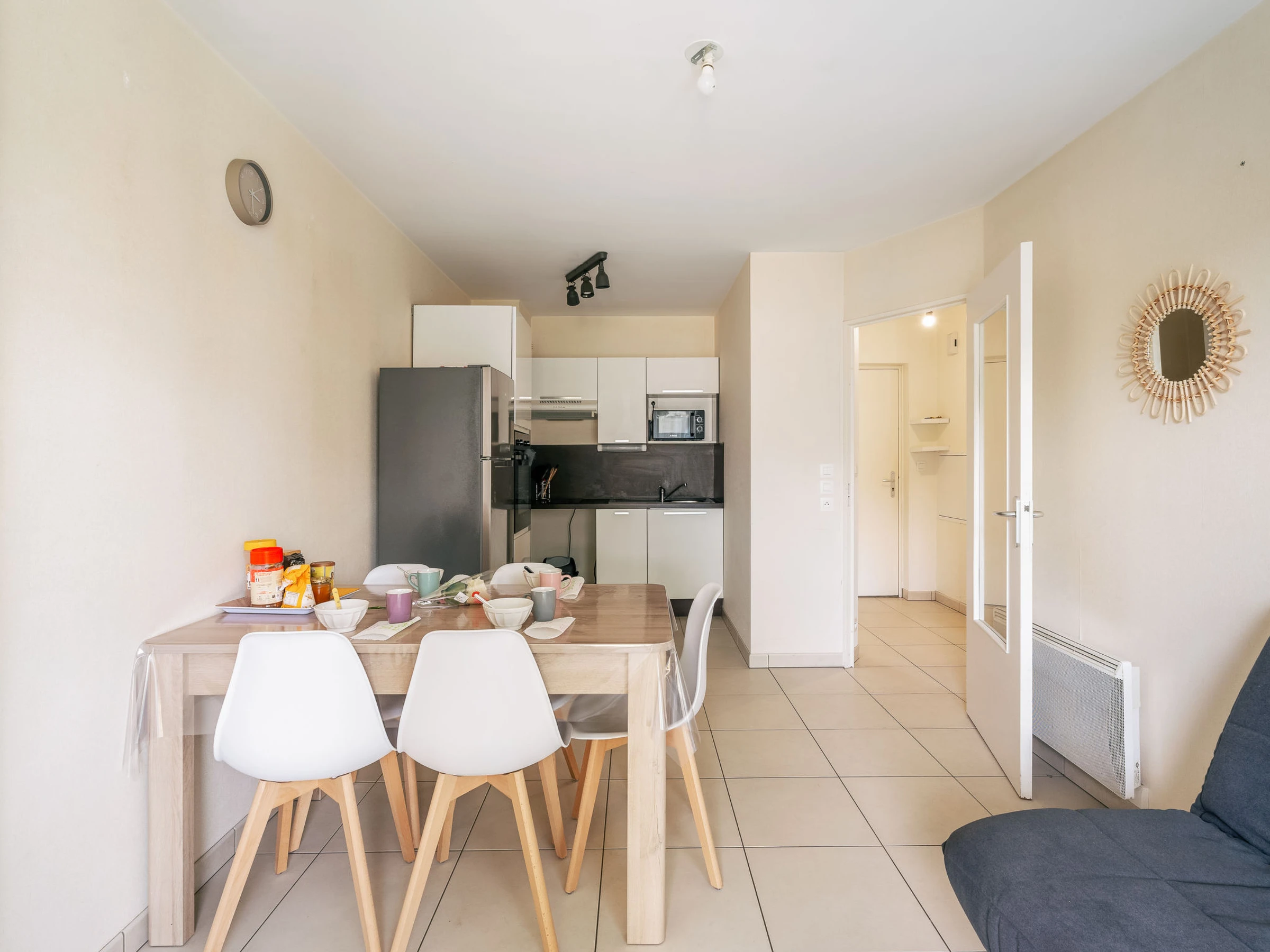 "Le Moulin de Rose", apt 2 pièces 38 m2, au rez-de-chaussée, situation ouest. Séjour/salle à manger avec TV (écran plat). 1 chambre avec 1 grand-lit (1 x 140 cm, longueur 190 cm). Cuisine ouverte (four, 2 plaques vitrocéramiques, grille-pain, bouilloire électrique, micro-ondes, cafetière électrique). Douche/WC. Chauffage électrique. Jardin. Meubles de terrasse. A disposition: lave-linge. Internet (Connexion WIFI, gratuit). Place de parking (couvert, 1 Voiture). Veuillez noter: logement non-fumeur. Détecteur de fumée. Annonce d'un particulier (art 155, IV du CGI).