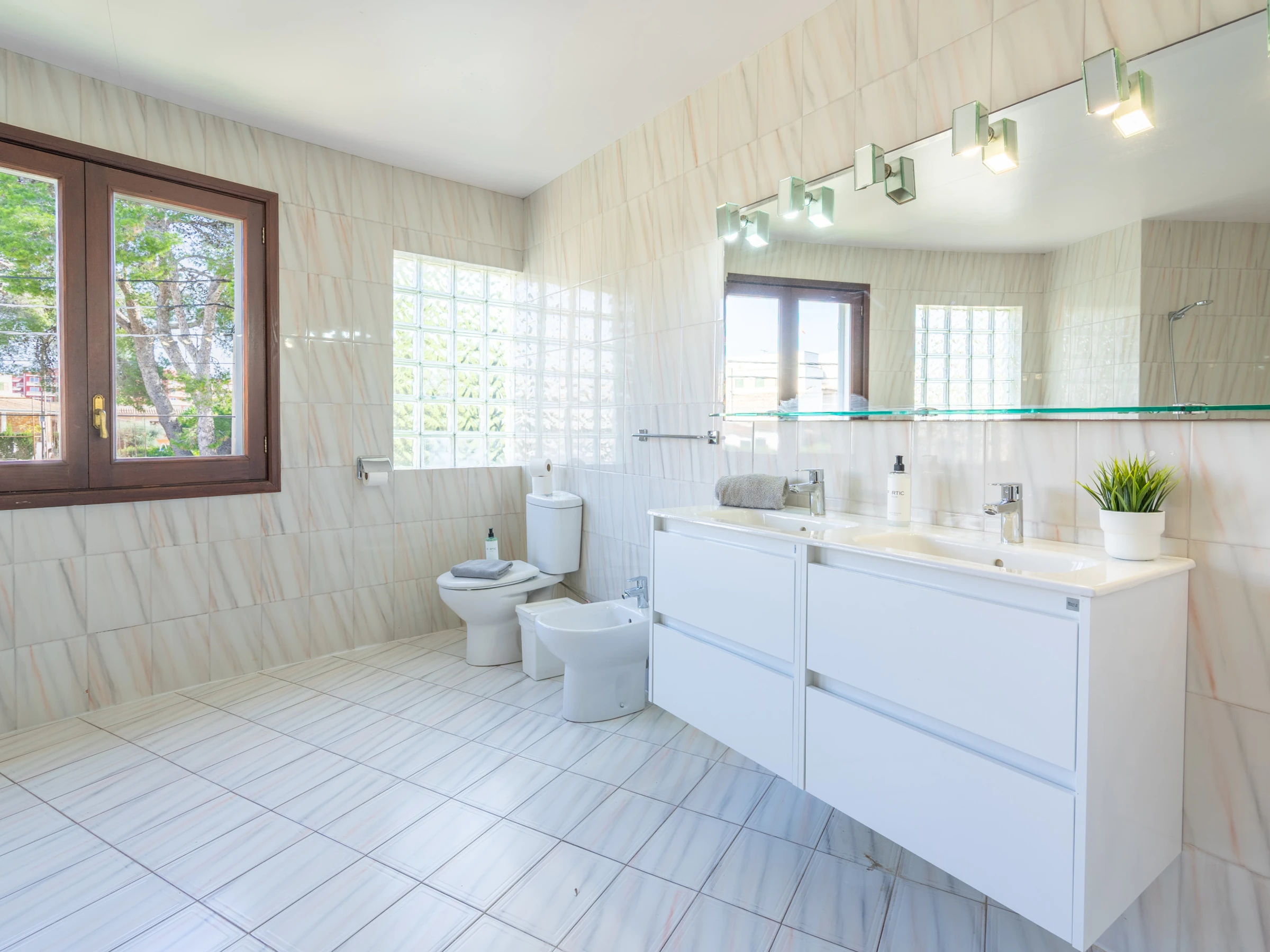 Cette grande villa se compose de 7 chambres, 4 salles de bains, qui permet à 14 personnes d'être logés dans un confort total. À l'intérieur du chalet, nous trouvons un grand salon lumineux et des fauteuils confortables accompagnés d'une décoration délicate où vous pouvez regarder la télévision ou passer du temps en compagnie d'un bon livre. Dans la salle à manger, vous pourrez déguster des plats délicieux avec une saveur méditerranéenne préparée dans la grande cuisine entièrement équipée que vous avez à votre disposition. La propriété dispose également d'une connexion Internet, de la climatisation et de toutes les commodités pour votre plaisir.