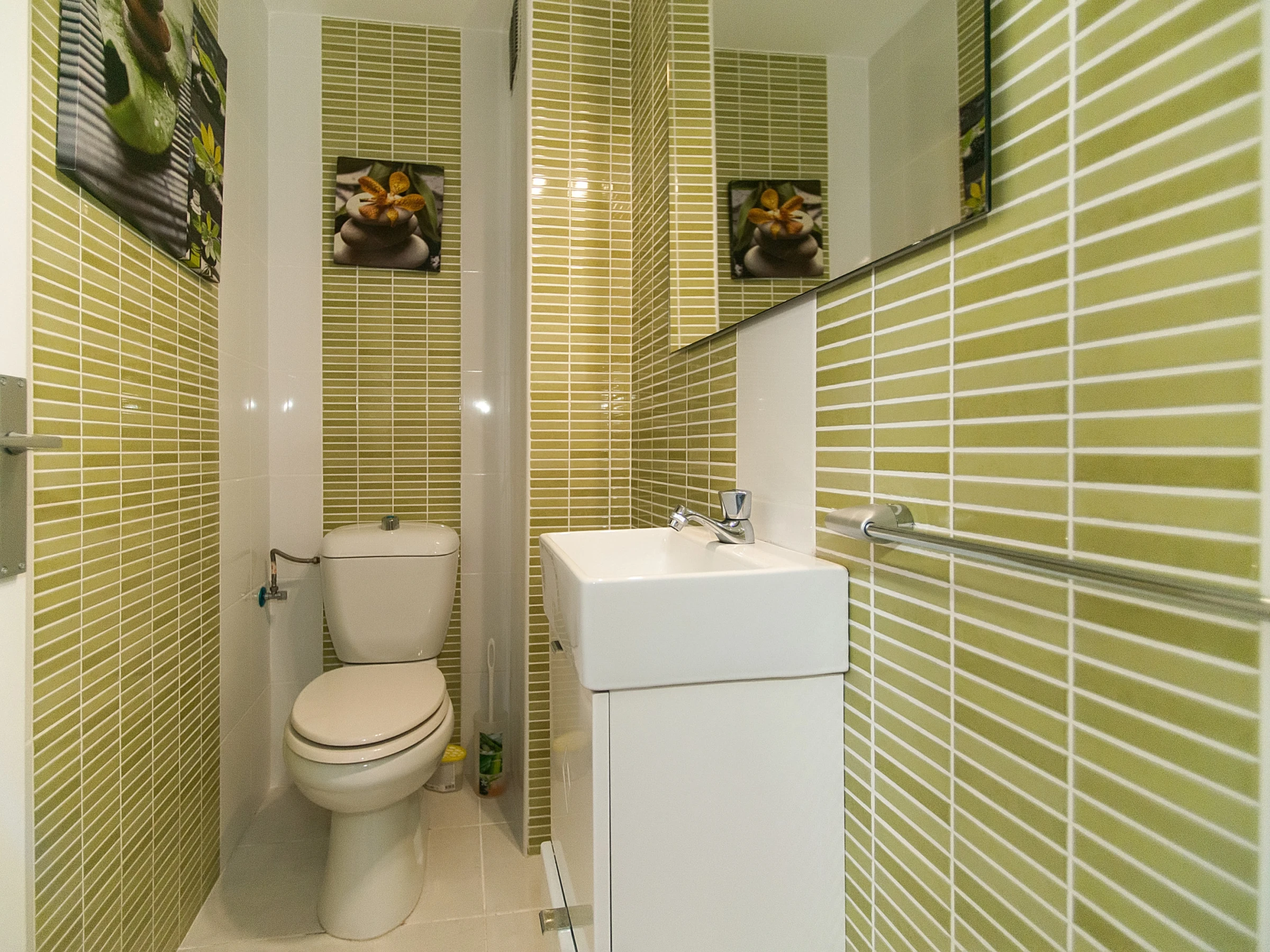 La salle de bain moderne est équipée d'une douche, et des toilettes supplémentaires assurent le confort pendant votre séjour.