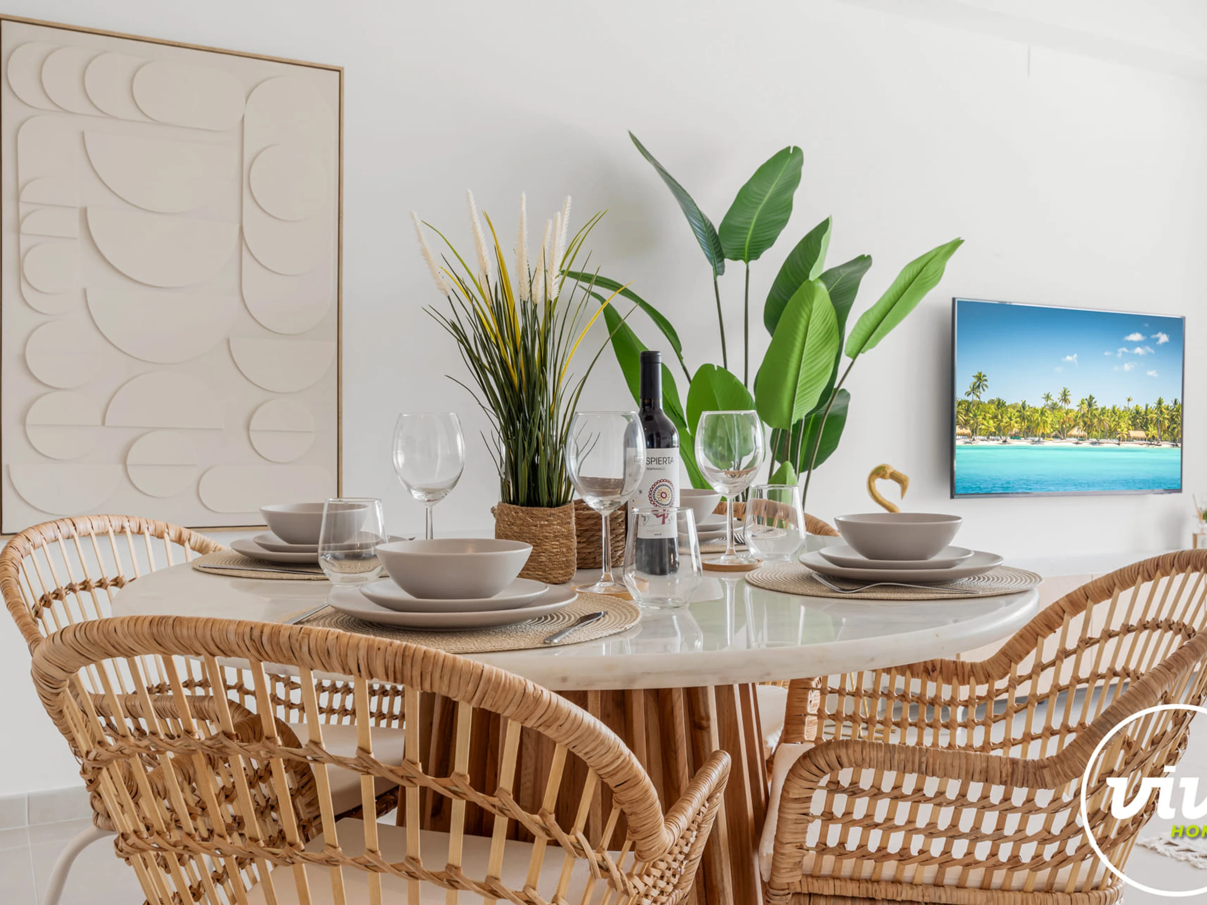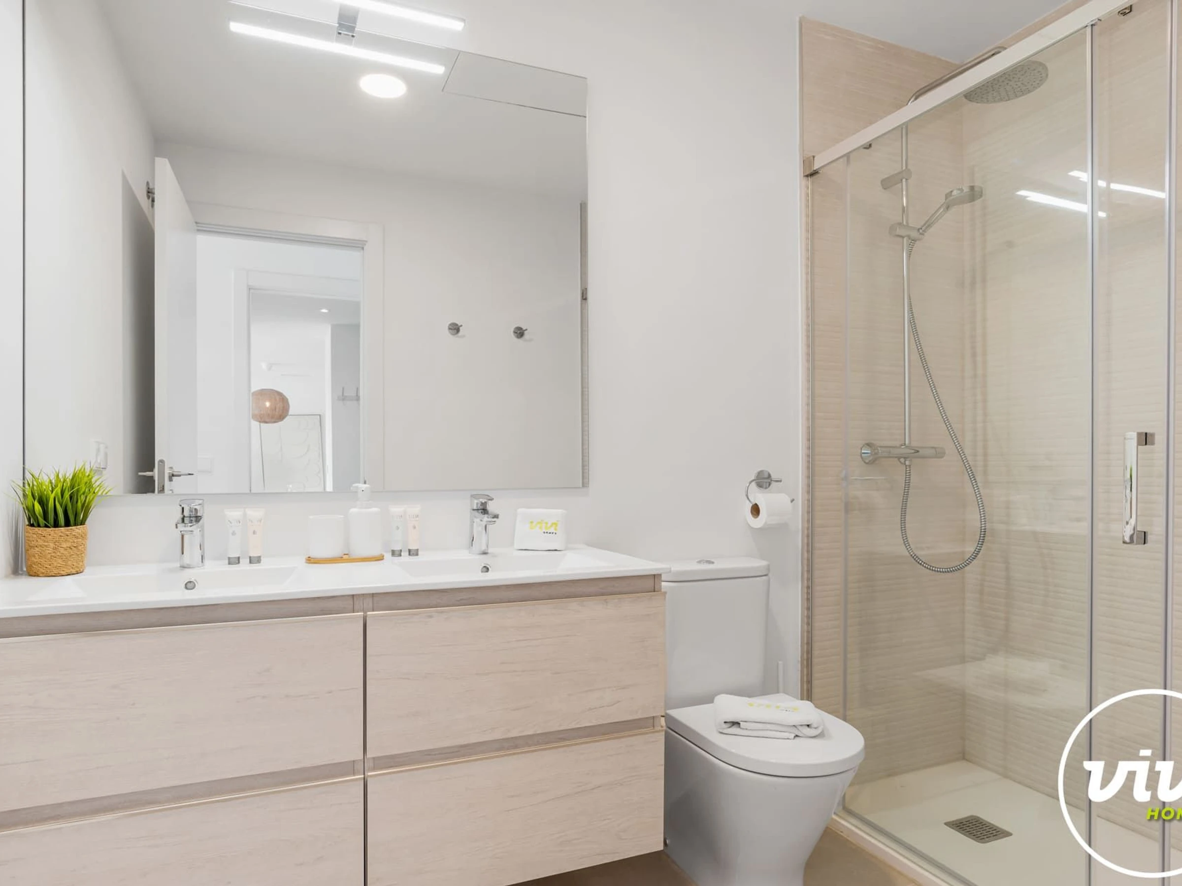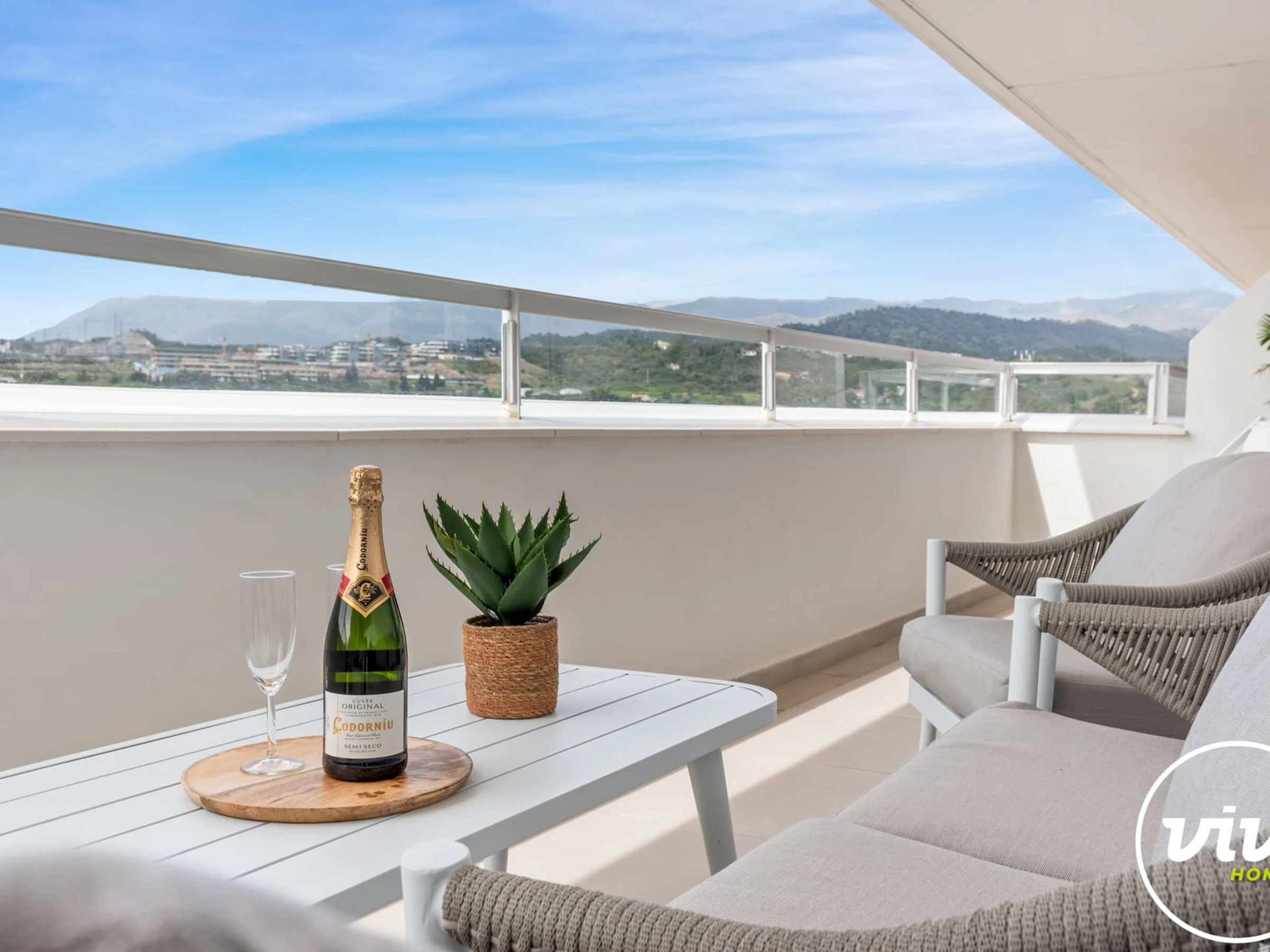 Logement de 80 m² confortable et moderne, avec vue sur la mer et la montagne.
