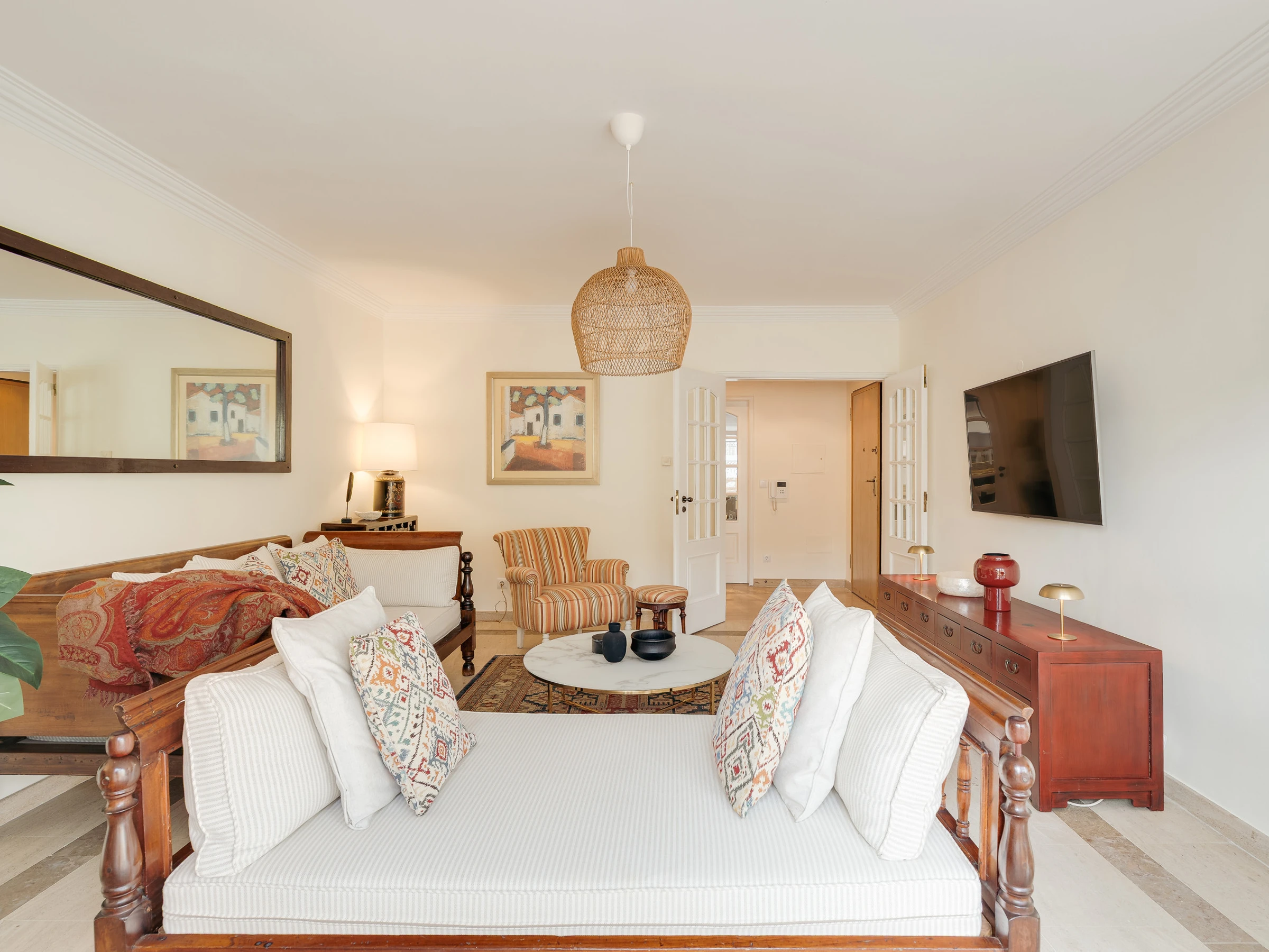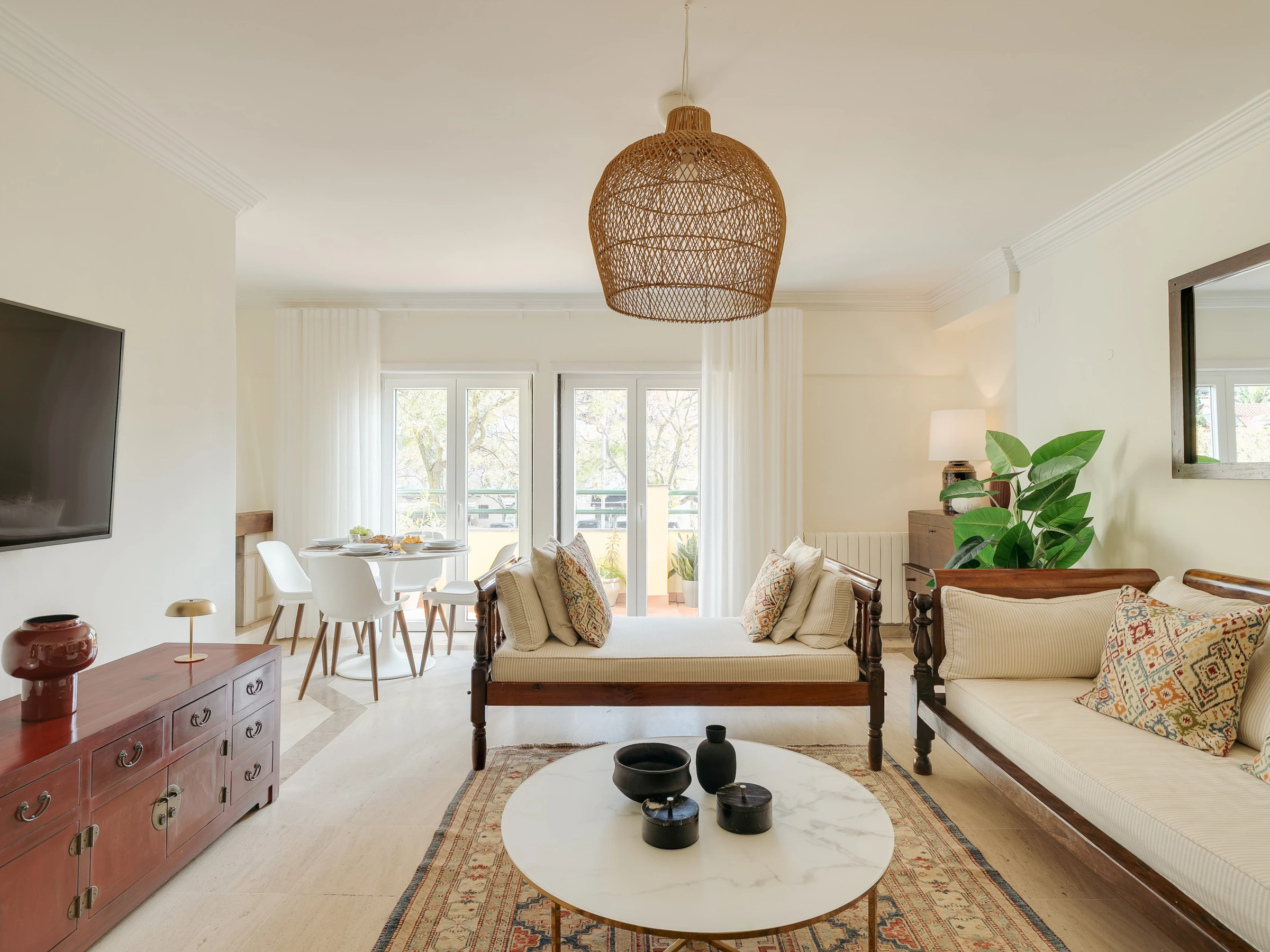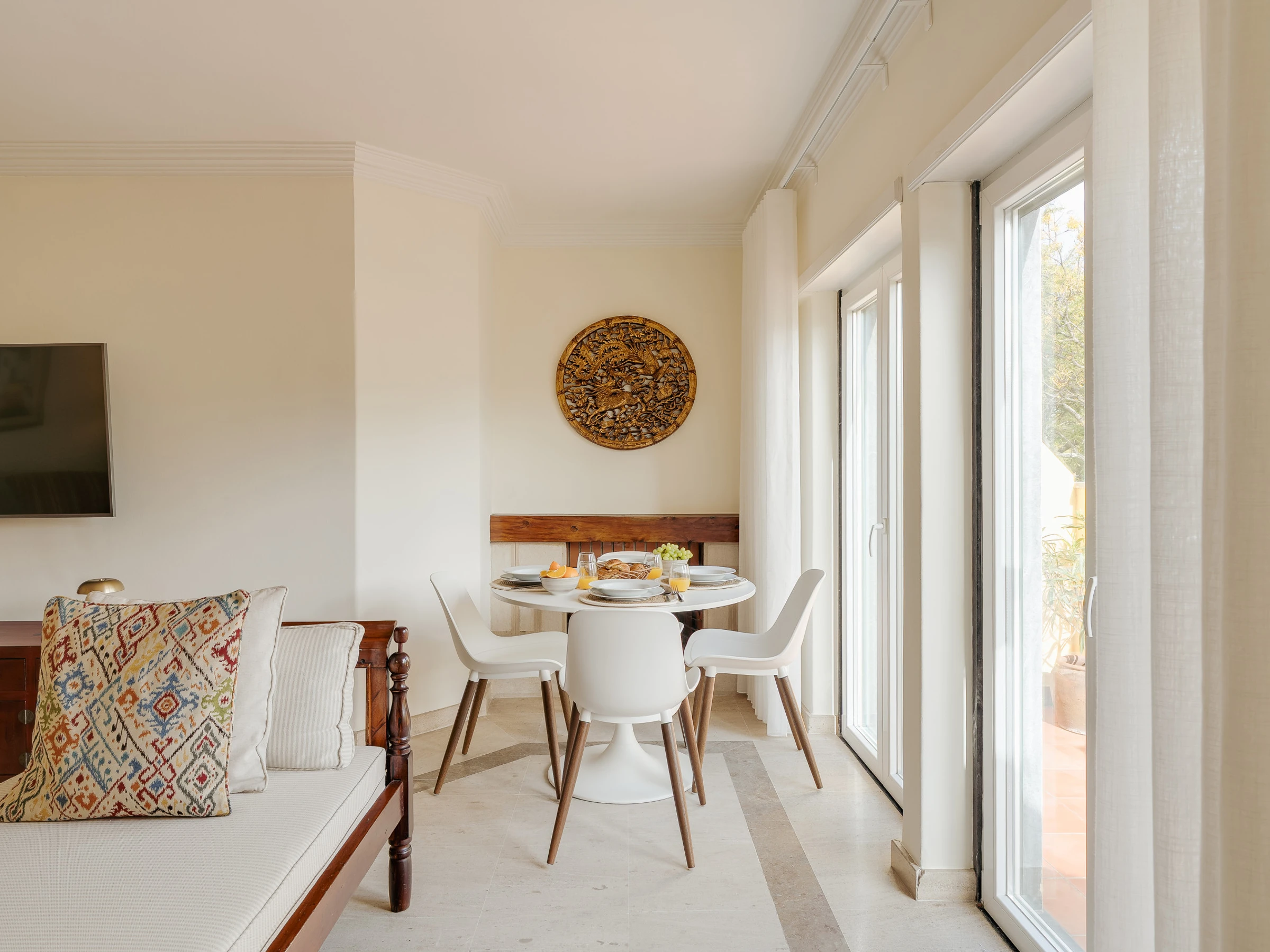 Entrez, et la sophistication discrète s'intensifie. Ici, le confort contemporain s'entremêle avec un design empreint de caractère, baigné par la lumière dorée portugaise. C'est une atmosphère de retraite sereine, un prélude au rivage d'Estoril tout proche.