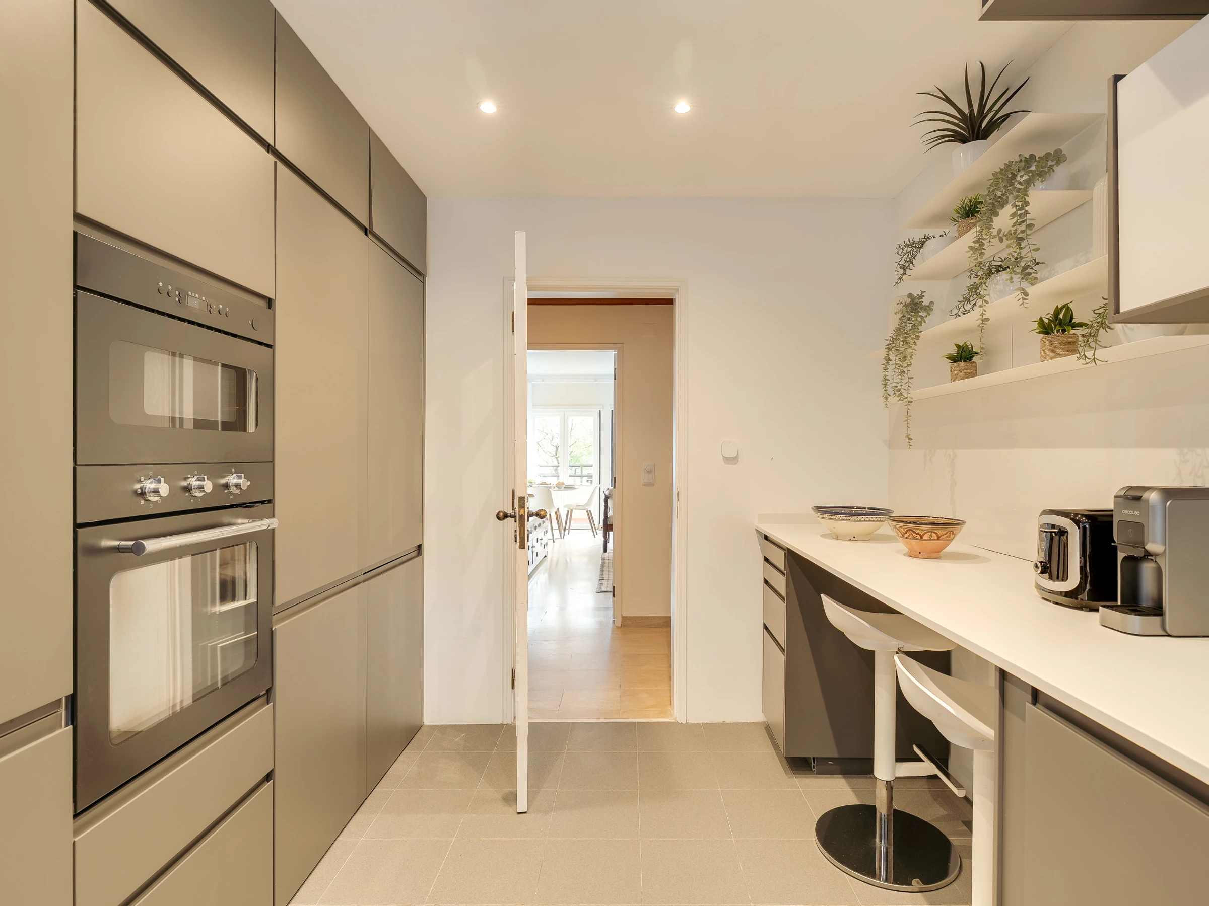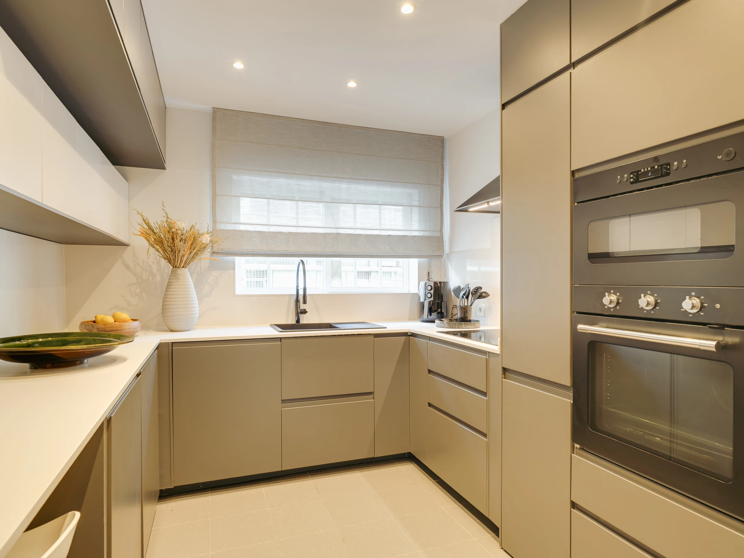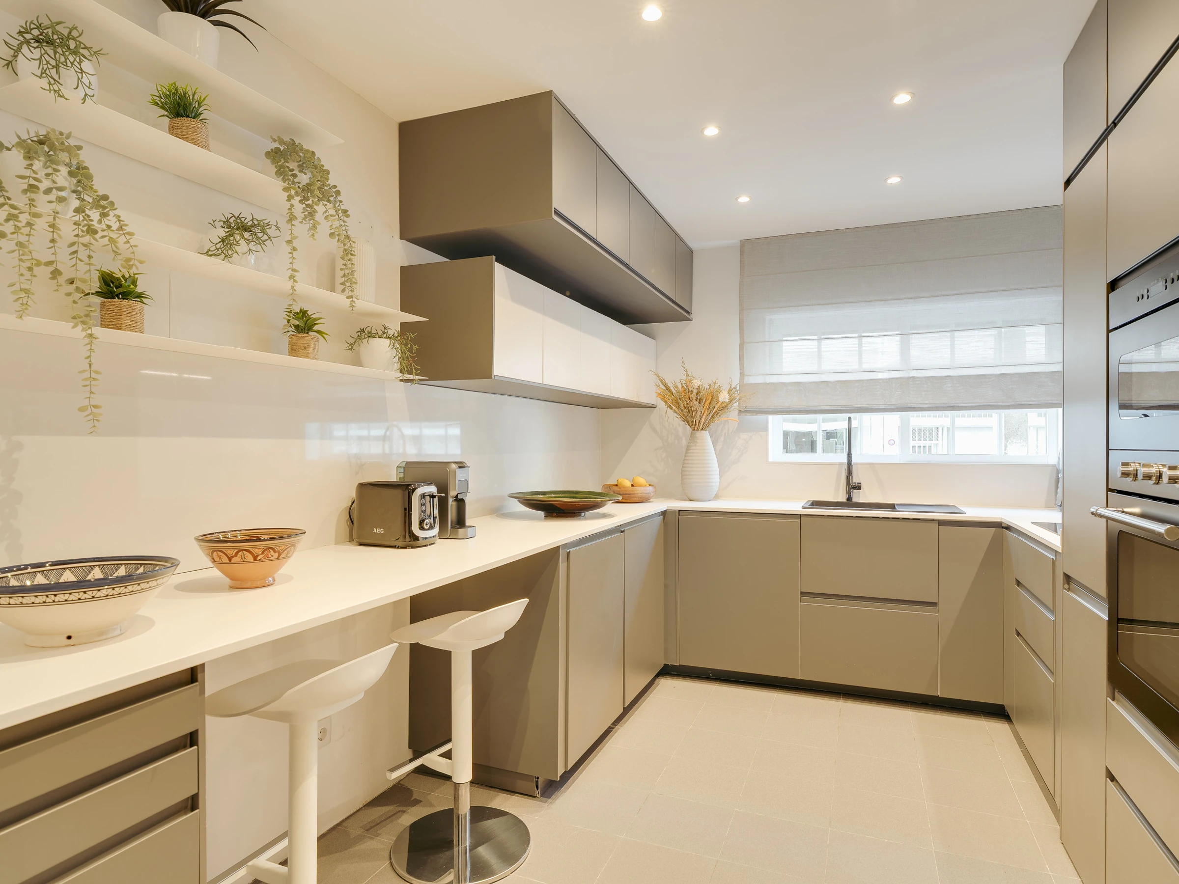 Pénétrez dans L'Atelier Riviera Estoril, et le soleil portugais semble vous suivre. Des sols en pierre polie rafraîchissent les pieds nus, vous guidant à travers des espaces où l'élégance coloniale rencontre l'esprit aéré de Bali. Le cœur de l'appartement, une cuisine récemment rénovée, est une étude de contrastes : des armoires sombres et élégantes ancrant la lueur éthérée des surfaces en quartz blanc. Imaginez les matins ici, où l'arôme du café portugais se mêle à l'air salé qui dérive de la côte toute proche.