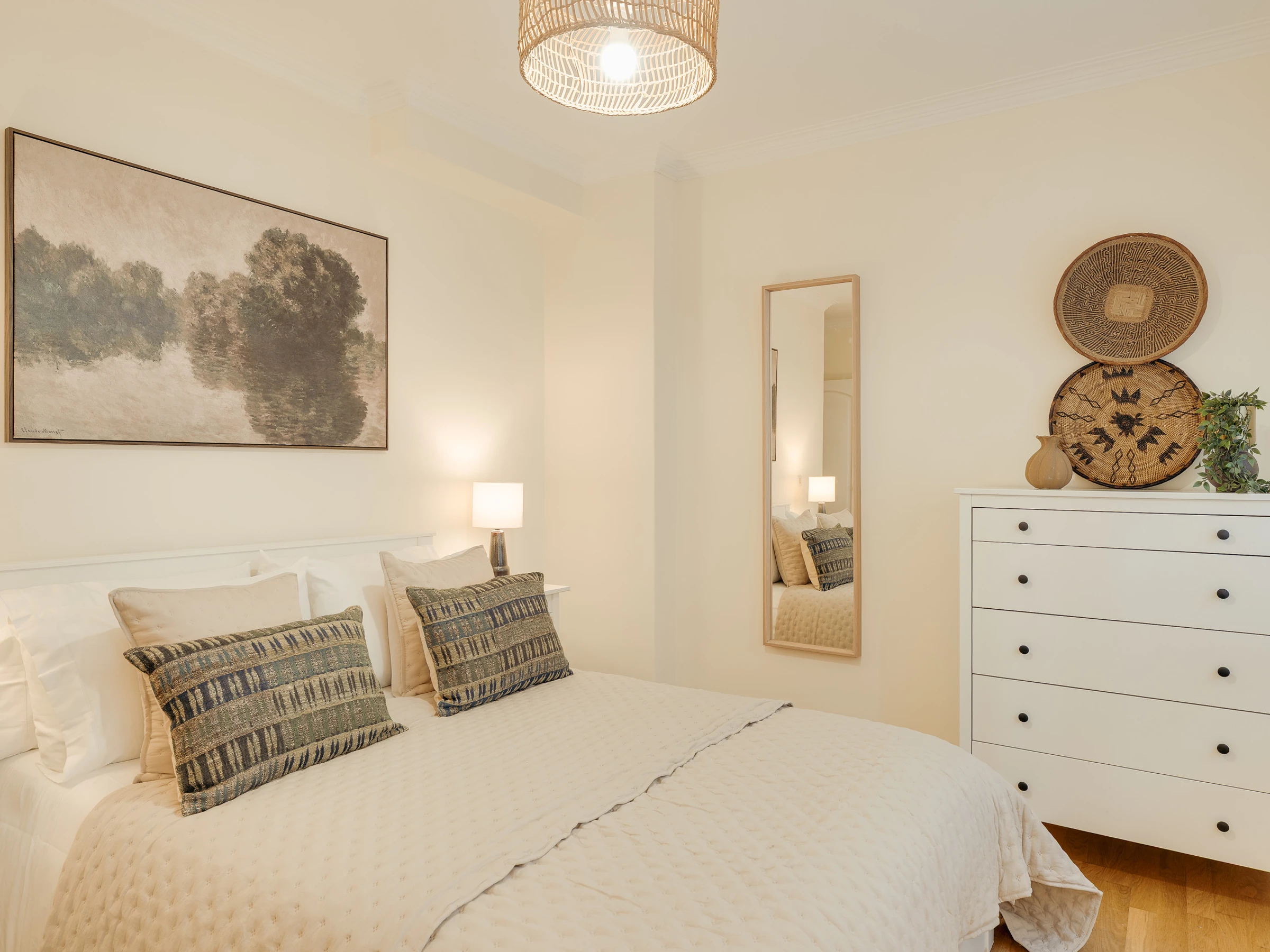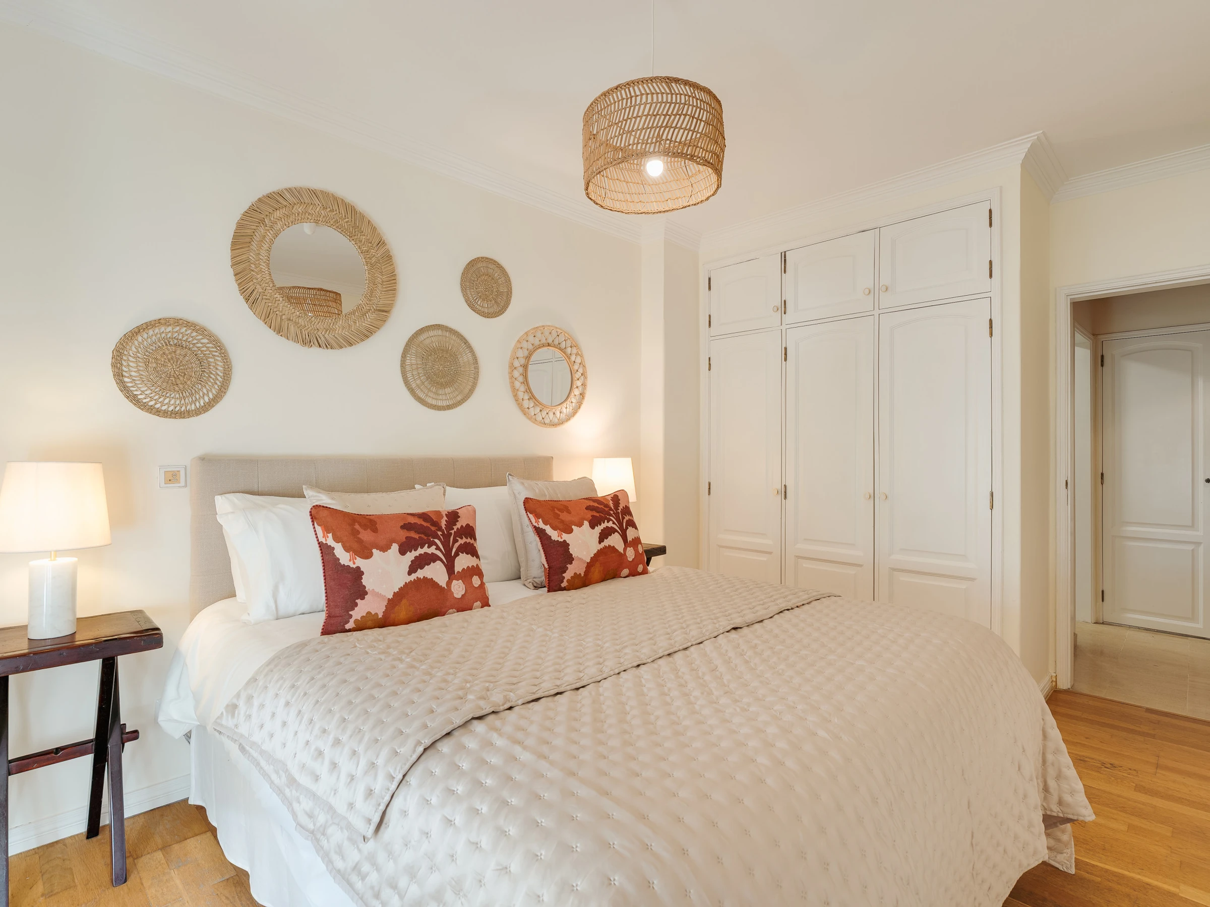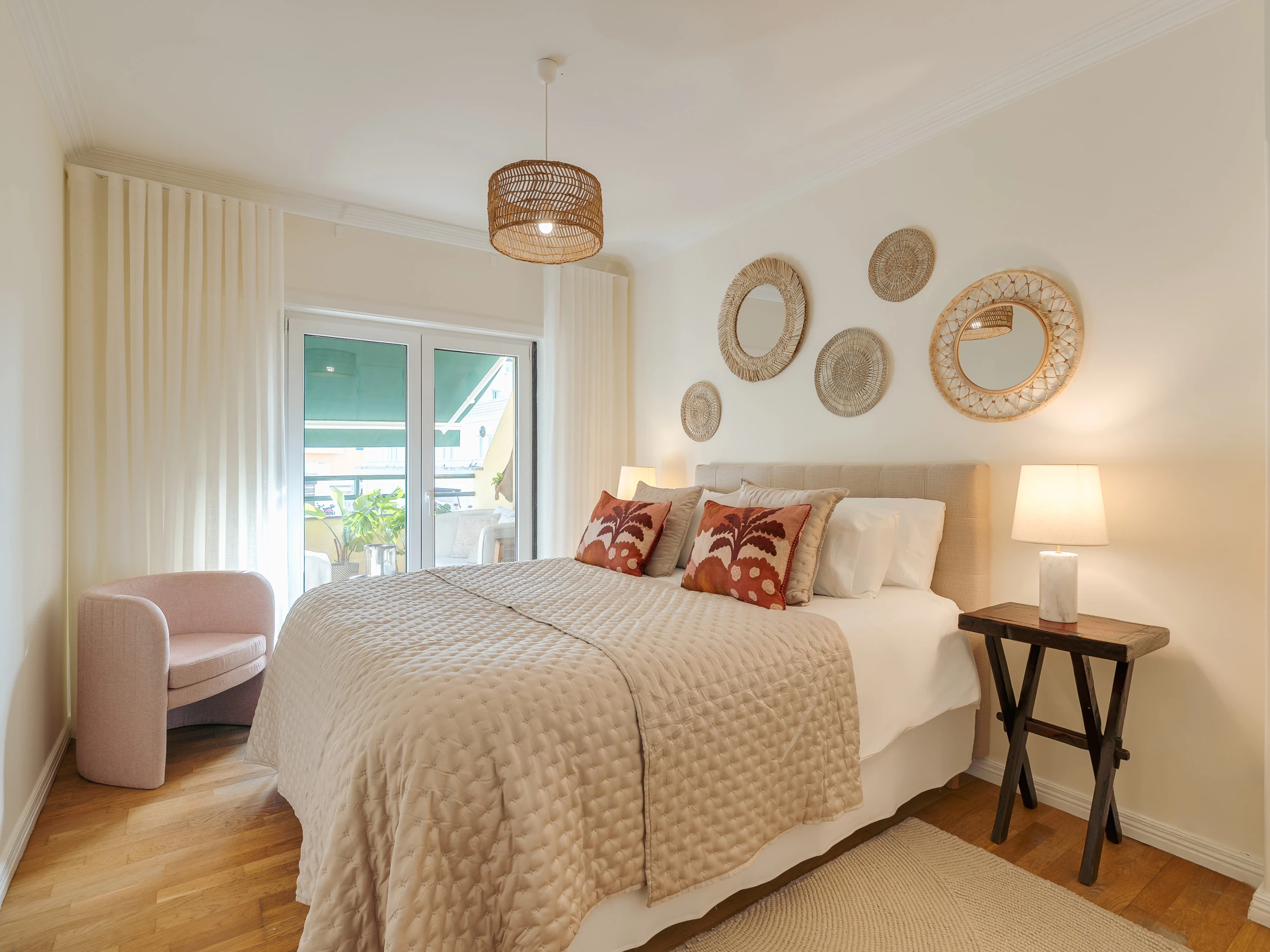 Deux chambres sereines offrent un sanctuaire pour les sens. L'une embrasse des tons naturels doux, une palette apaisante qui fait écho aux teintes de la côte d'Estoril. L'autre, une étude en blancs nets, présente des détails faits à la main qui témoignent d'un dévouement à l'artisanat et au confort. Ici, vous pouvez vous enfoncer dans des linges luxueux, laissant le rythme de l'océan vous bercer vers un sommeil paisible. Et avec le ménage hebdomadaire inclus pour les séjours de courte durée, vous êtes libre d'embrasser pleinement l'élégance sans effort de votre escapade portugaise.