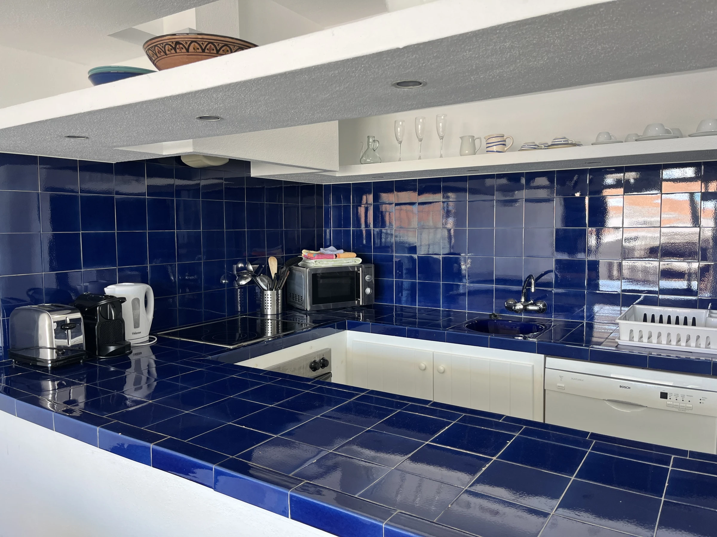 L'appartement comprend une chambre principale avec un lit double, une salle de bains, un salon avec télévision et une cheminée, une cuisine entièrement équipée avec lave-vaisselle, four, micro-ondes, etc... et une grand terrasse avec table et chaises.