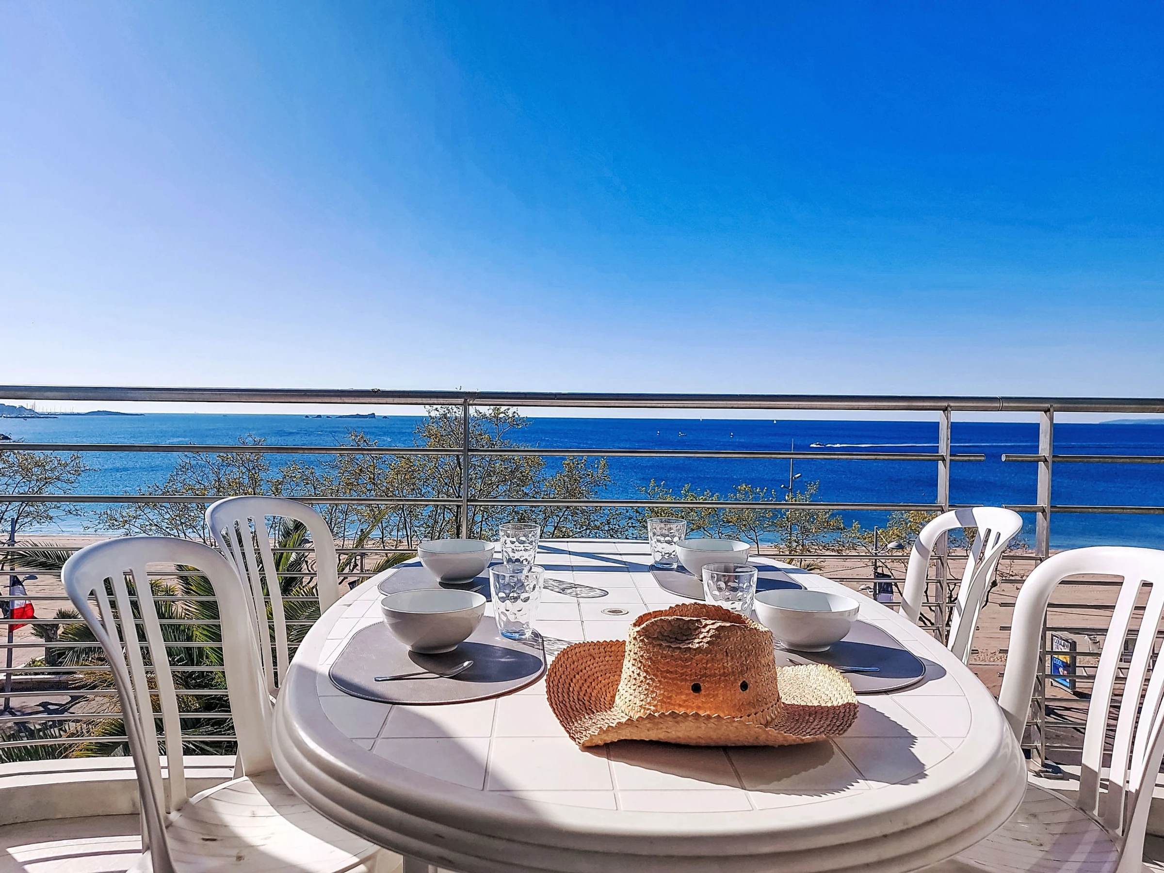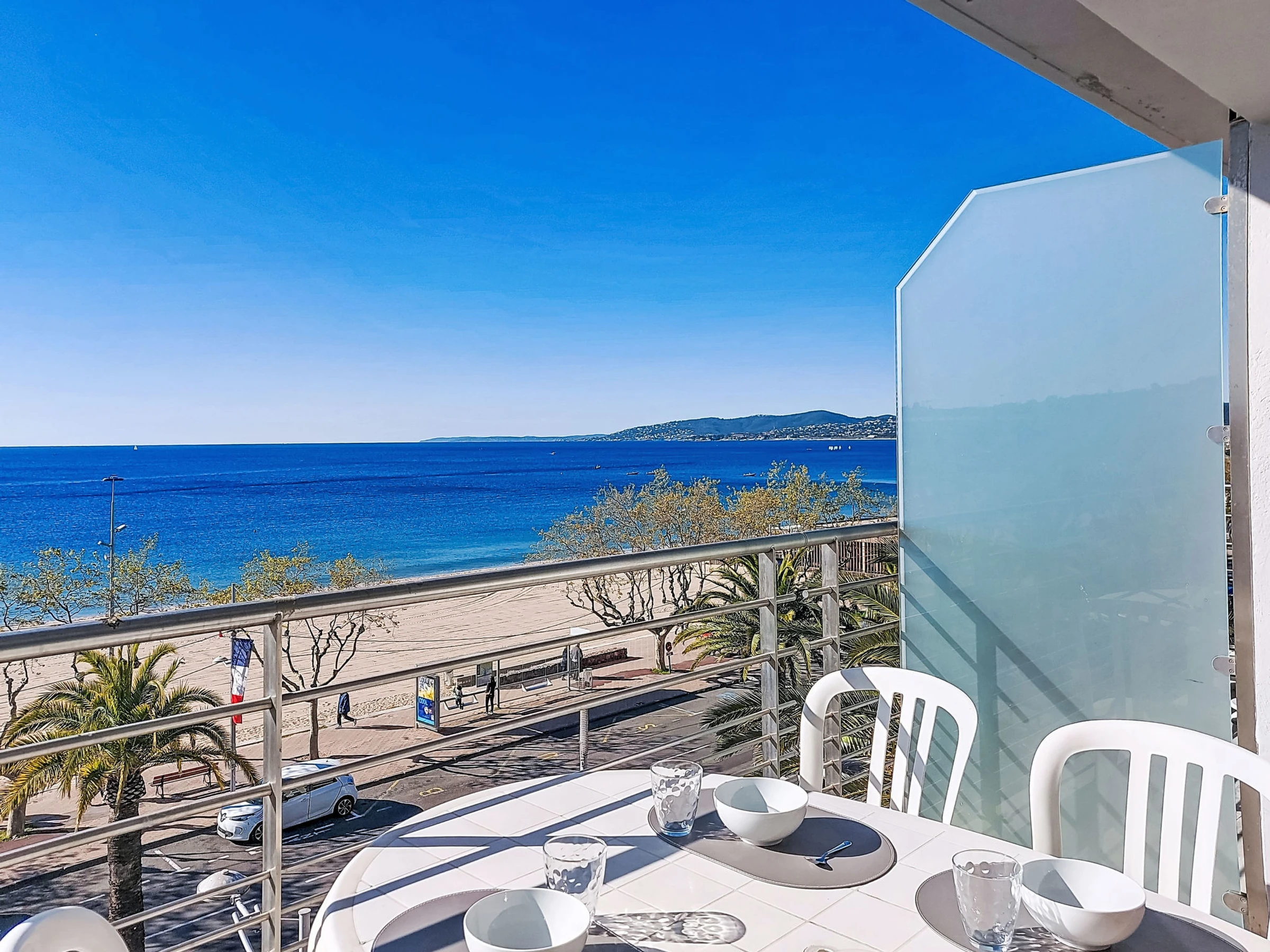 Fréjus Plage: Immeuble "Le Domino", de 3 étages. À 15 m de la mer, à 15 m de la plage. Supermarché 5 m, restaurant 10 m, boulangerie 50 m, arrêt de bus "Oasis" 200 m, gare ferroviaire "St Raphael" 600 m, plage de sable "Plages de Fréjus" 15 m, centre de plongée 600 m. Port plaisance 800 m, terrain de golf (18 trous) 6 km. Attractions à proximité: Cannes 40 km, Saint-Tropez 40 km, Nice 70 km, Gorges du Verdon 90 km. Les lacs connus sont facilement accessibles: Sainte-Croix 90 km. Région de randonnées: Estérel 8 km. Veuillez noter: sans ascenseur.