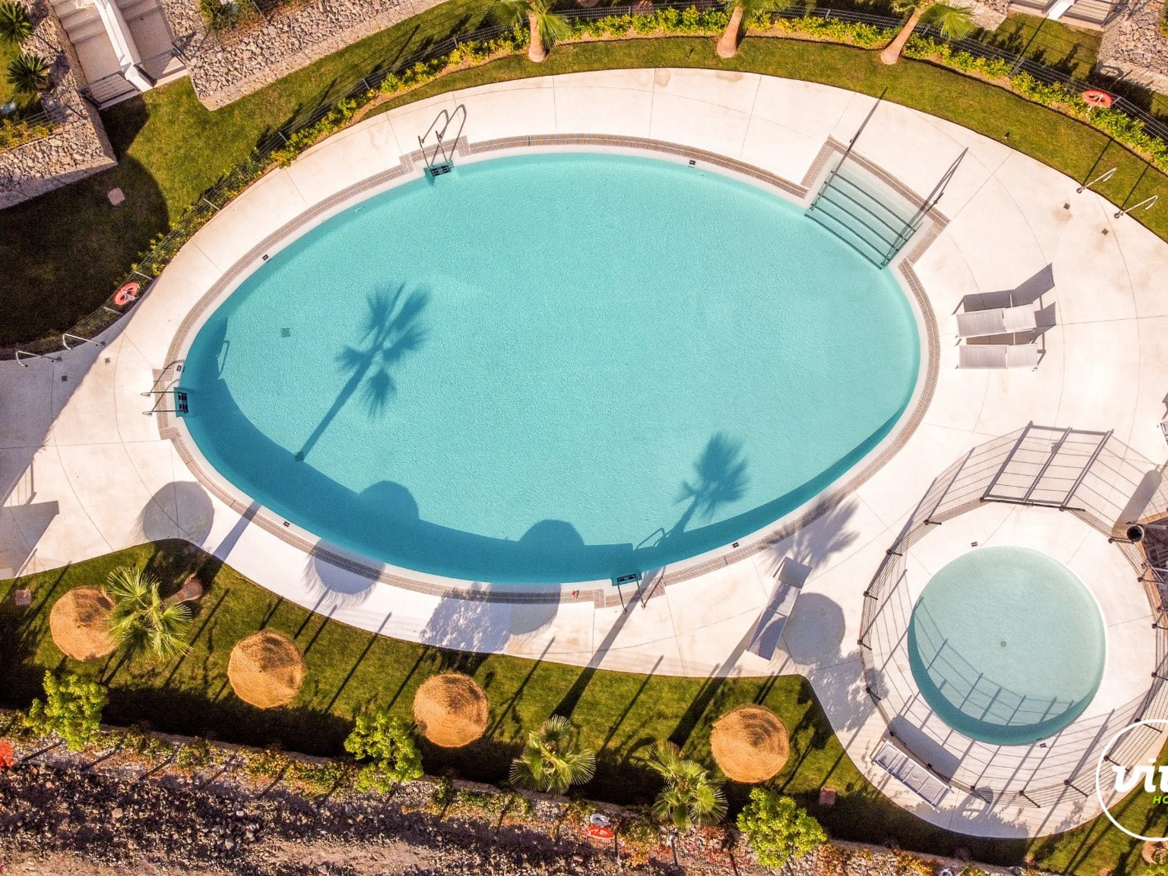 Logement de 100 m² joli et de construction récente, situé en front de plage, avec vue sur la piscine.