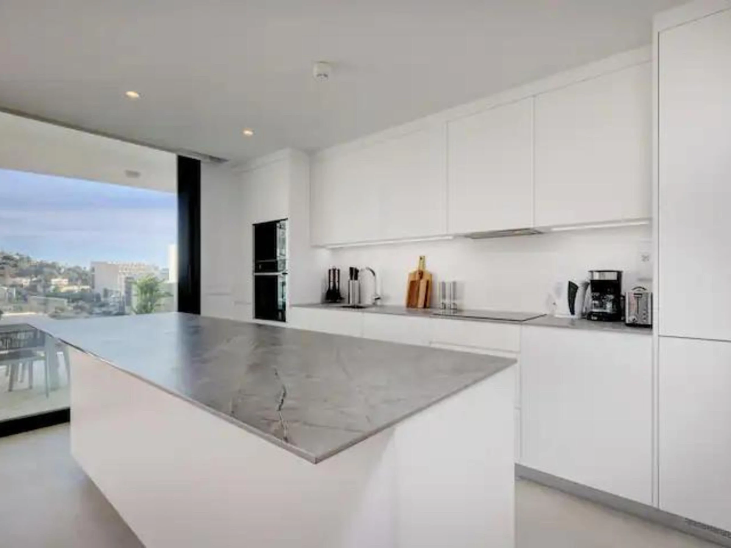 La cuisine américaine, à induction, est équipée avec réfrigérateur, micro-ondes, four, congélateur, lave-vaisselle, vaisselle/couverts, ustensiles/cuisine, cafetière, grille pain, bouilloire, equipement de cuisine, assiettes et bols.