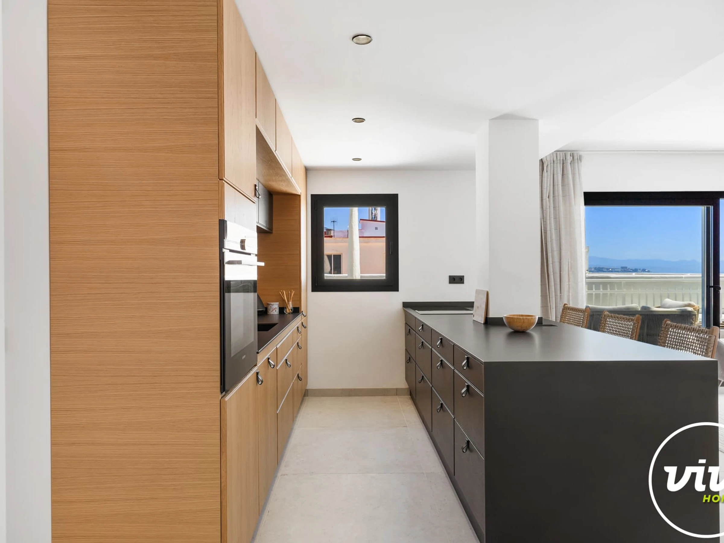Logement de 70 m² joli et moderne, situé en front de plage, avec vue sur la mer et la montagne.