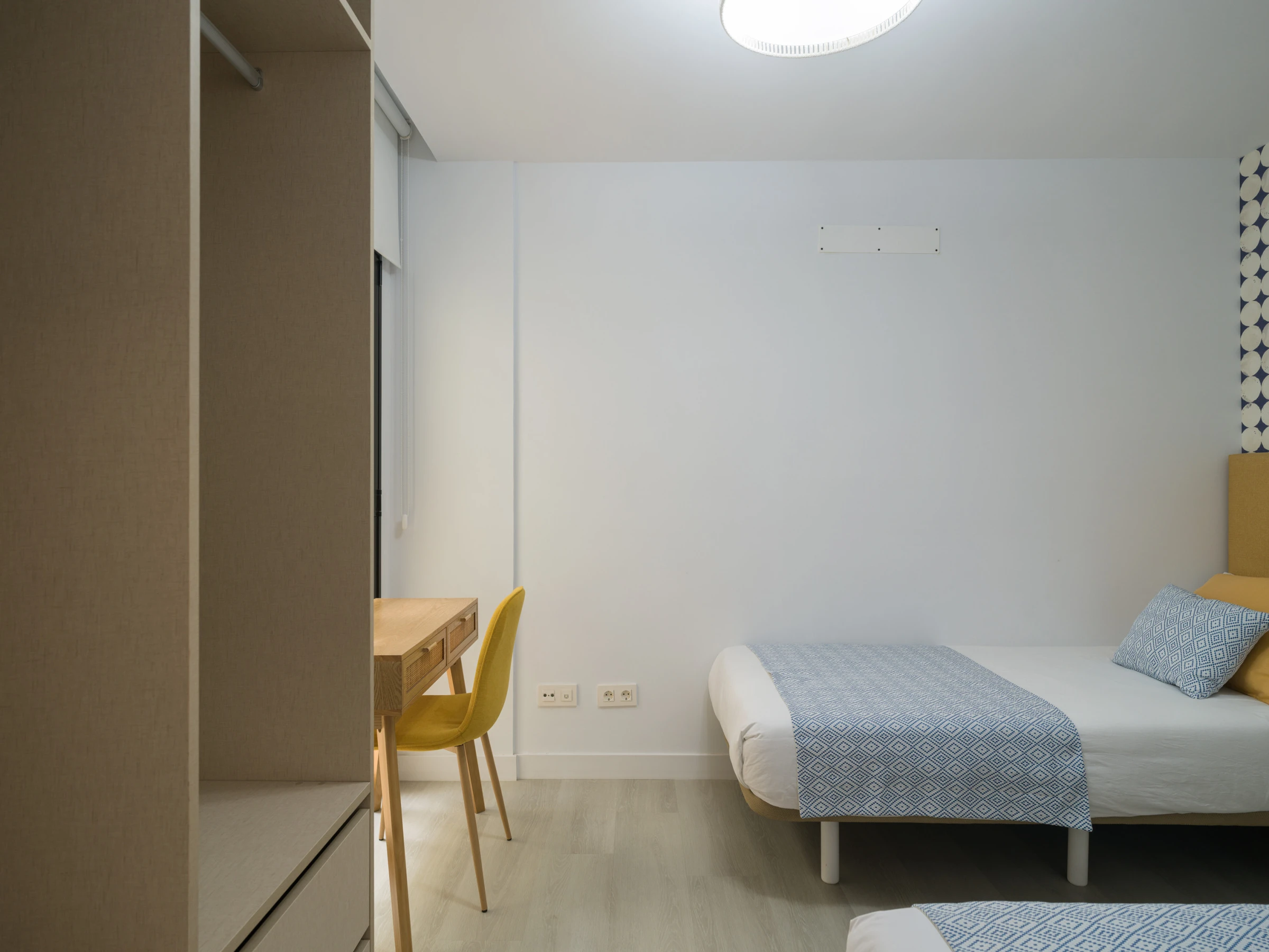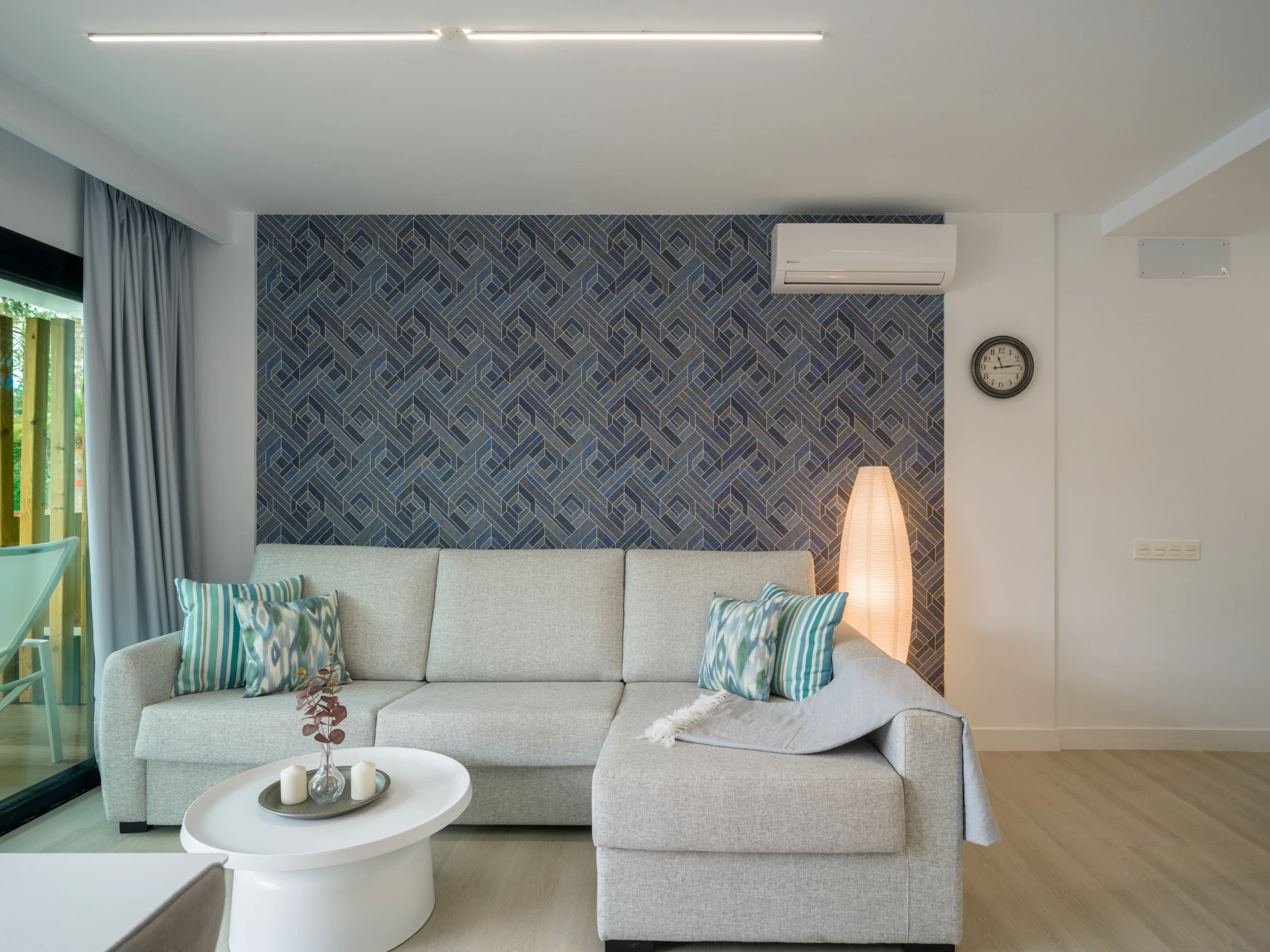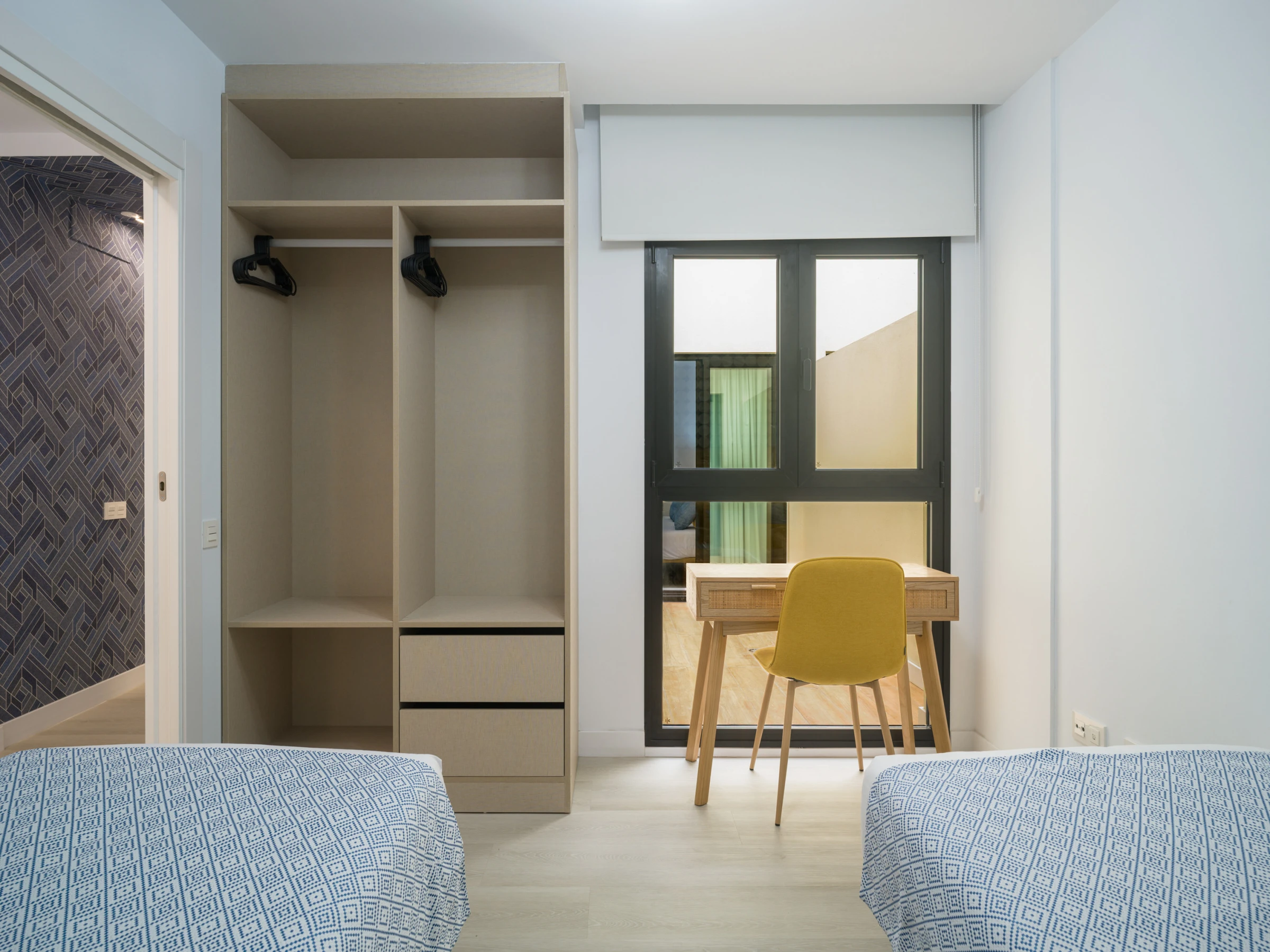 Avec une capacité de 4 personnes, le logement dispose de deux chambres qui garantissent un repos réparateur. L'une d'entre elles comprend un lit king size, tandis que l'autre dispose de deux lits individuels, idéal pour les familles ou les groupes d'amis. Le logement est équipé de la climatisation pour maintenir une température parfaite pendant votre séjour.