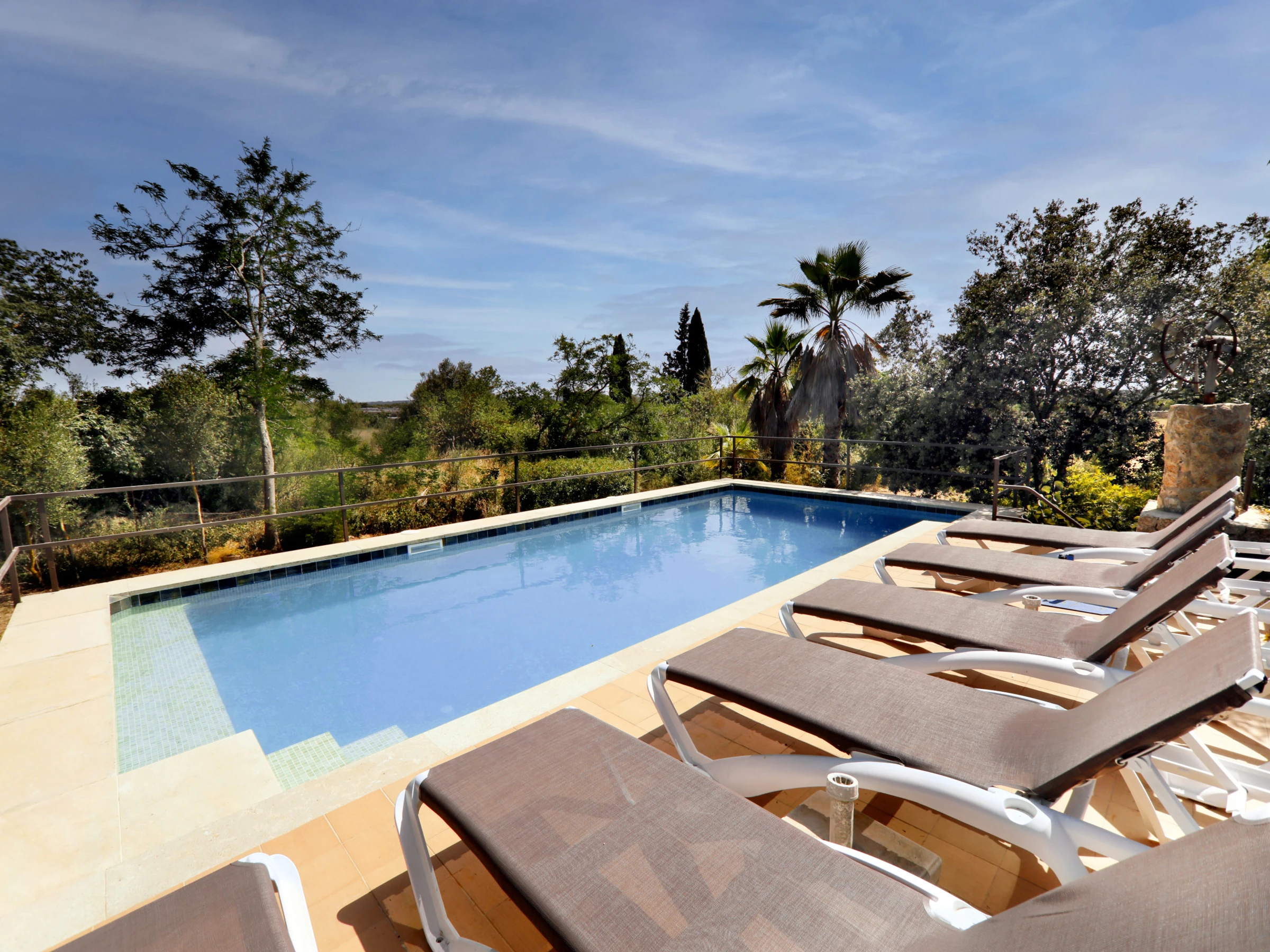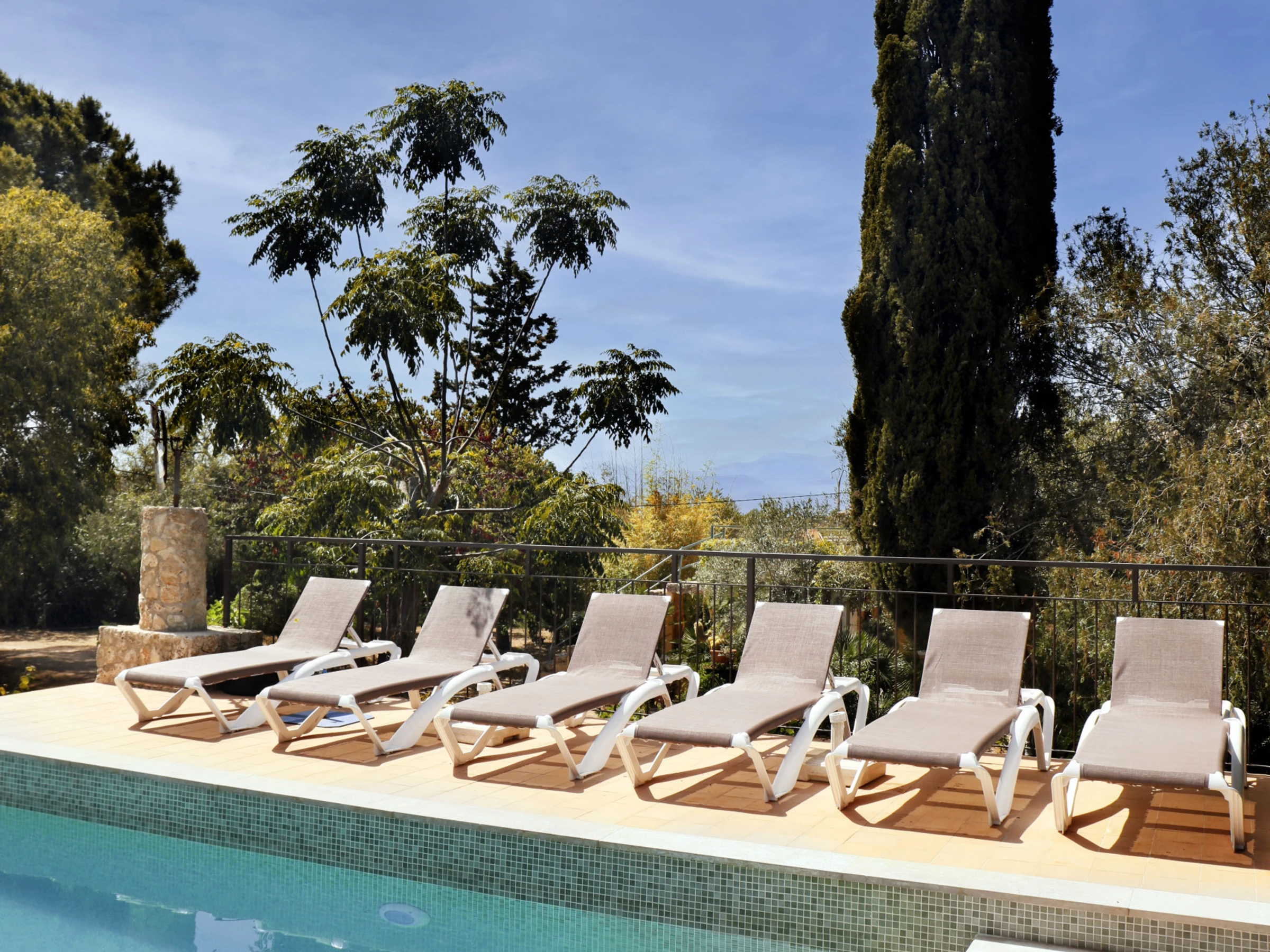 Elle dispose de jardin, mobilier de jardin, clôture, 30 m² de terrasse, lave-linge, barbecue, cheminée, fer à repasser, accès internet (wifi), sèche-cheveux, chauffage central, climatisation dans le salon, piscine privée, parking extérieur même bâtiment, 1 Télévision, tv satellite (Langues: Espagnol, Anglais, Allemand, Français).