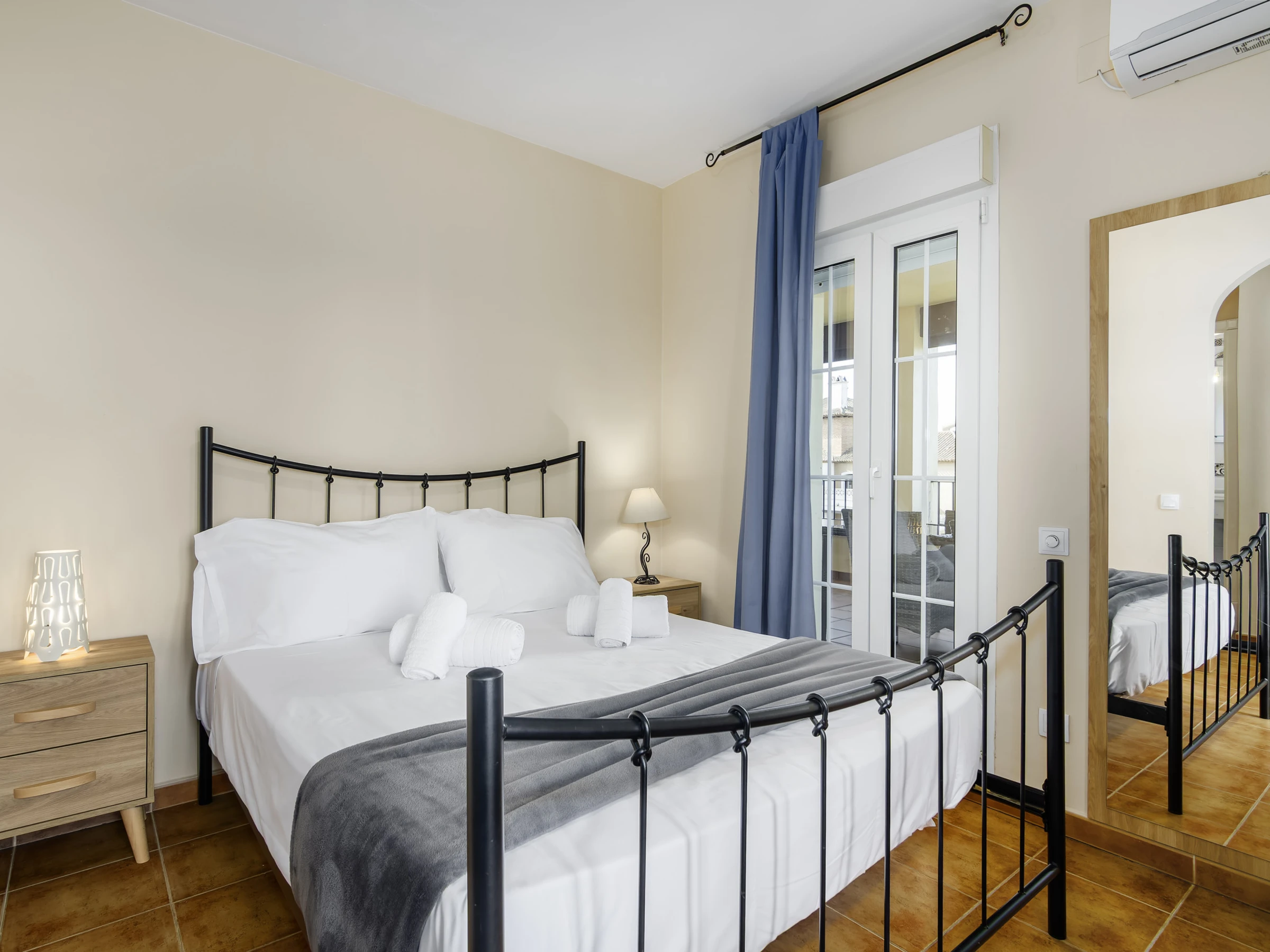 Elle dispose de ascenseur, mobilier de jardin, clôture, 25 m² de terrasse, lave-linge, fer à repasser, accès internet (wifi), sèche-cheveux, zone pour les enfants, terrain de tennis, piste de paddle, chauffage électrique, climatisation dans tout le logement, piscine collective+infantile, parking couvert même bâtiment, TV.