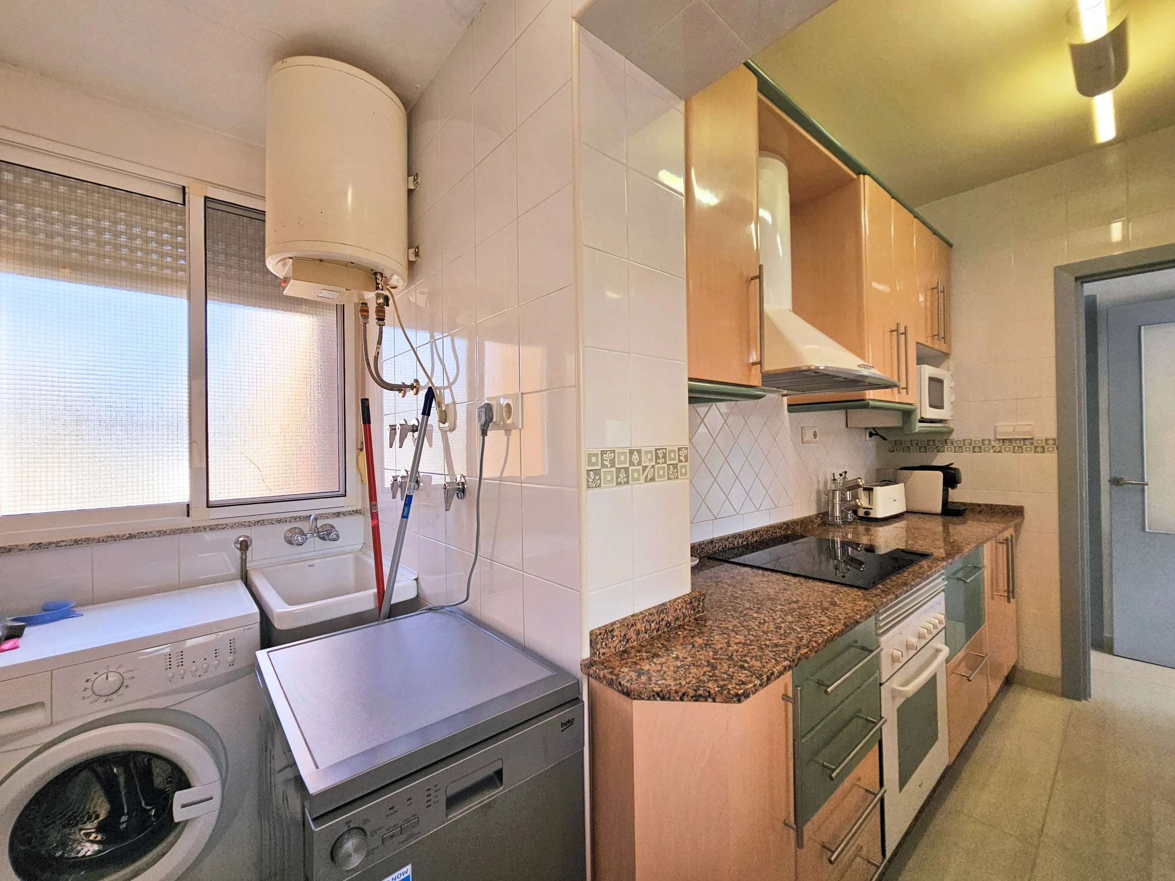 Buanderie pratique : Machine à laver, fer à repasser et planche — parfait pour les longs séjours.