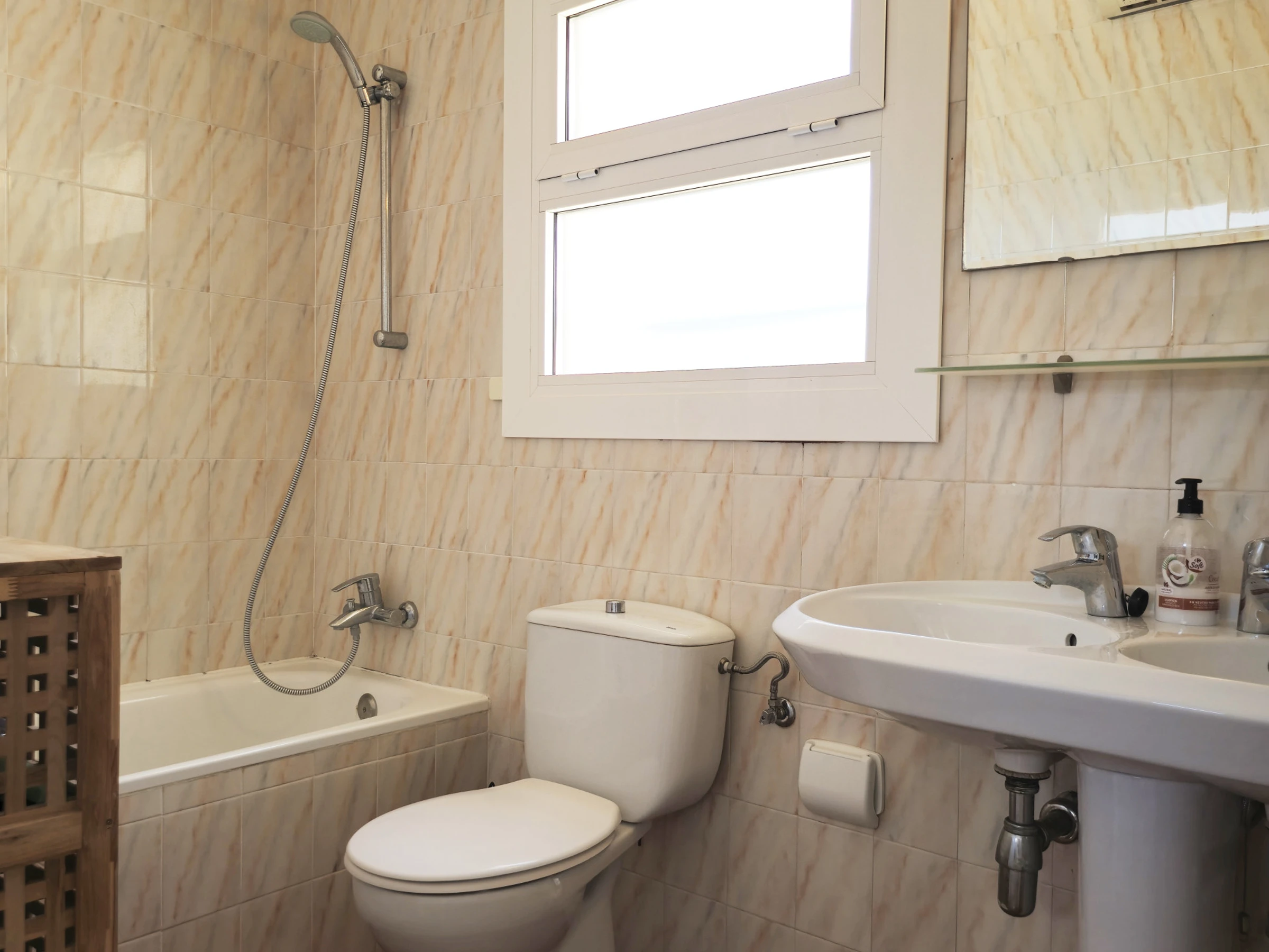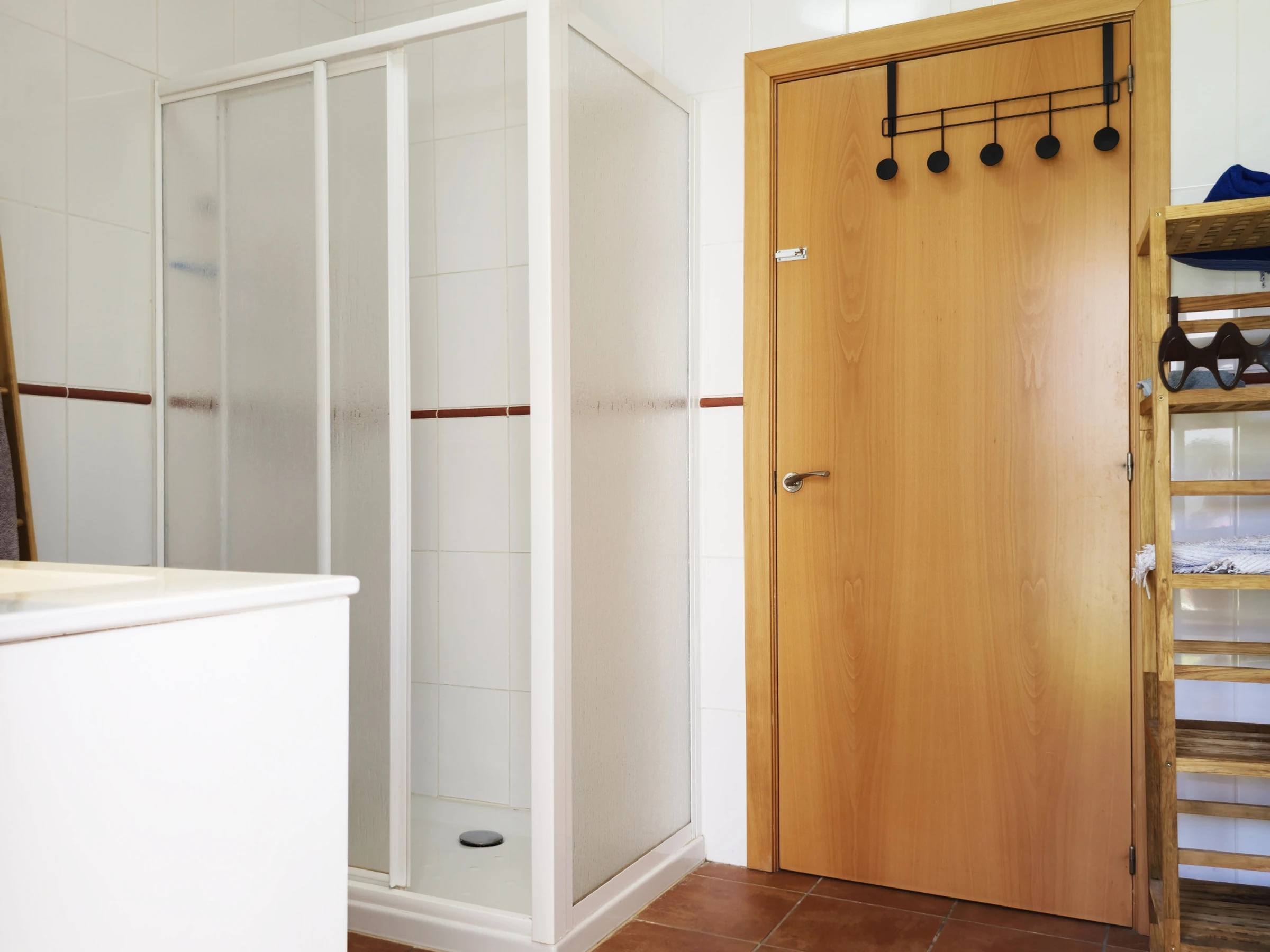 Salle de bain complète avec douche, fonctionnelle et confortable.