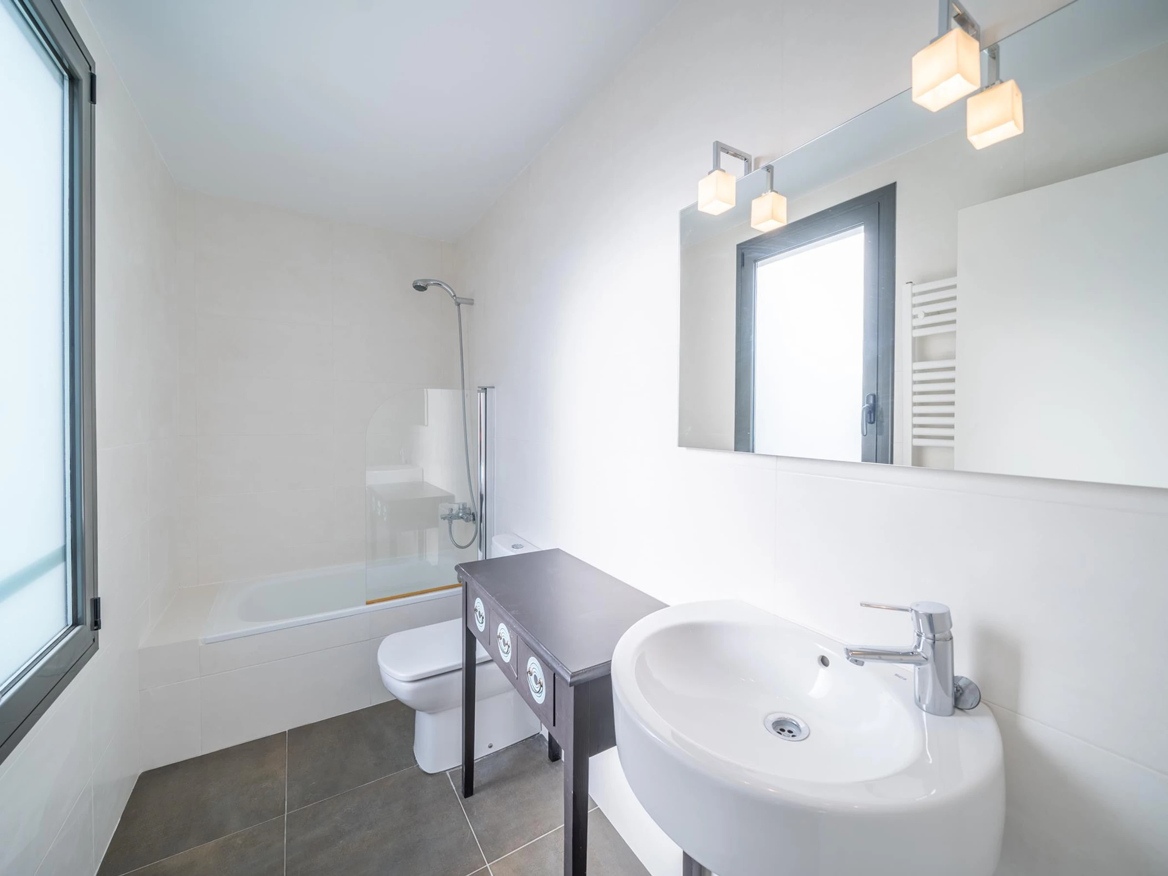 Cet hébergement comprend 3 salles de bains: une avec baignoire et l'autre 2 douche.