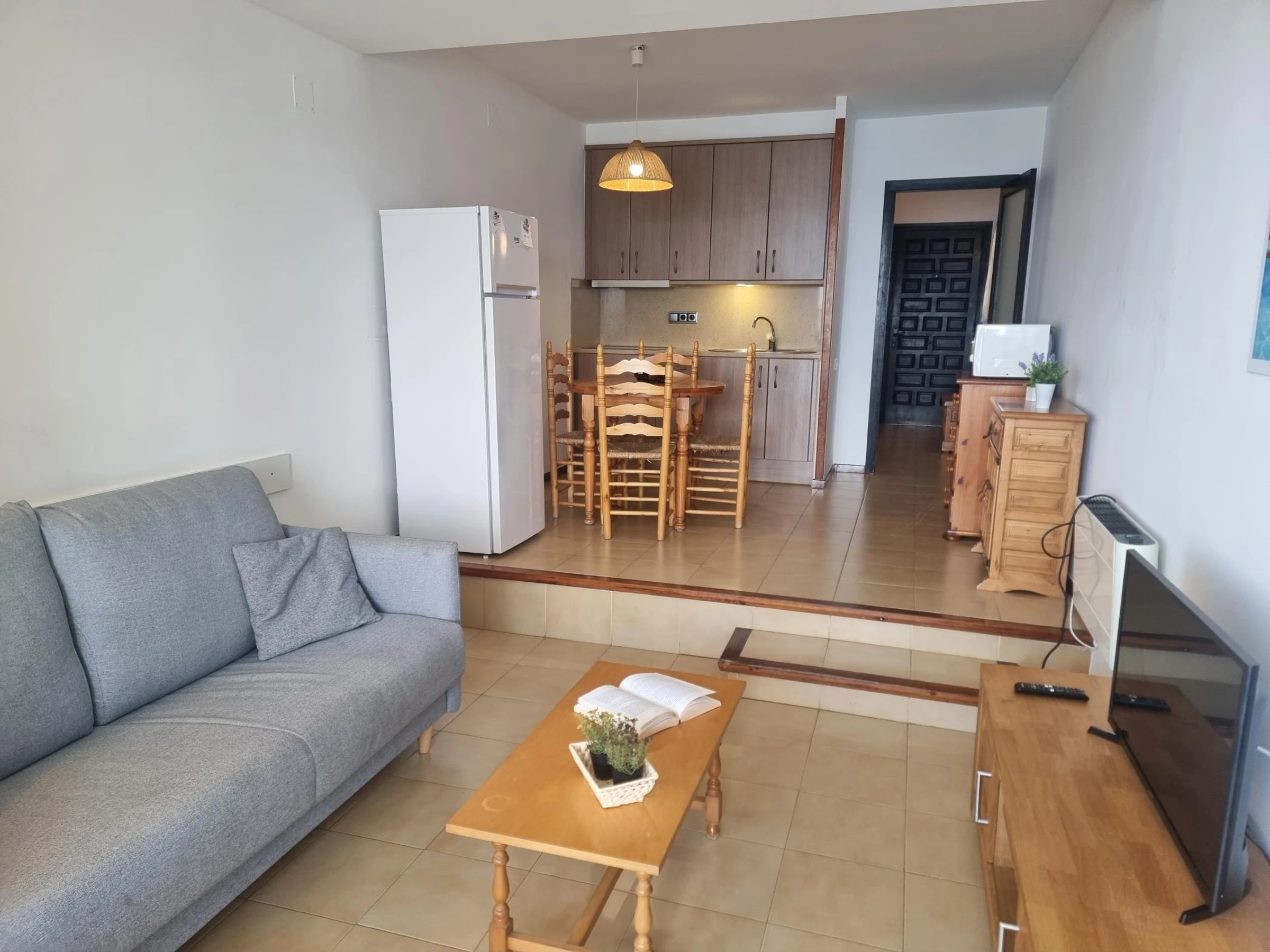 Profitez de vacances inoubliables dans ce confortable appartement d'une chambre, avec une salle de bain complète, une cuisine-salle à manger équipée et une terrasse avec vue sur la mer, parfaite pour se détendre. Situé au cœur de la ville, à seulement 50 mètres de la plage, vous pourrez donc sentir la brise marine dès que vous sortez. De plus, il dispose d'une piscine commune, idéale pour se rafraîchir après une journée de soleil et de sable.