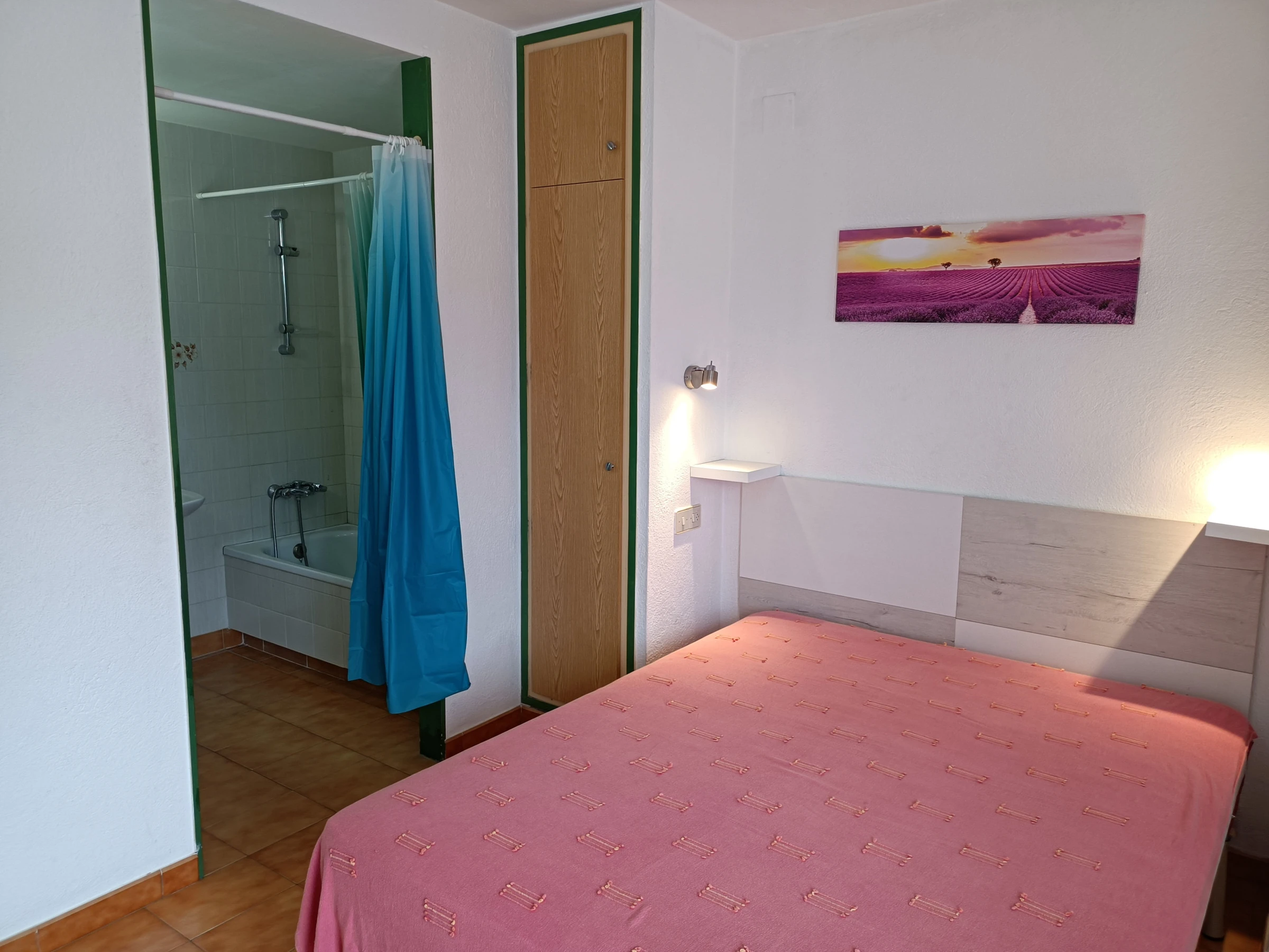 L'appartement dispose d'une chambre avec deux lits : un lit double principal et un canapé-lit, permettant un repos confortable pour tous les invités. Il comprend une salle de bain complète avec baignoire, parfaite pour se détendre après une journée à la plage.