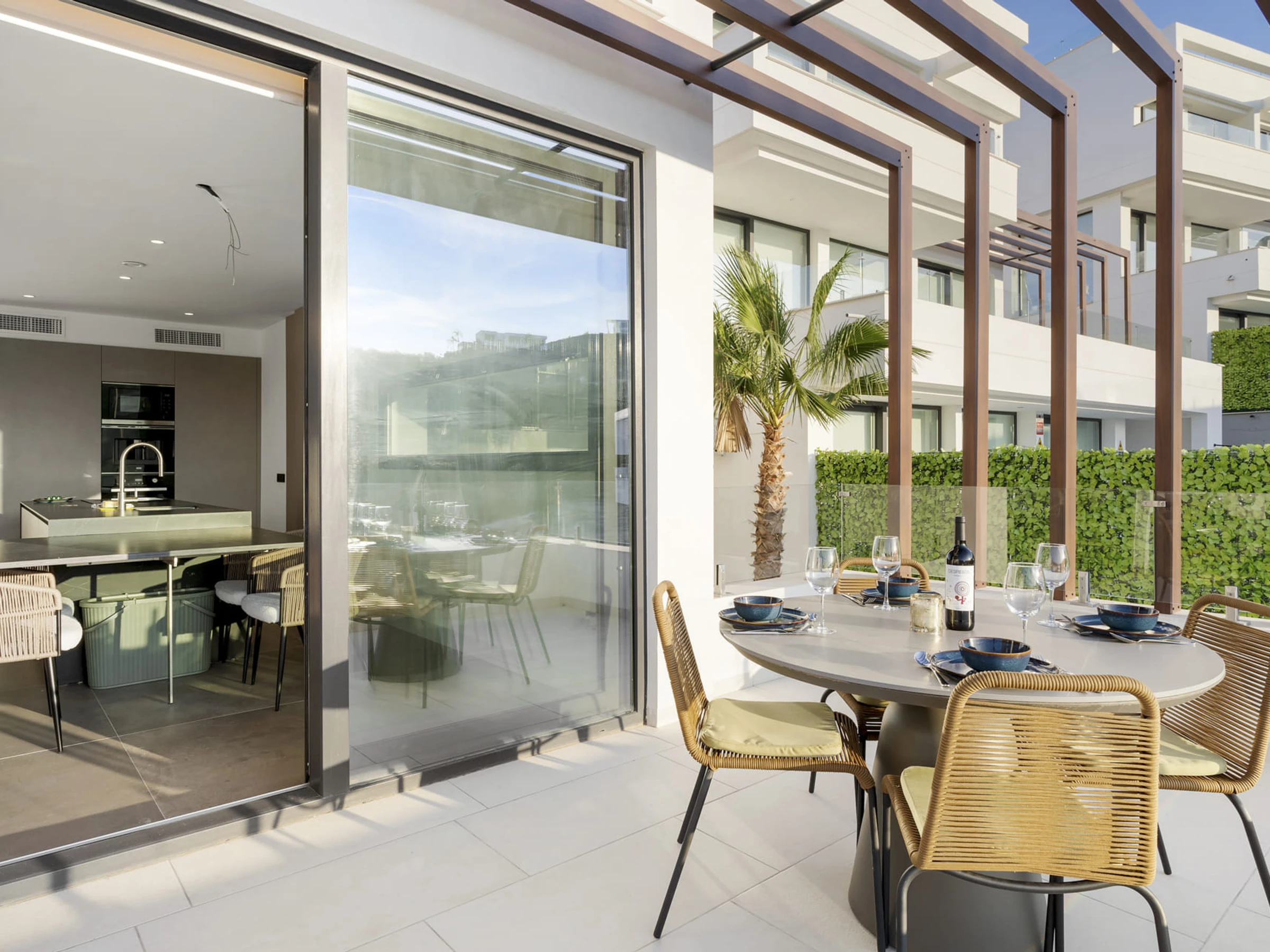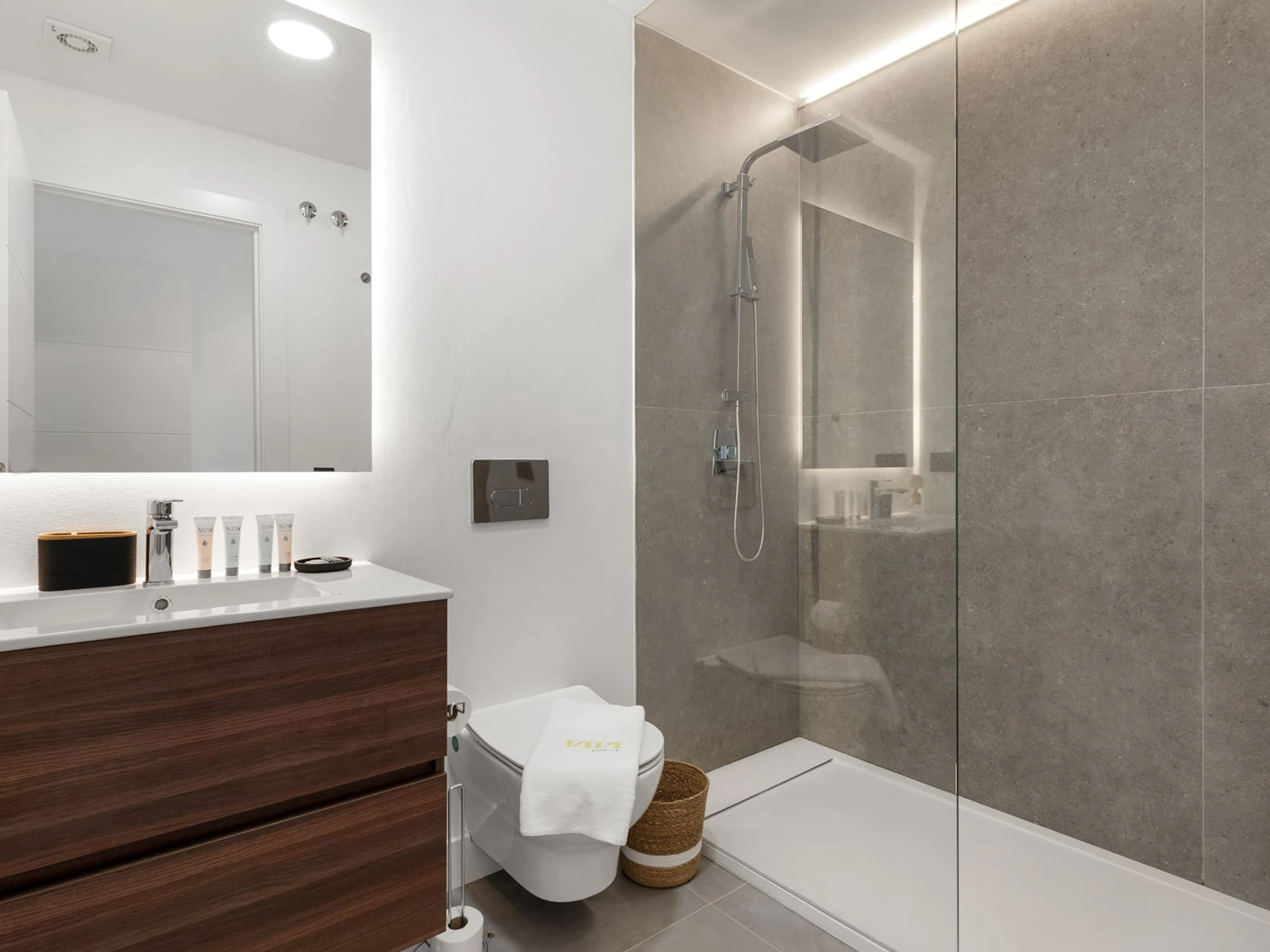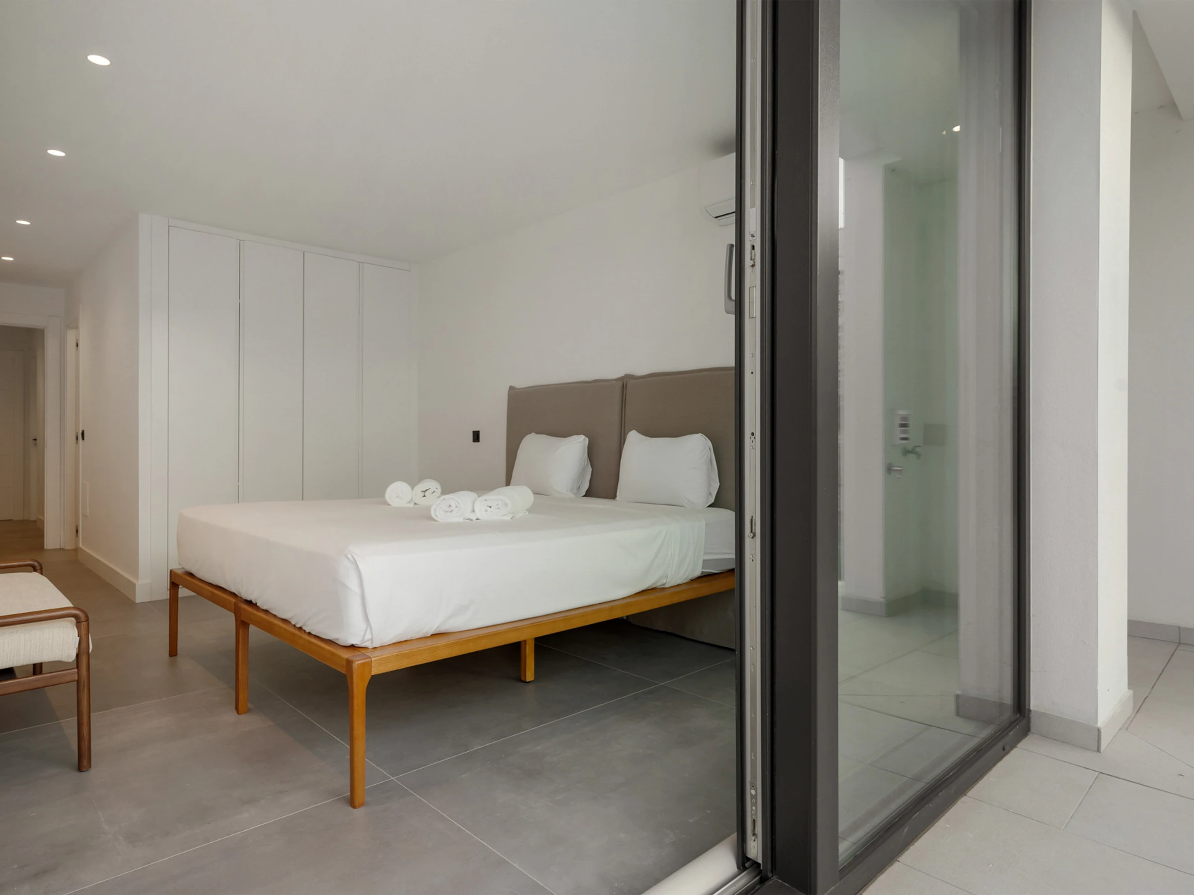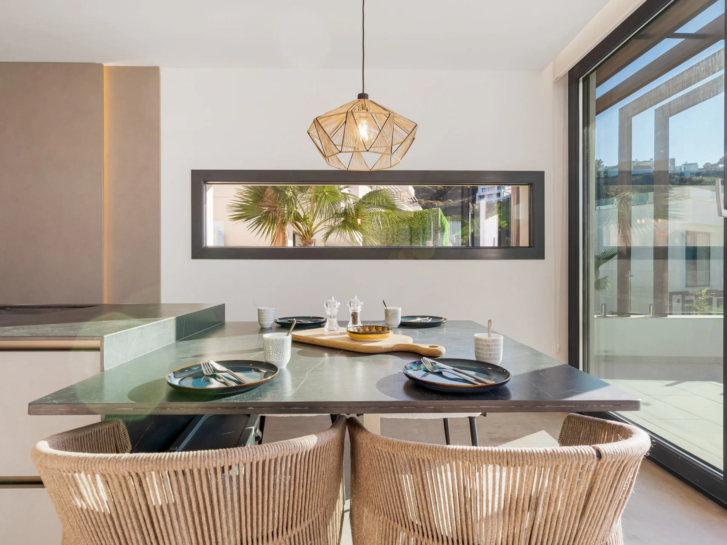 Elle dispose de jardin, mobilier de jardin, clôture, 35 m² de terrasse, lave-linge, sèche-linge, cheminée, fer à repasser, coffre-fort, accès internet (wifi), sèche-cheveux, balcon, alarme, chauffage central, climatisation dans tout le logement, piscine privée, parking extérieur même bâtiment, 2 Télévisions.
