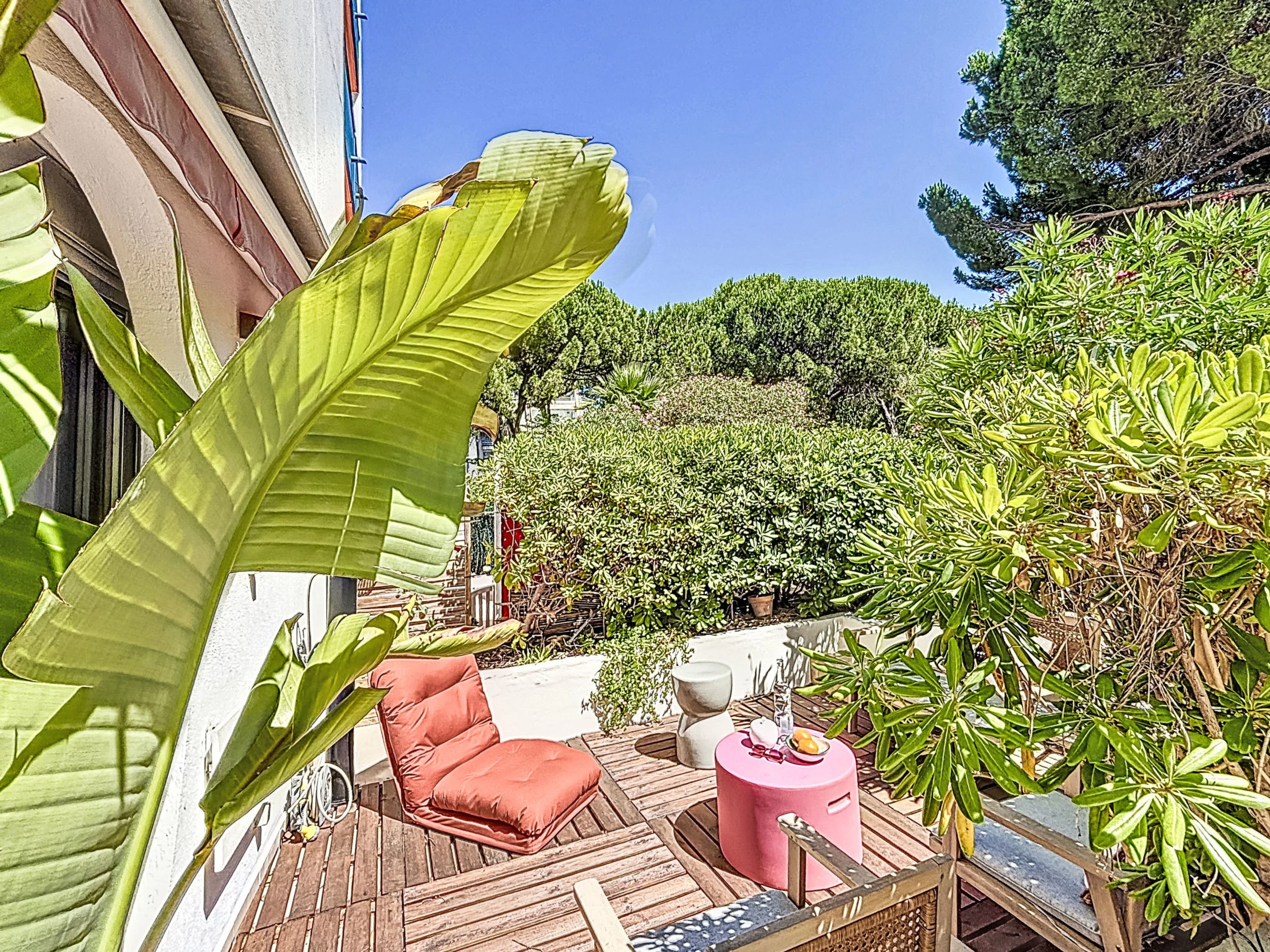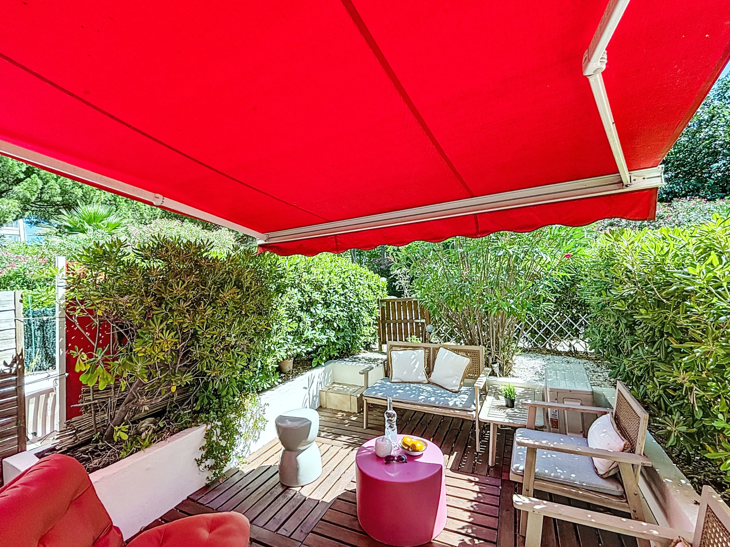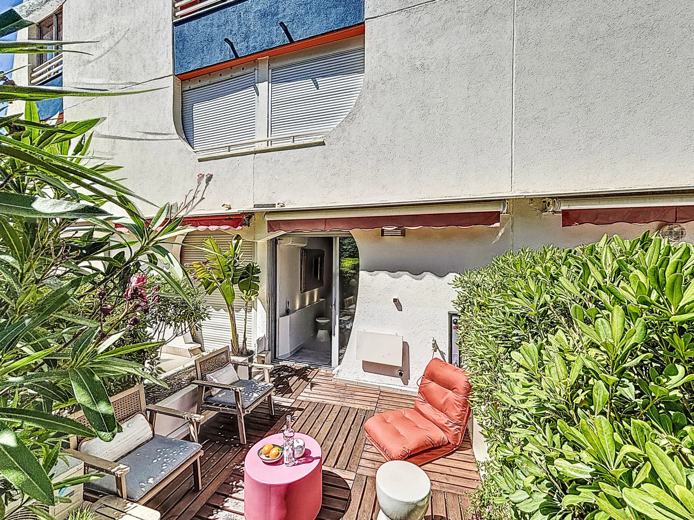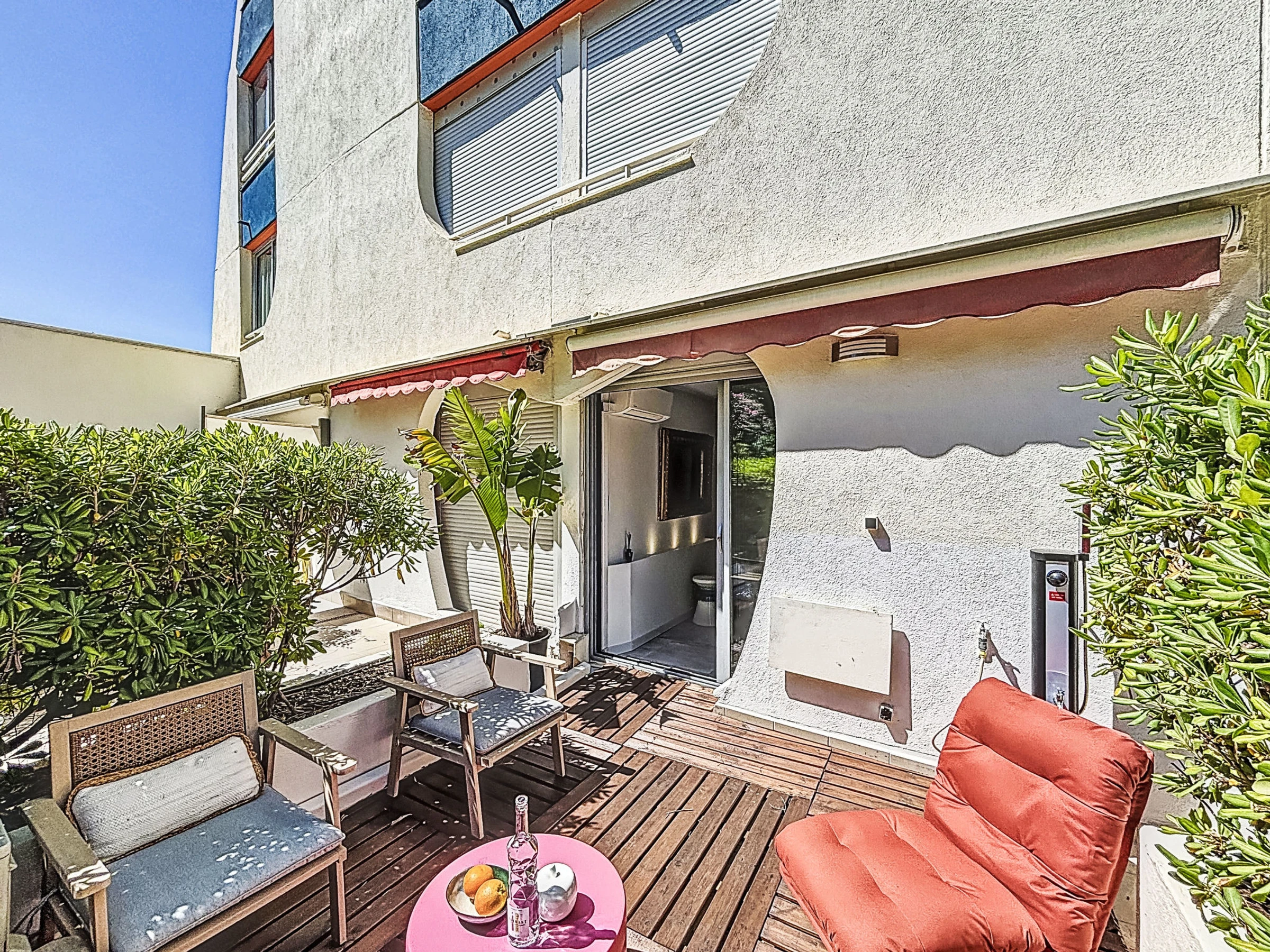 Apt 2 pièces 27 m2, au rez-de-chaussée, situation sud. Aménagement agréable: séjour/salle à manger avec 1 divan-lit double (140 cm, longueur 190 cm), TV (écran plat), air-conditionné. Sortie sur la terrasse. 1 petite chambre avec 1 grand-lit (140 cm, longueur 200 cm). Coin cuisine (four, lave-vaisselle, 3 plaques à induction, grille-pain, bouilloire électrique, micro-ondes, congélateur, cafetière électrique, Capsules pour machine à café (NESPRESSO) (NON INCLUSES)). Douche/WC. Chauffage électrique. Grande terrasse 25 m2, situation sud. Meubles de terrasse, chaises longues (1). Vue sur le jardin. A disposition: lave-linge, sèche-linge. Internet (Connexion WIFI, en sus). Veuillez noter: logement non-fumeur pas de parking. Détecteur de fumée. Annonce d'un particulier (art 155, IV du CGI).