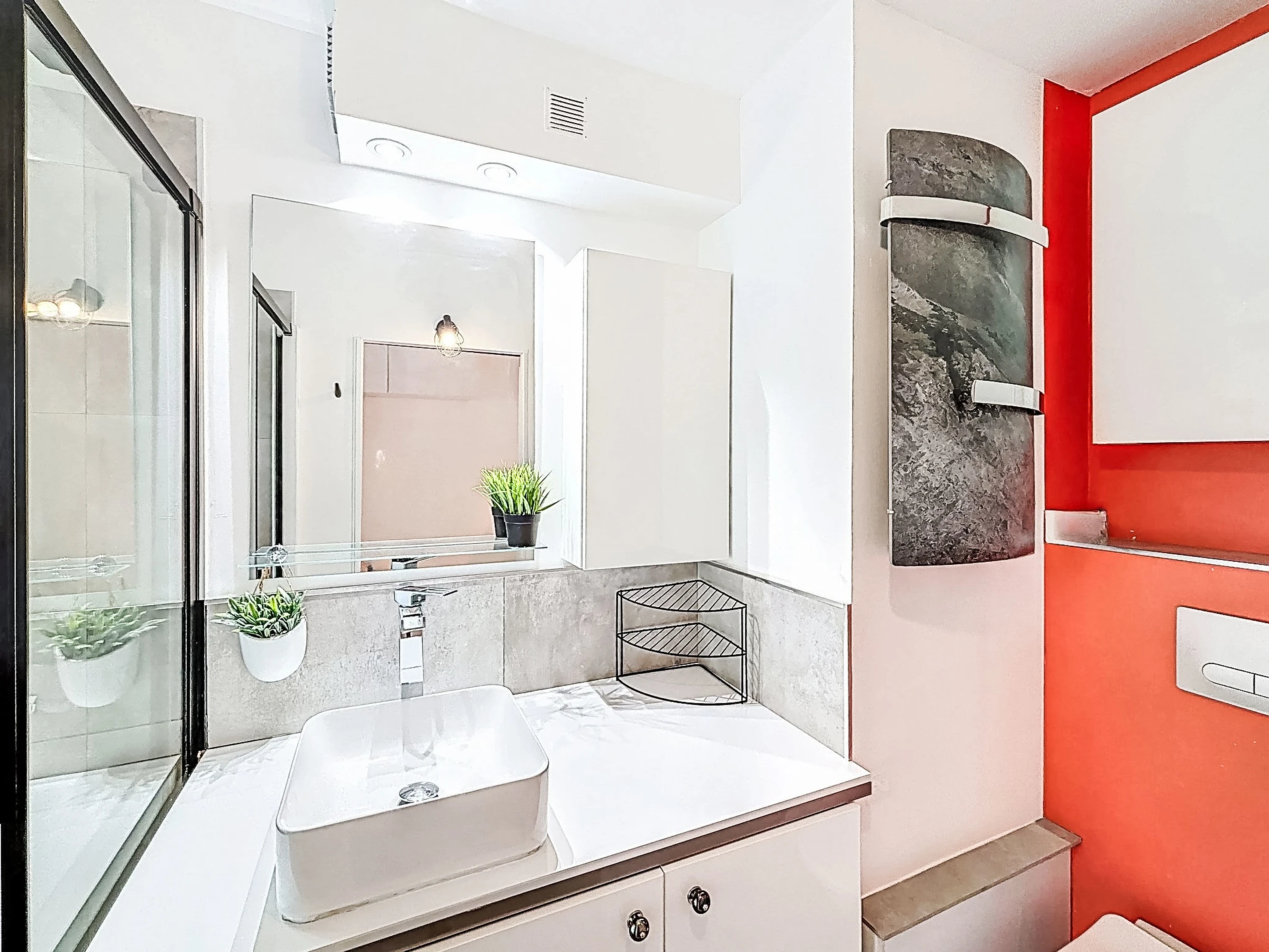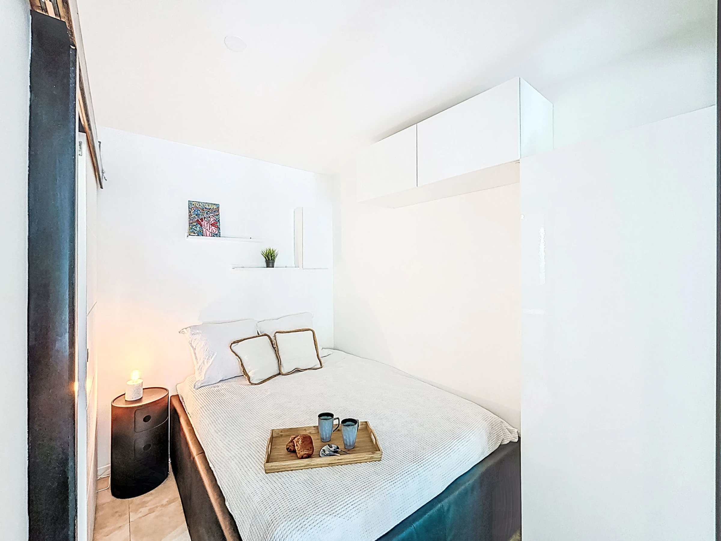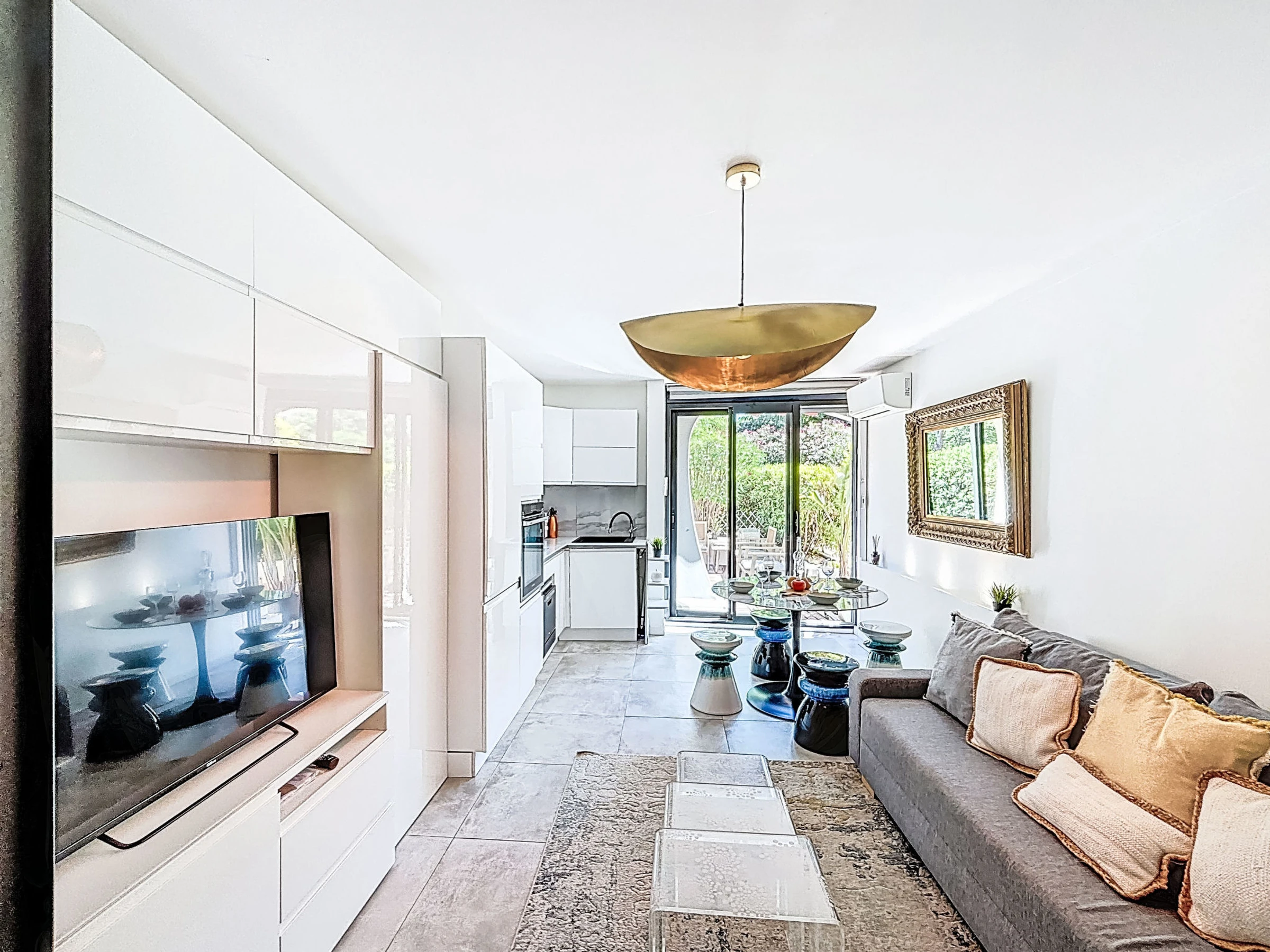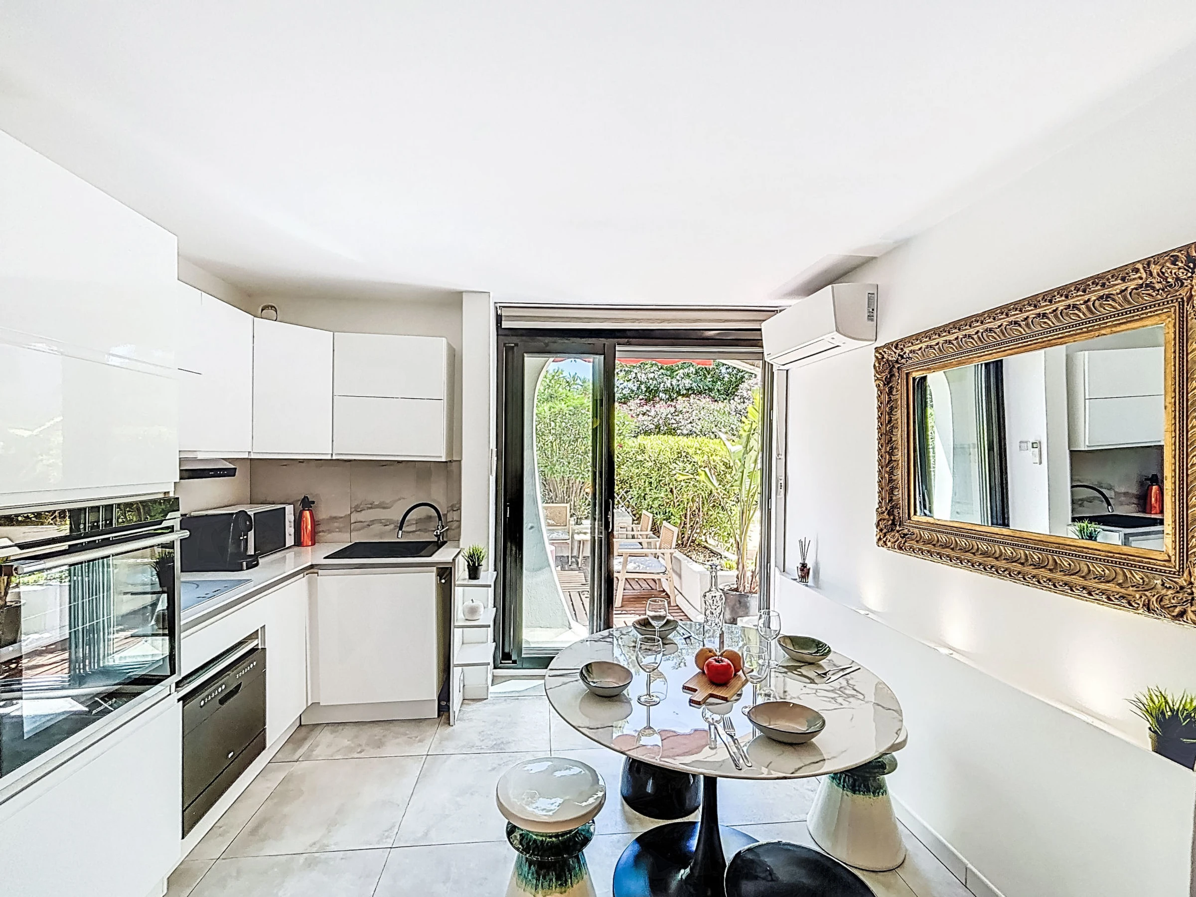 Apt 2 pièces 27 m2, au rez-de-chaussée, situation sud. Aménagement agréable: séjour/salle à manger avec 1 divan-lit double (140 cm, longueur 190 cm), TV (écran plat), air-conditionné. Sortie sur la terrasse. 1 petite chambre avec 1 grand-lit (140 cm, longueur 200 cm). Coin cuisine (four, lave-vaisselle, 3 plaques à induction, grille-pain, bouilloire électrique, micro-ondes, congélateur, cafetière électrique, Capsules pour machine à café (NESPRESSO) (NON INCLUSES)). Douche/WC. Chauffage électrique. Grande terrasse 25 m2, situation sud. Meubles de terrasse, chaises longues (1). Vue sur le jardin. A disposition: lave-linge, sèche-linge. Internet (Connexion WIFI, en sus). Veuillez noter: logement non-fumeur pas de parking. Détecteur de fumée. Annonce d'un particulier (art 155, IV du CGI).