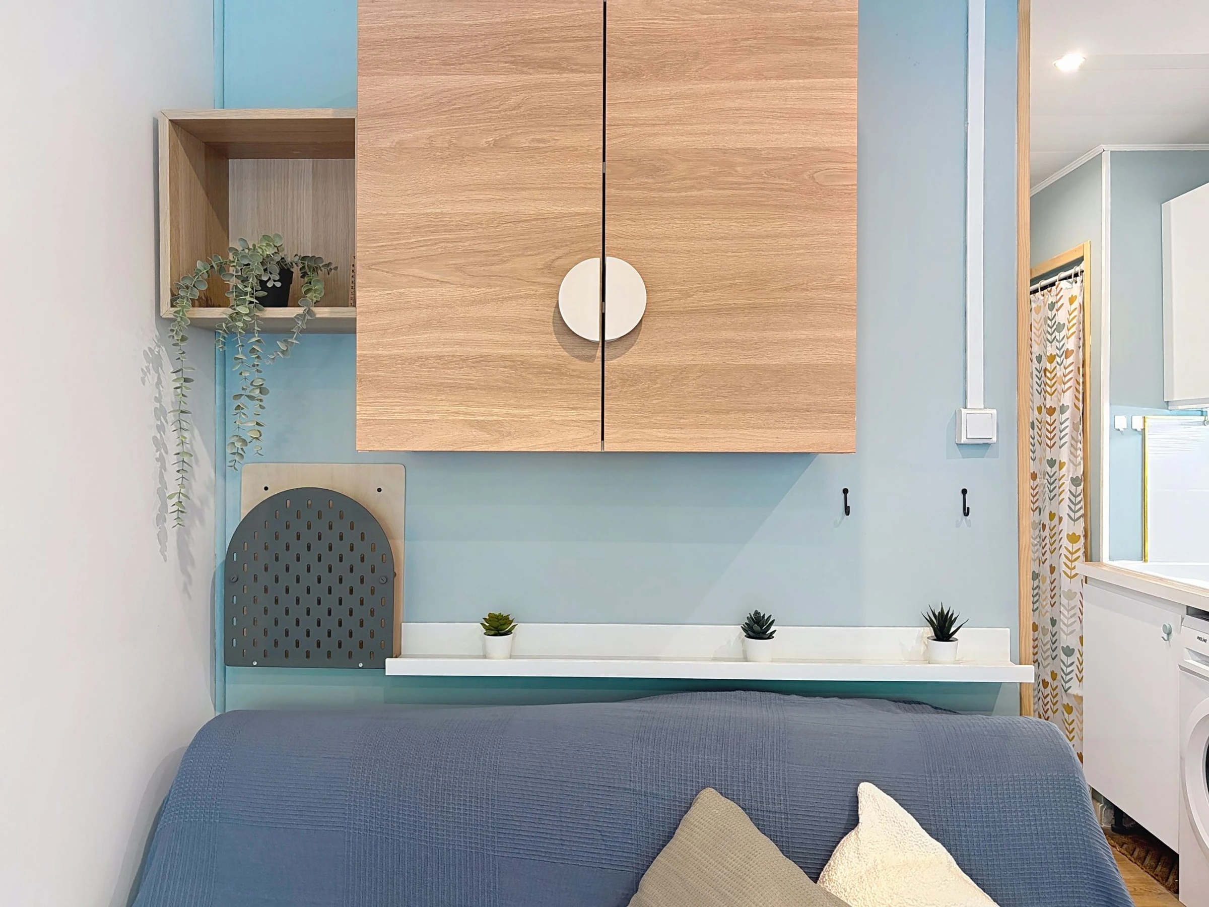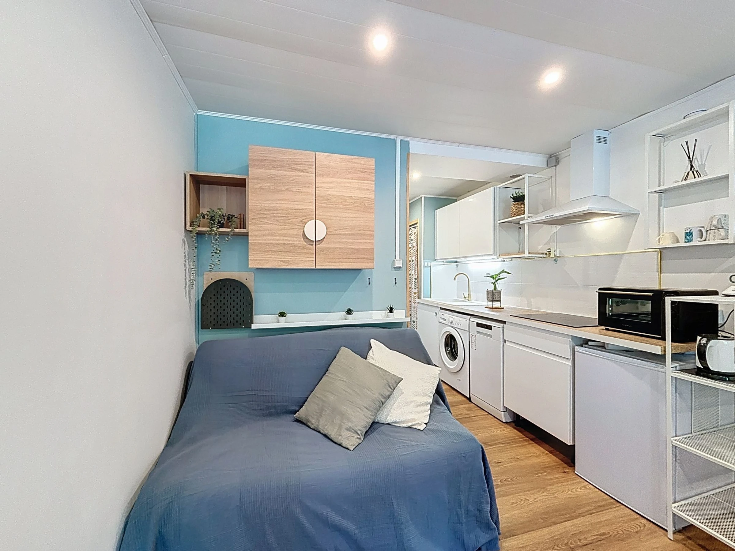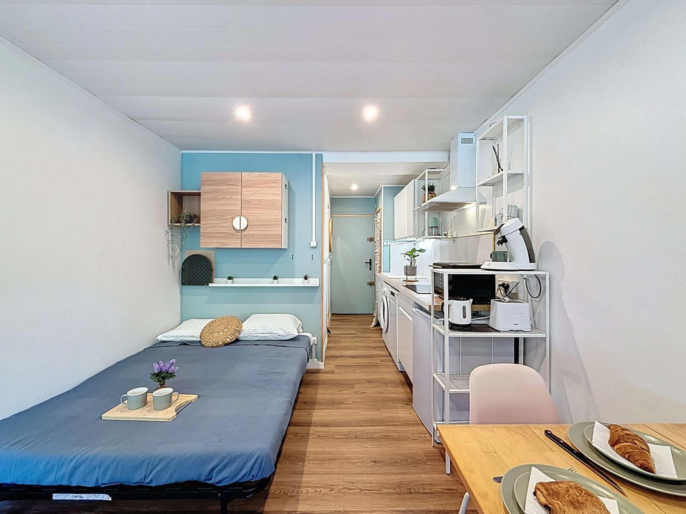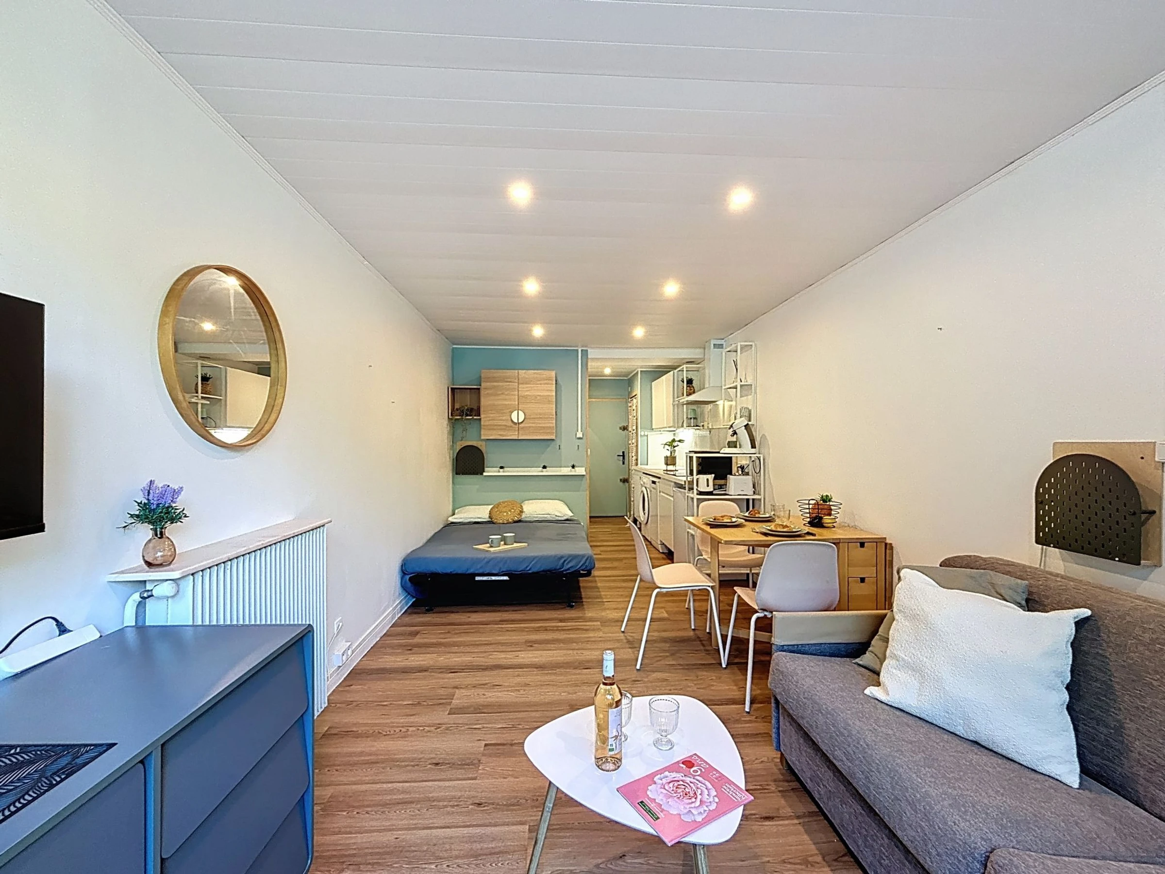 Studio 25 m2 au 3ème étage, situation nord-est. Rénové en 2024, aménagement fonctionnel et moderne: séjour/salle à manger orientée nord et orientée est avec 1 divan-lit (90 cm, longueur 190 cm), 1 divan-lit double (1 x 140 cm, longueur 190 cm), TV (écran plat), chauffage électrique et ventilateur. Coin cuisine (mini-four, four, lave-vaisselle, 3 plaques à induction, micro-ondes, cafetière électrique, Capsules pour machine à café (SENSEO) (NON INCLUSES)). Douche/WC. Chauffage électrique. Vue sur le jardin. A disposition: lave-linge, fer à repasser. Internet (Connexion WIFI, en sus). Veuillez noter: logement non-fumeur pas de parking. Détecteur de fumée, sans ascenseur. Annonce d'un particulier (art 155, IV du CGI).