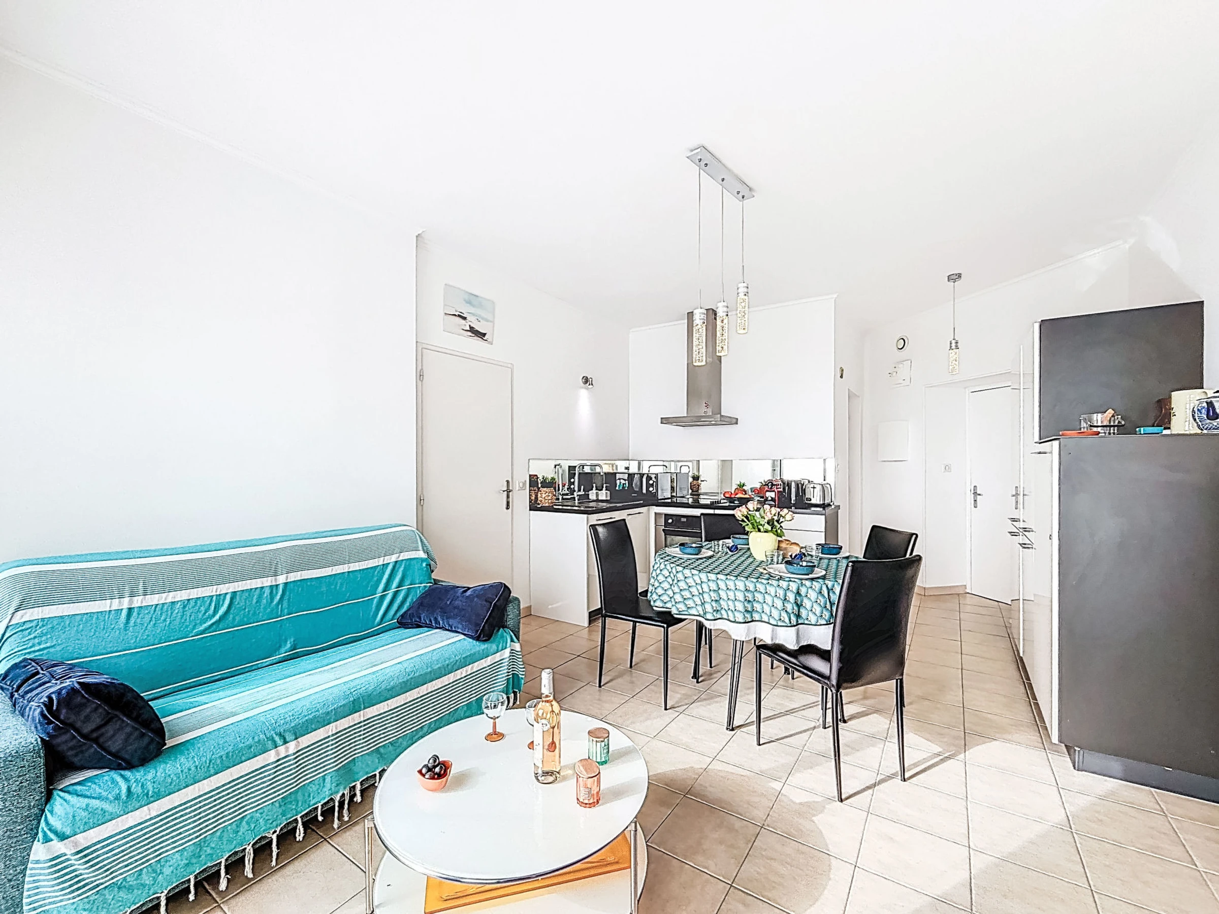"Impérial II", apt 2 pièces 39 m2 au 3ème étage. Séjour/salle à manger avec TV (écran plat), ventilateur. 1 chambre orientée sud avec 1 x 2 lits superposés (90 cm, longueur 90 cm), 1 grand-lit (140 cm, longueur 190 cm). Coin cuisine (four, lave-vaisselle, 4 plaques vitrocéramiques, grille-pain, bouilloire électrique, micro-ondes, congélateur, cafetière électrique, Capsules pour machine à café (Nespresso) (NON INCLUSES)). Douche/WC. Chauffage électrique. Petite terrasse 3 m2. Meubles de terrasse, loggia. A disposition: lave-linge, fer à repasser. Internet (Connexion WIFI, en sus). Veuillez noter: logement non-fumeur pas de parking. Détecteur de fumée. Annonce d'un particulier (art 155, IV du CGI).
