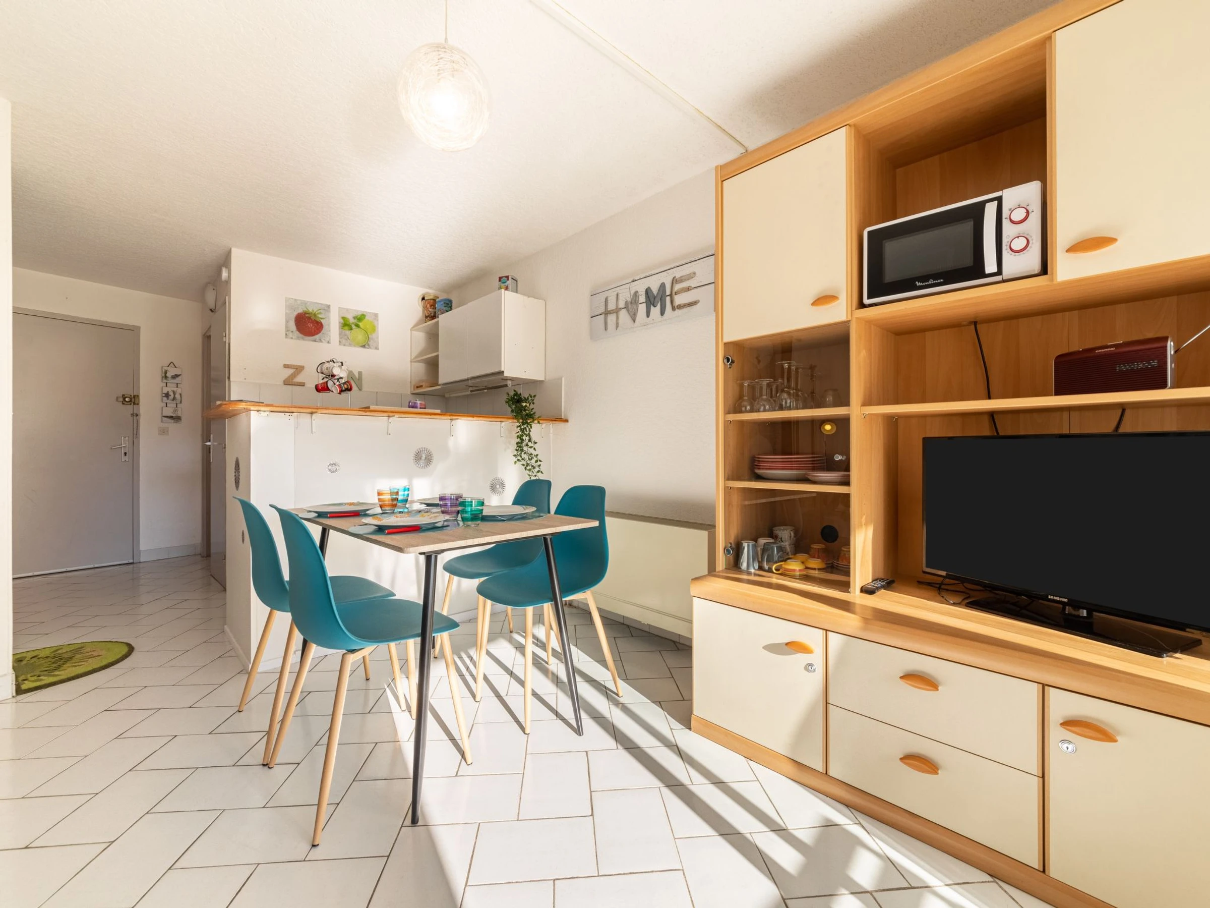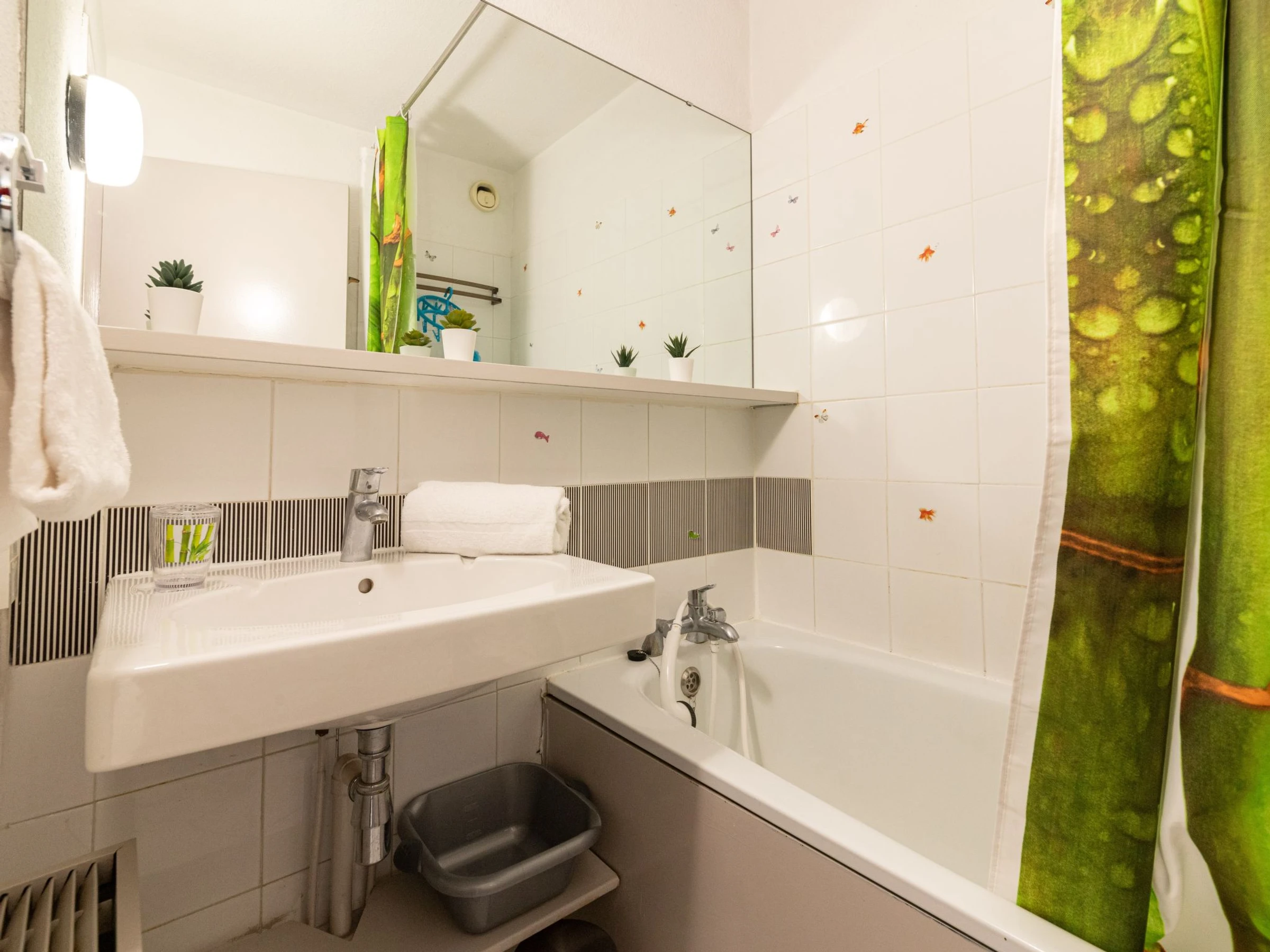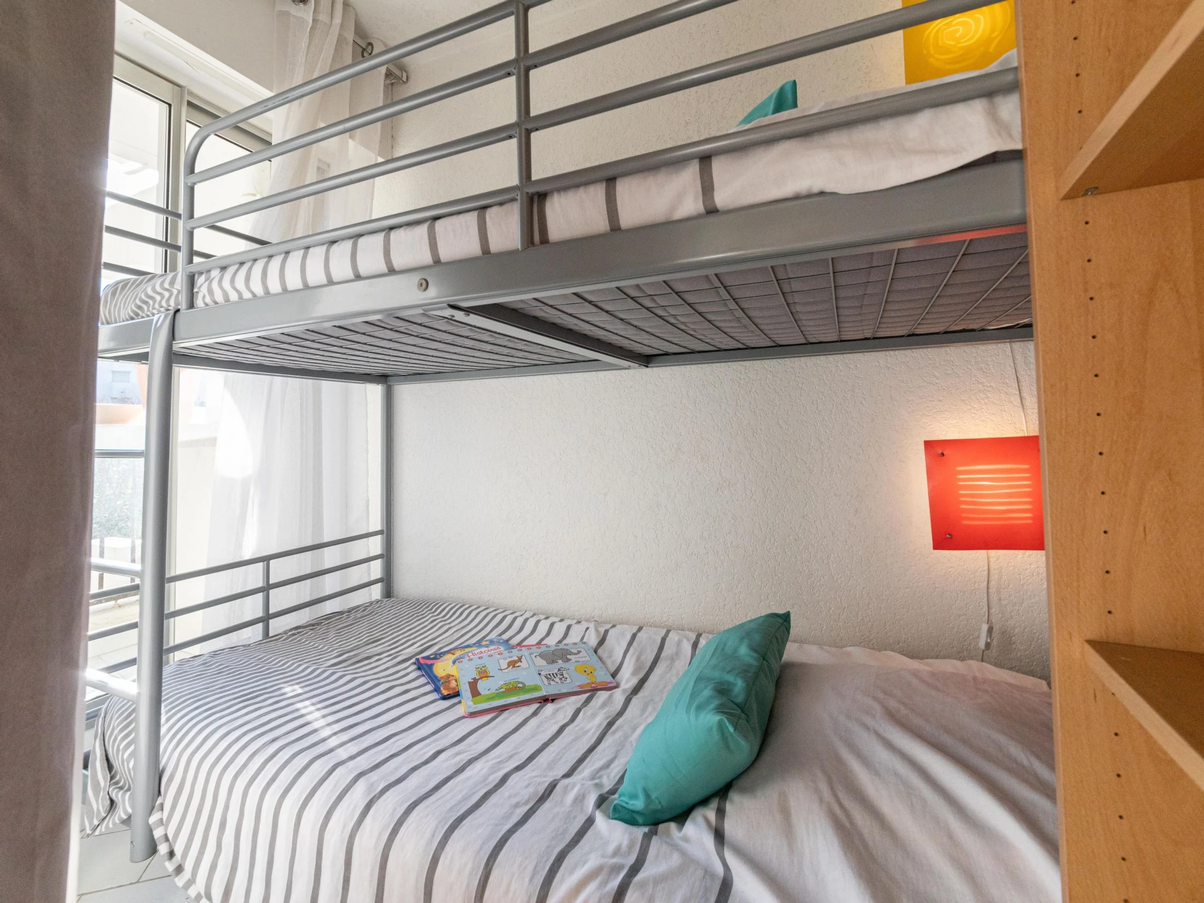 "Ulysse plage 1" studio 30 m2 au 1er étage. Séjour/salle à manger avec 1 divan-lit double (140 cm, longueur 190 cm), TV (écran plat). Cabine avec 1 x 2 lits superposés (90 cm, longueur 190 cm). Cuisine/séjour (four, 3 plaques à induction, grille-pain, bouilloire électrique, micro-ondes, cafetière électrique, Capsules pour machine à café (NESPRESSO) (NON INCLUSES)). Salle de bains, WC séparé. Chauffage électrique. Terrasse 7 m2, situation sud. Meubles de terrasse. Vue sur le jardin. A disposition: lave-linge. Internet (Connexion WIFI, en sus). Place de parking No 508 (1 Voiture). Veuillez noter: 1 animal/ chien de petite taille autorisé. Détecteur de fumée. Au lieu d'une chambre fermée, des espaces de couchage sont situés dans une zone ouverte (galerie, alcôve...). [hidden]
