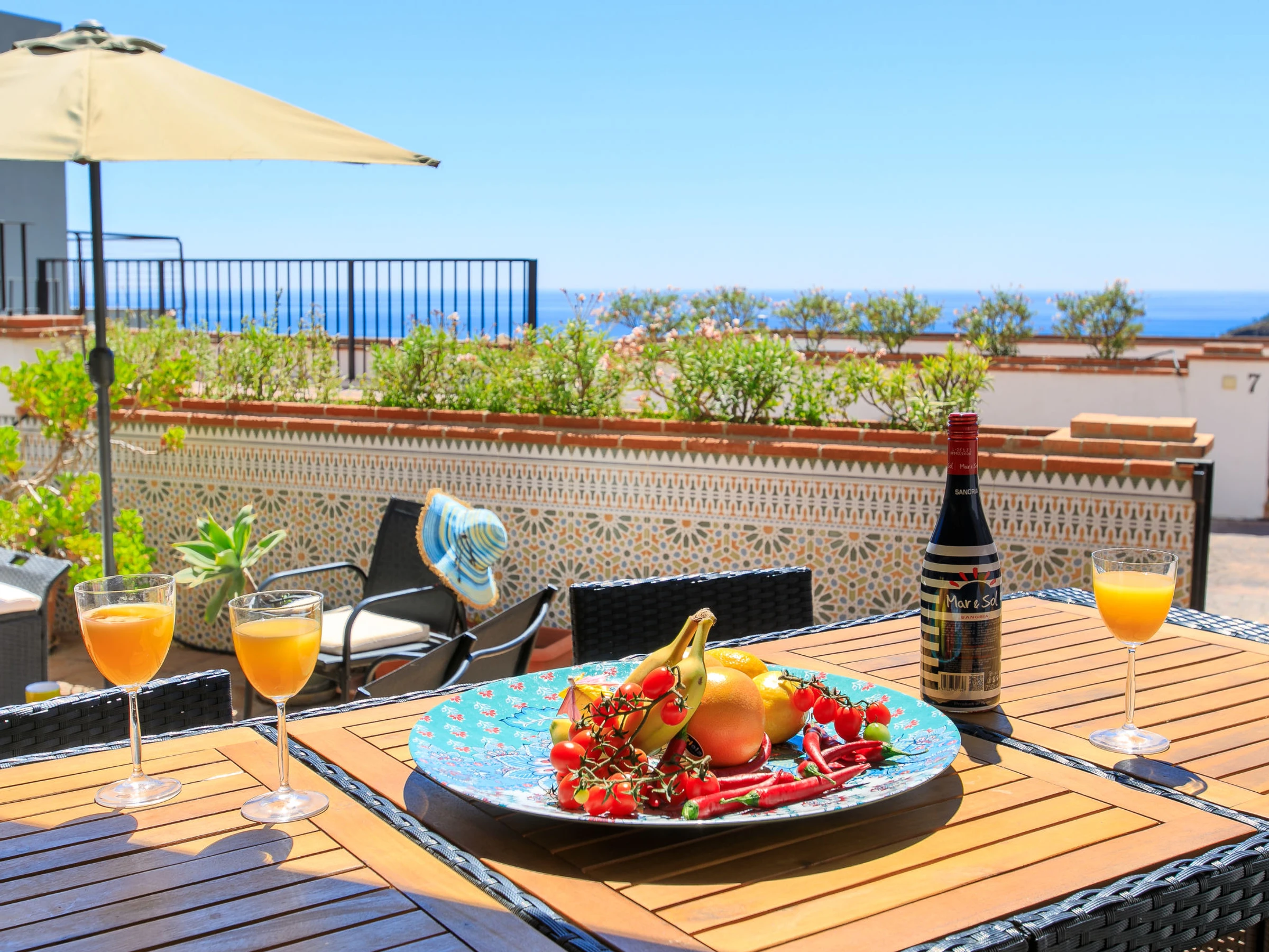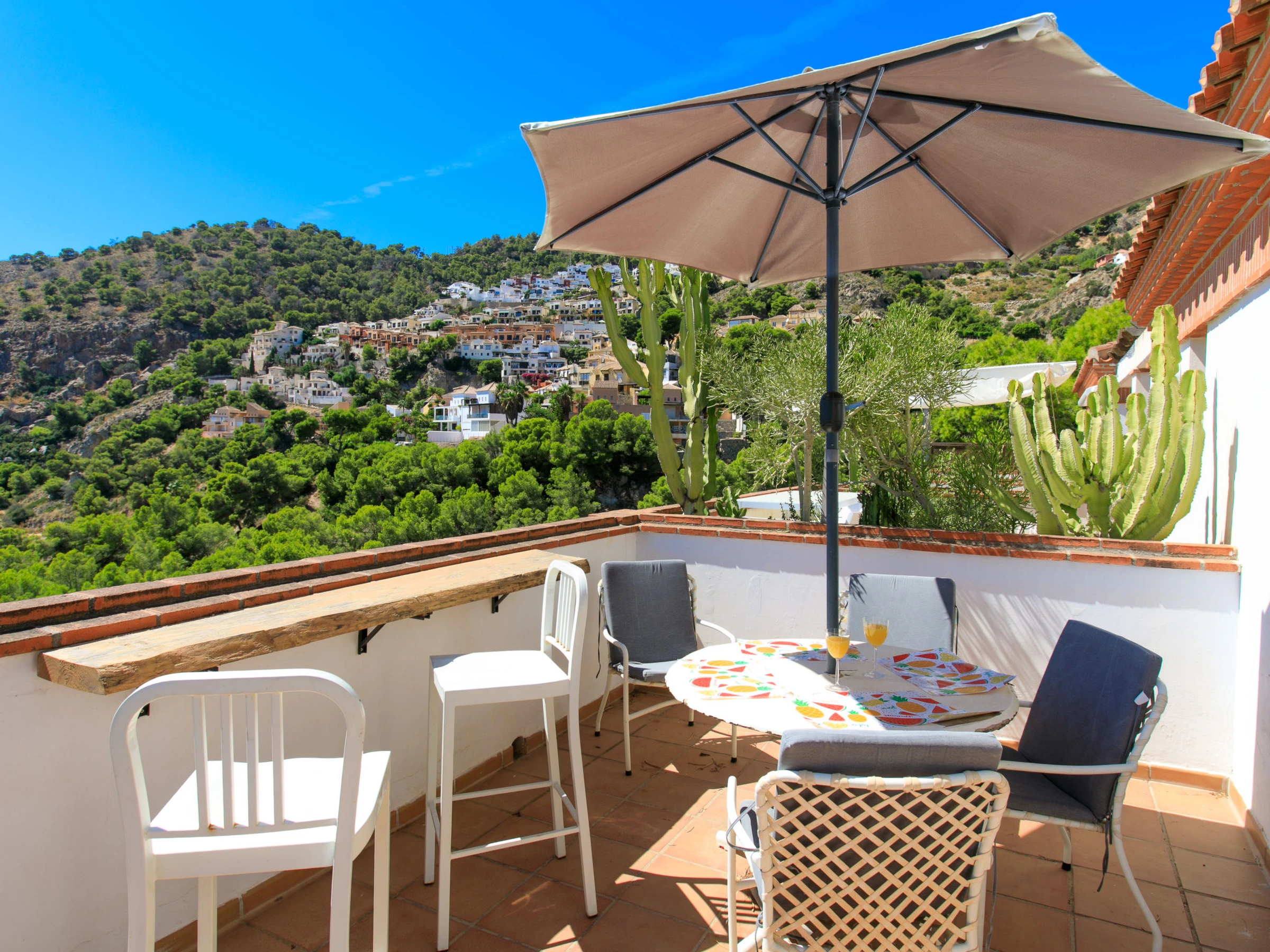 "La Herradura Amazing View", maison jumelée 4 pièces 160 m2. Spacieux et clair, aménagement fonctionnel et agréable: séjour/salle à manger avec Télévision numérique, air-conditionné et chauffage à air chaud. Sortie sur la terrasse. Cuisine ouverte (four, lave-vaisselle, 4 plaques vitrocéramiques, grille-pain, bouilloire électrique, micro-ondes, congélateur, cafetière électrique) avec bar. Sortie sur la terrasse. Bain/WC. À l'étage supérieur: 1 chambre avec 1 grand-lit (150 cm, longueur 200 cm), douche/WC, air-conditionné et chauffage à air chaud. Sortie sur la terrasse. 1 chambre avec 1 grand-lit (140 cm, longueur 190 cm), air-conditionné et chauffage à air chaud. 1 chambre avec 1 grand-lit (140 cm, longueur 190 cm), air-conditionné et chauffage à air chaud. Douche/WC. Petite terrasse, 2 grandes terrasses. Meubles de terrasse, barbecue. Superbe vue sur l'océan et la baie. A disposition: lave-linge, fer à repasser, chaise haute pour enfant, lit bébé jusqu'à 2 ans, sèche-cheveux. Internet (Connexion WIFI, gratuit). Veuillez noter: détecteur de fumée, extincteur. [hidden] // Reg. Nr.: ESFCTU00018016000614870000000000000000[hidden]0