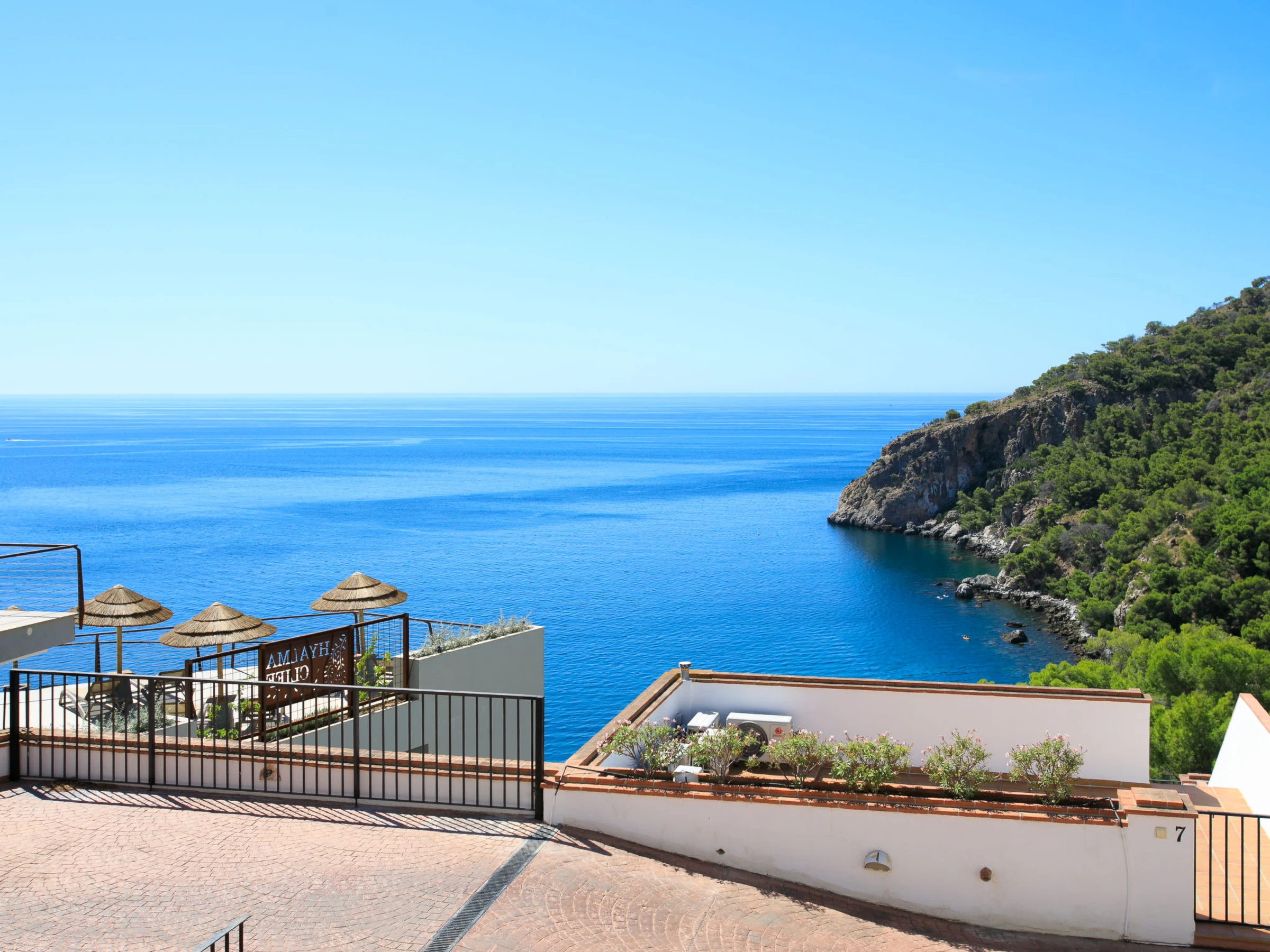 La Herradura: Belle maison jumelée accueillante "La Herradura Amazing View". En bordure de la localité, à 400 m du centre de La Herradura, juste au bord de la mer, à 400 m de la plage. En commun: piscine (4 x 4 m, profondeur 100 - 175 cm, disponibilité saisonnière: [hidden] - [hidden] Magasins, restaurant, boulangerie, café 400 m, arrêt de bus 300 m, plage de graviers "La Herradura", centre de plongée 400 m. Port plaisance 4.3 km, marina 4.3 km, terrain de golf (18 trous) 38 km, ecole de voile 600 m. Attractions à proximité: Aquatropic, Acuario d'Almuñecar, Loro Sexi, Castillo d'Almuñecar, Acantilados de Maro, Cuevas de Nerja. Les domaines skiables de renommée sont facilement accessibles: Sierra Nevada. Région de randonnées: Sierra Tejeda, Sierra Almijara, Las Alpujarras. Le propriétaire n'accepte pas les groupes de jeunes. Veuillez noter: Déchargement et chargement des bagages à la location de vacances.