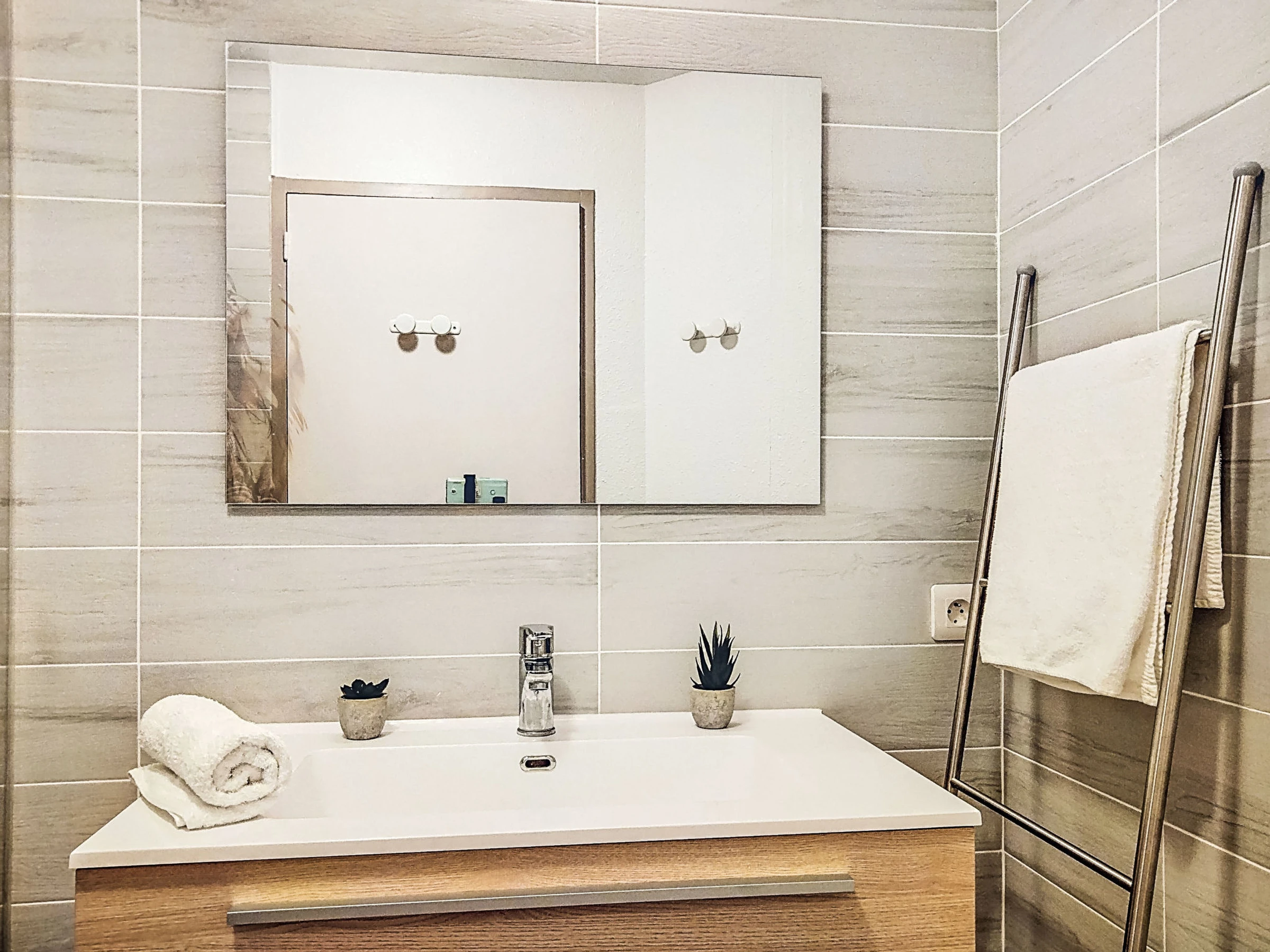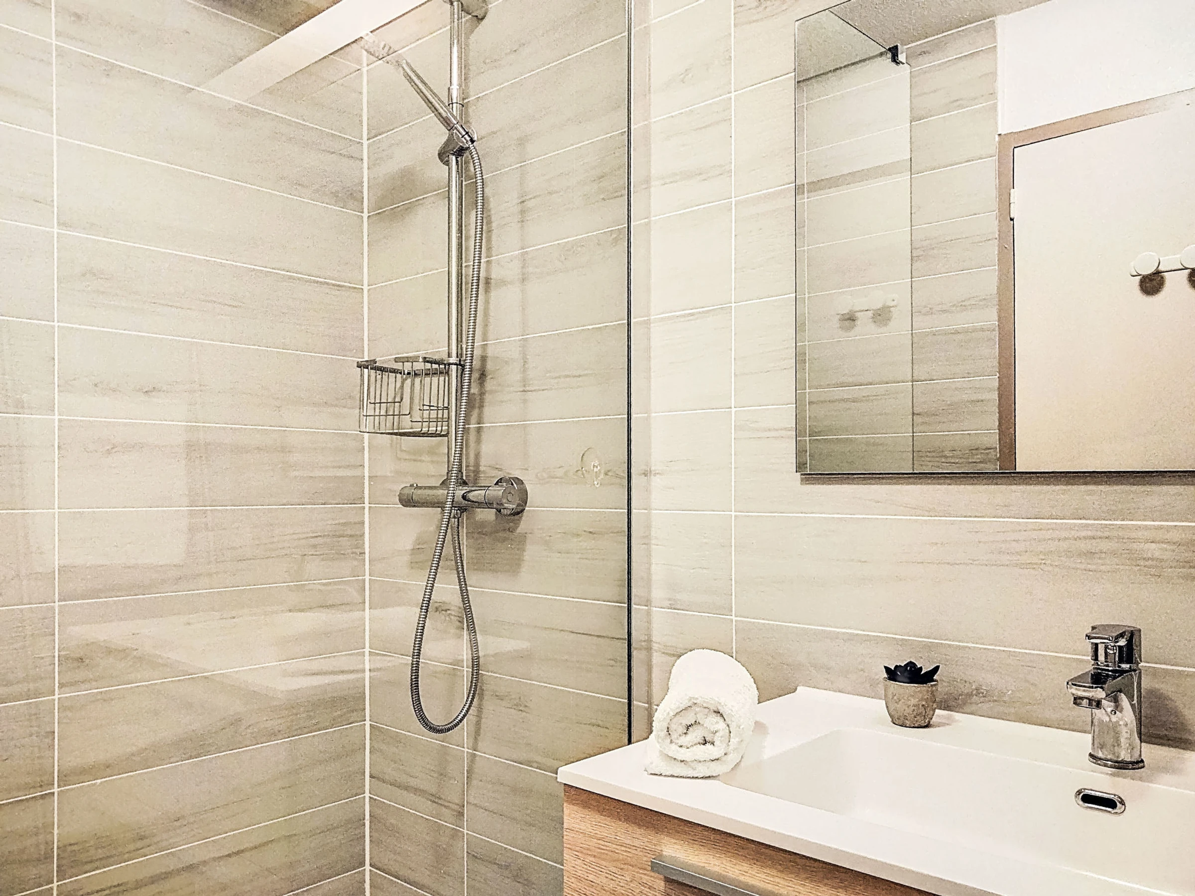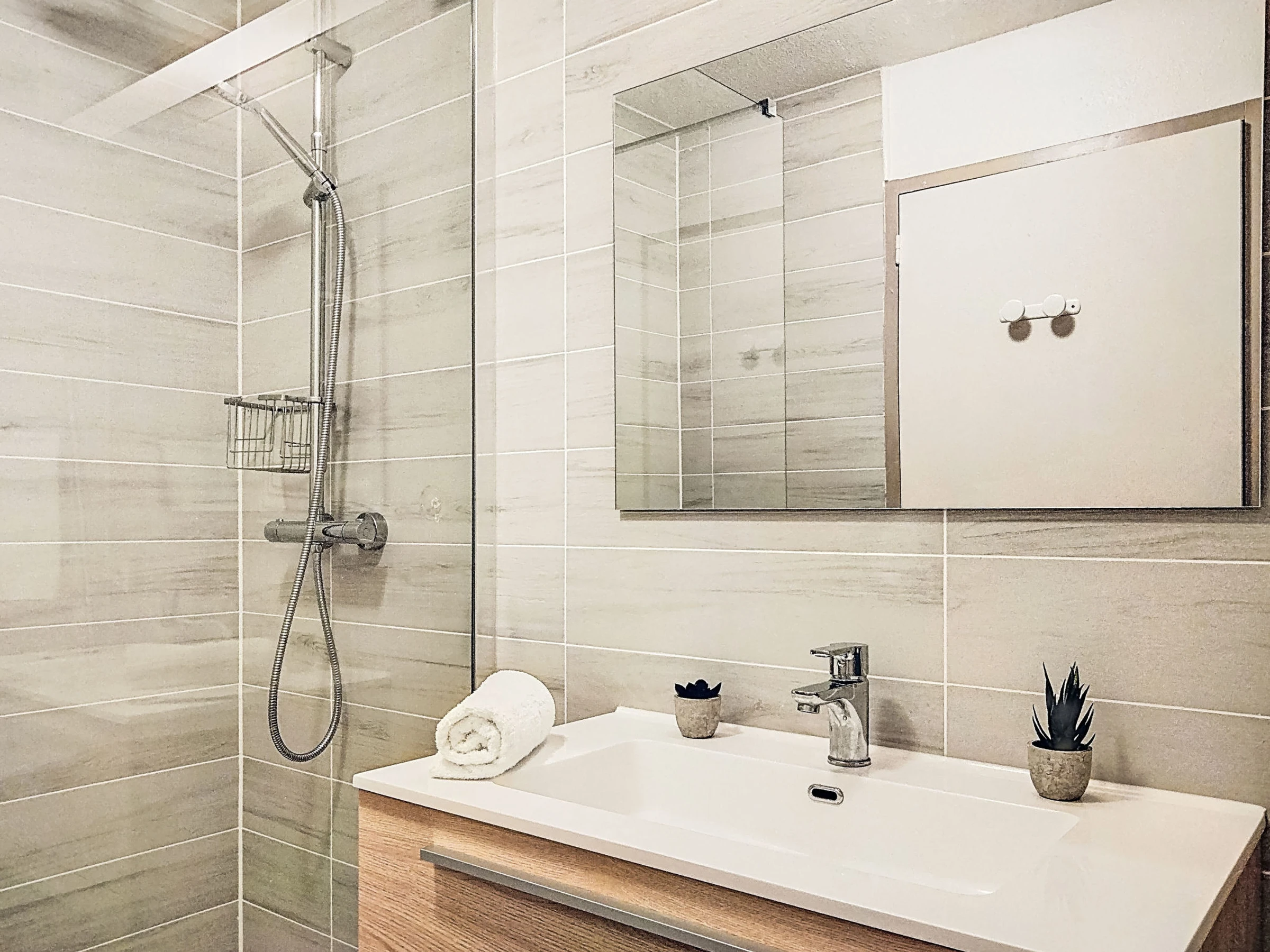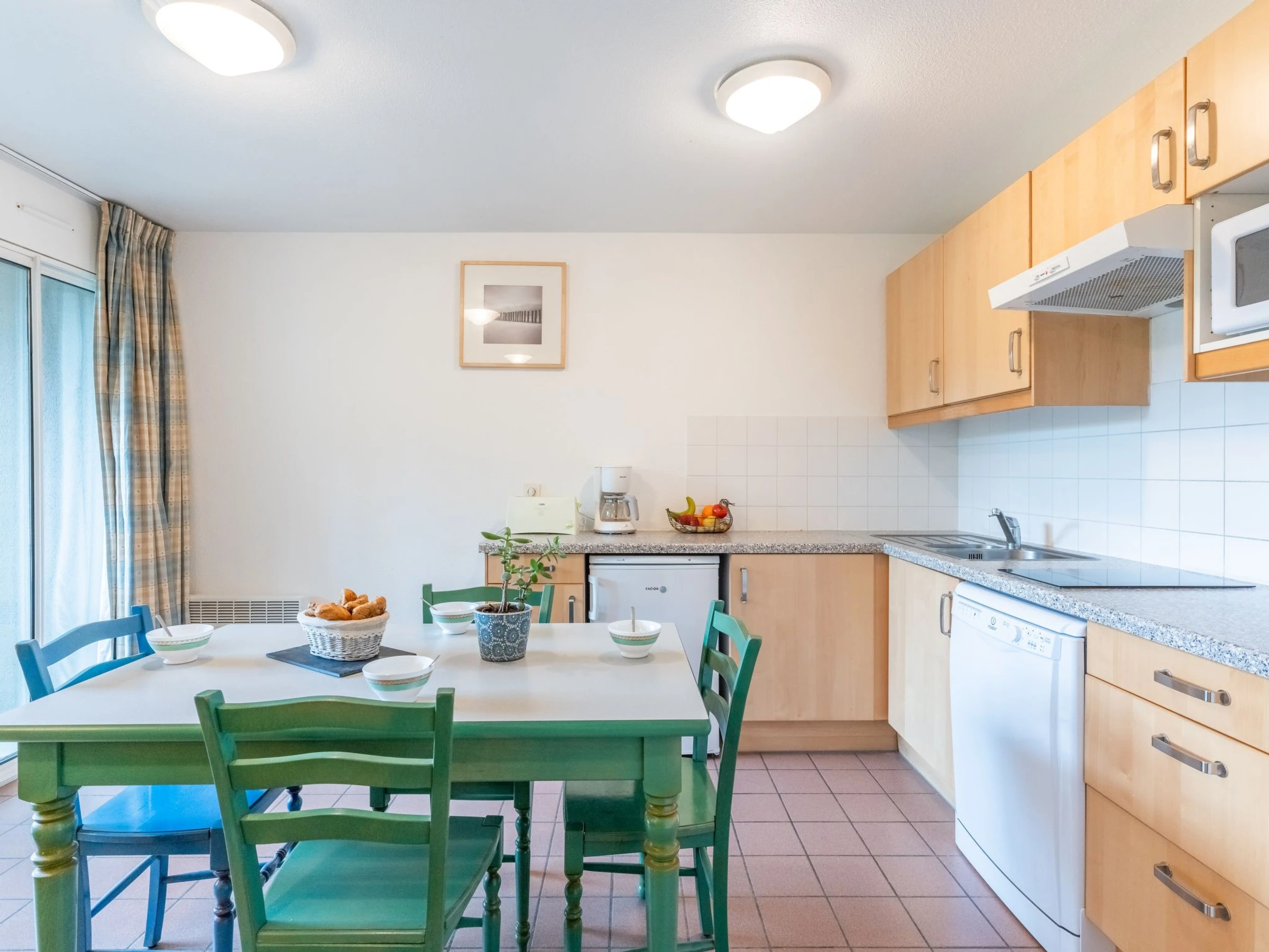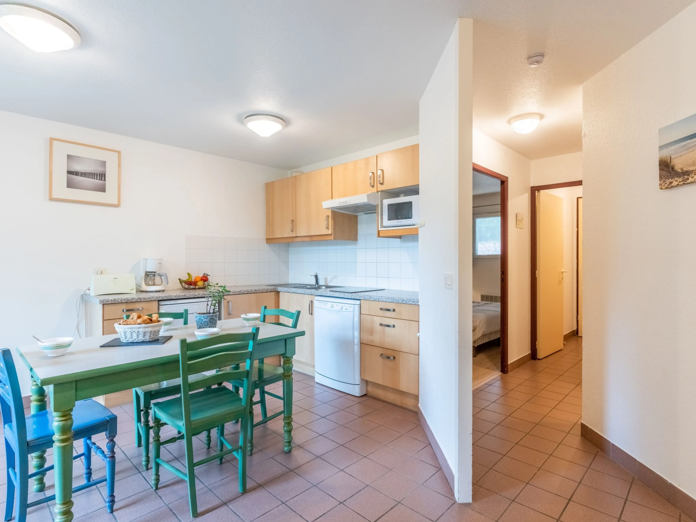Apt 2 pièces 40 m2, au rez-de-chaussée. Séjour/salle à manger avec 1 divan-lit double (140 cm, longueur 190 cm), TV, écran plat et lecteur CD. Sortie sur la terrasse. 1 chambre avec 2 lits (90 cm). Coin cuisine (mini-four, four, lave-vaisselle, 2 plaques vitrocéramiques, grille-pain, micro-ondes, cafetière électrique). Salle de bains, WC séparé. Chauffage électrique. Terrasse 6 m2, couverte. Meubles de terrasse. A disposition: fer à repasser, sèche-cheveux. Internet (Connexion WIFI, en sus). Veuillez noter: logement non-fumeur. Détecteur de fumée.
