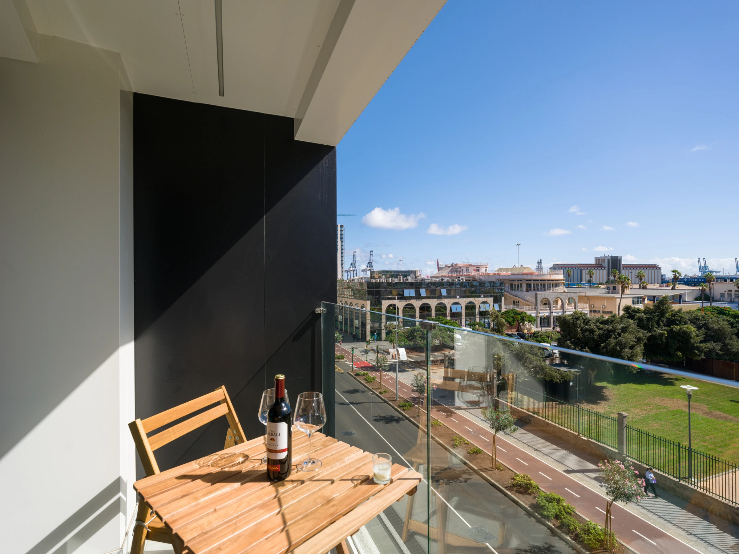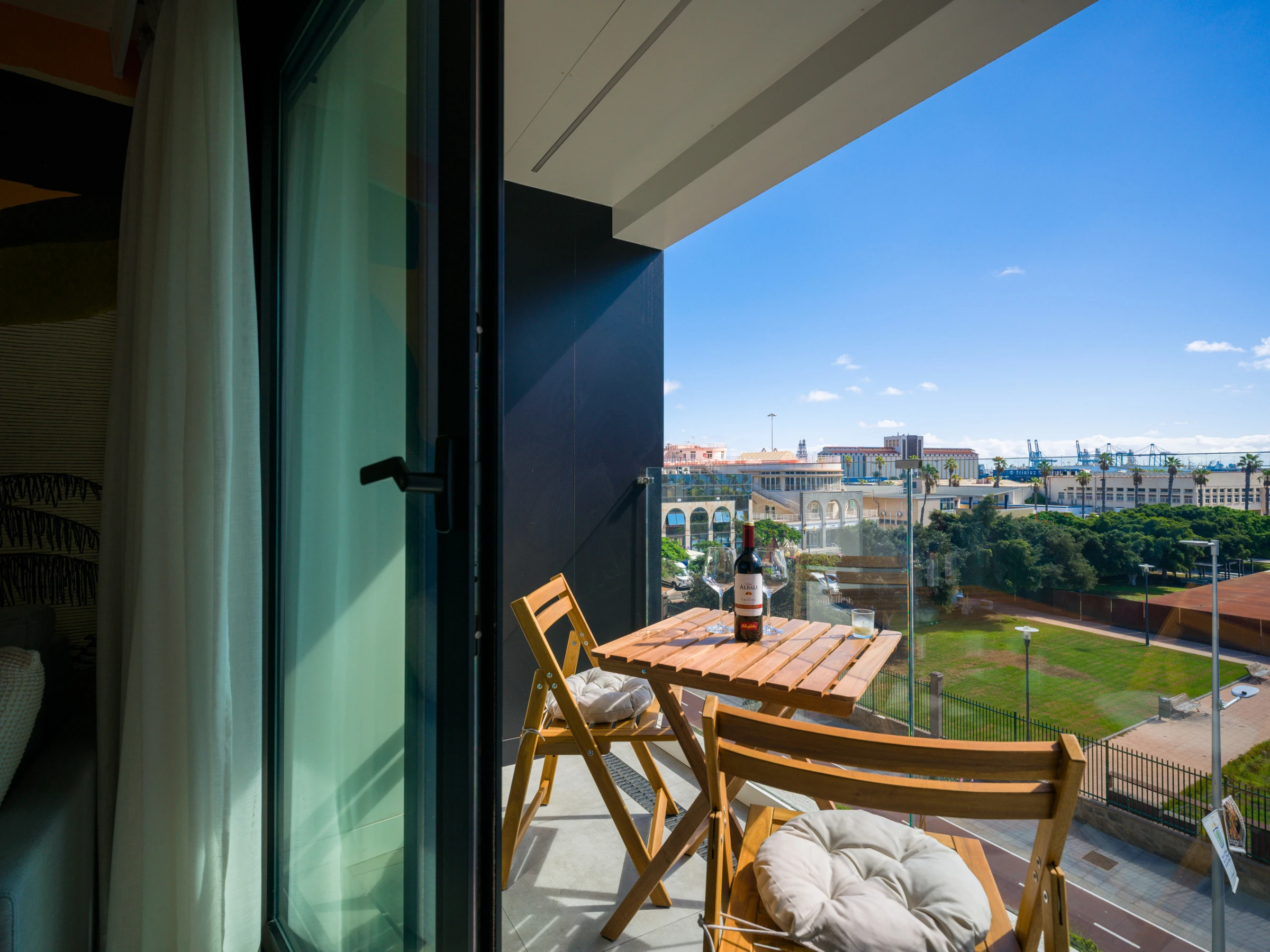 Un balcon avec vue sur la mer, le parc et le Château de la Lumière, vous permettra de profiter des paysages incroyables de Las Palmas, créant des moments uniques lors de votre voyage.
