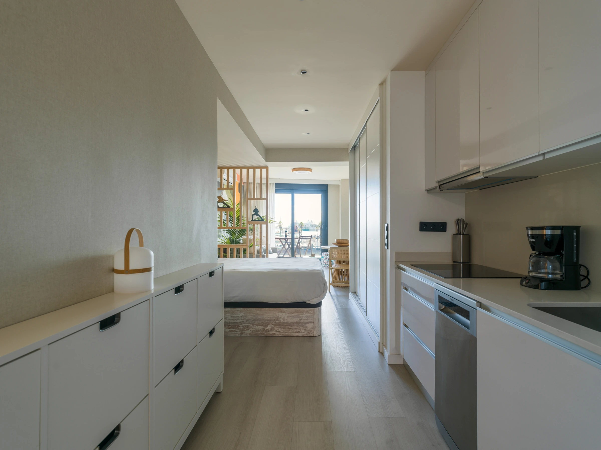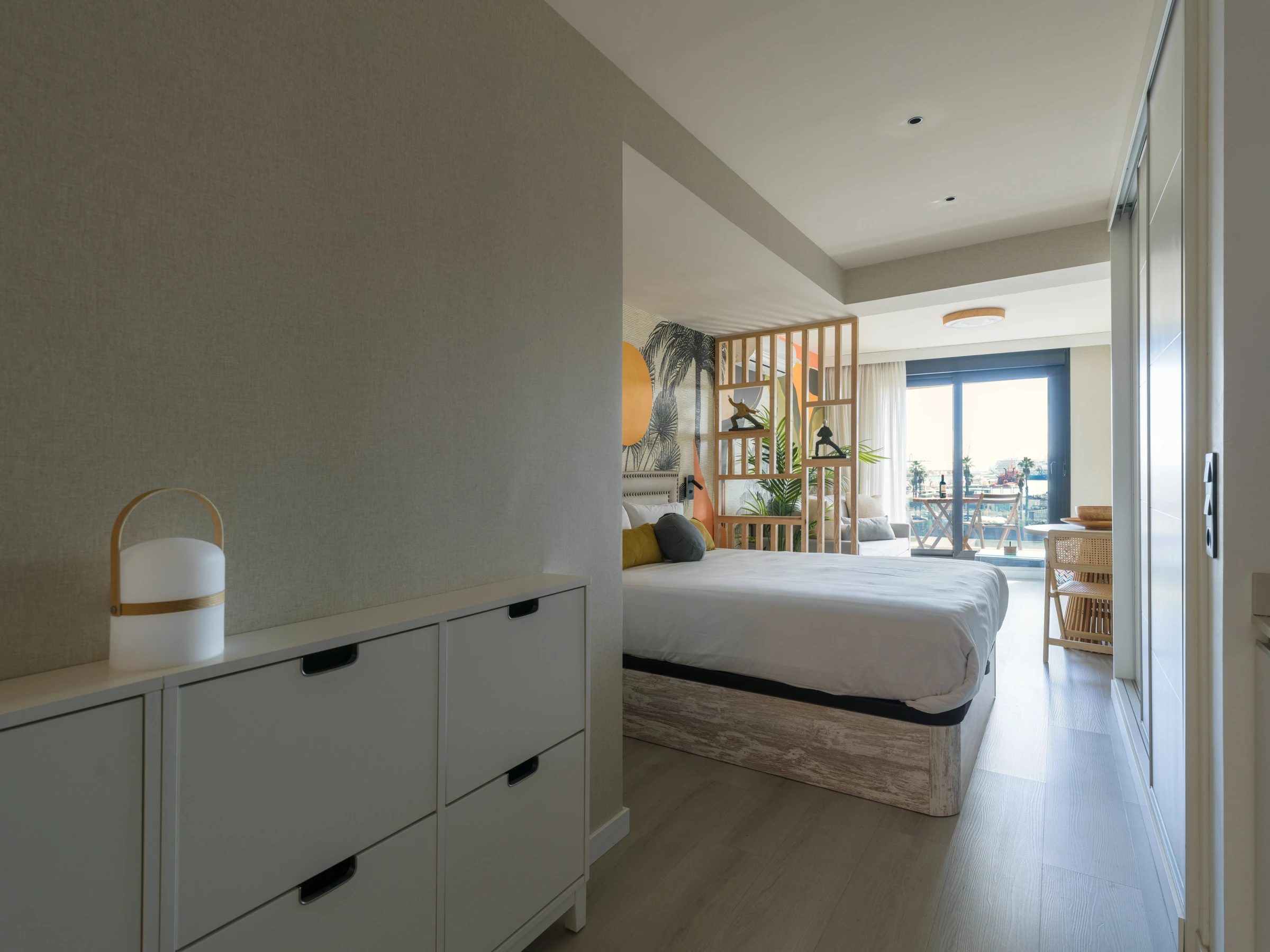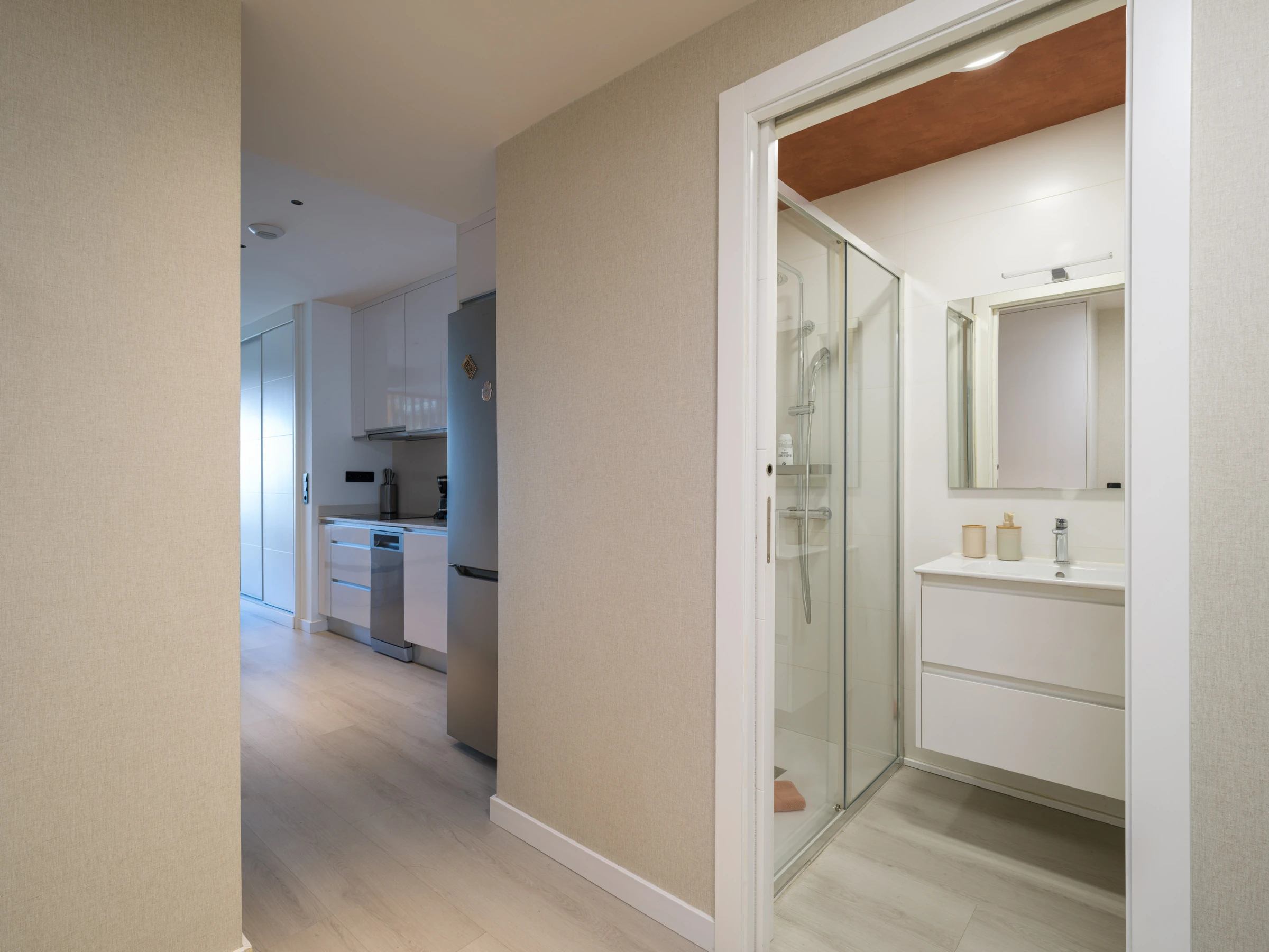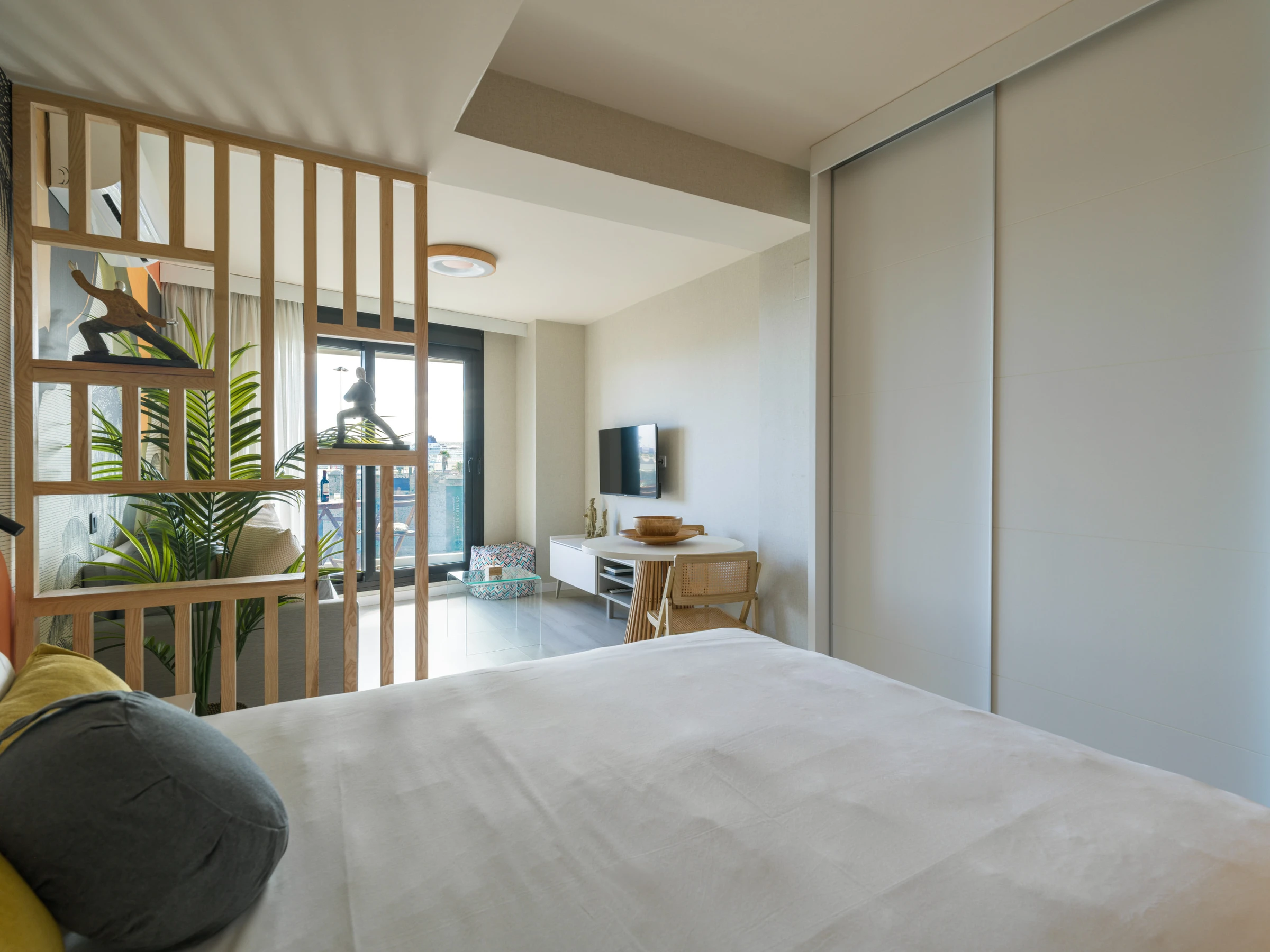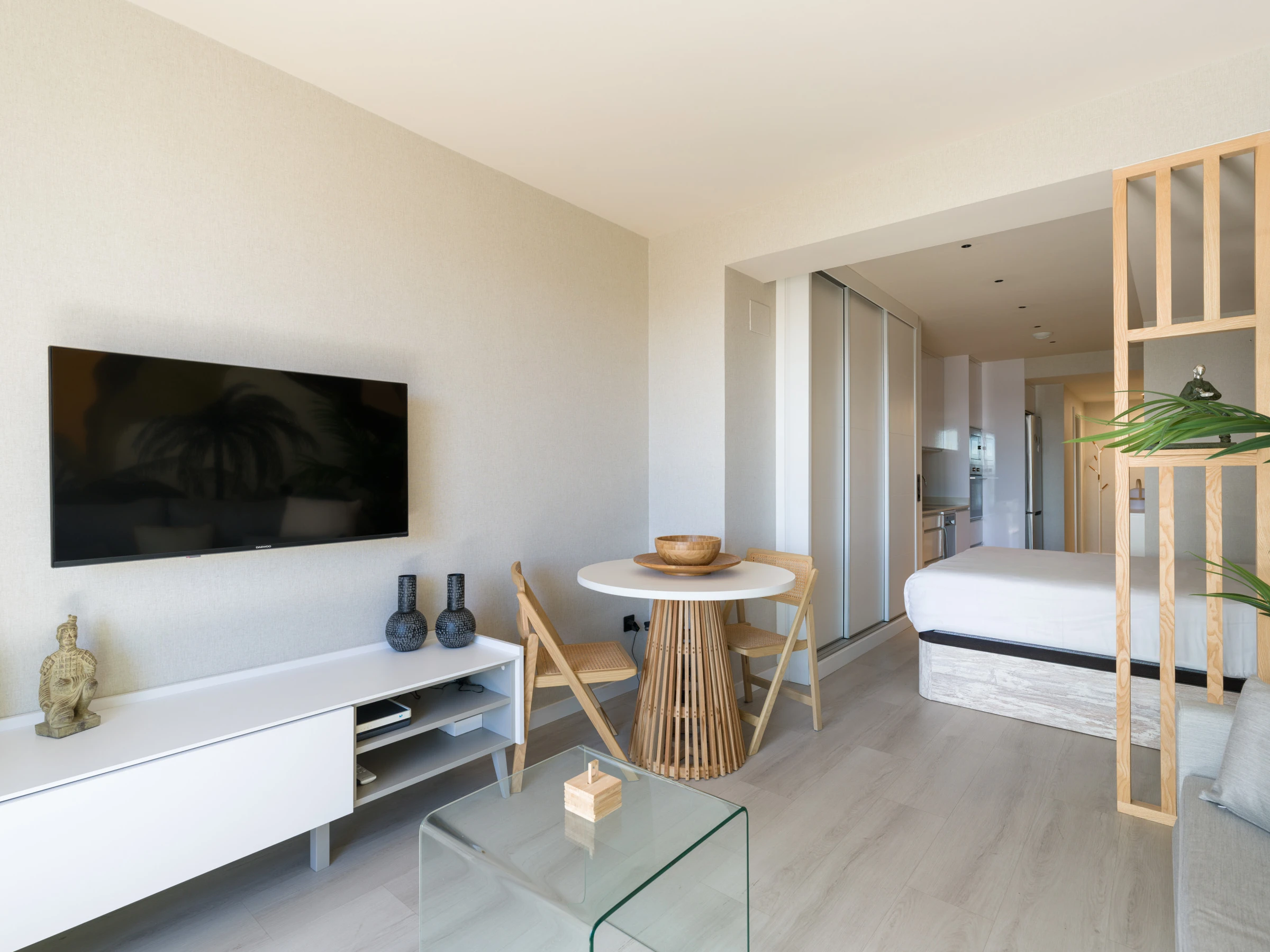 Cet appartement moderne de 40 mètres carrés offre un environnement intime et fonctionnel avec une disposition américaine qui maximise l'espace. Il dispose d'un lit double qui garantit un repos réparateur et d'une salle de bain complète avec douche, idéale pour se rafraîchir après une journée de travail ou de tourisme.